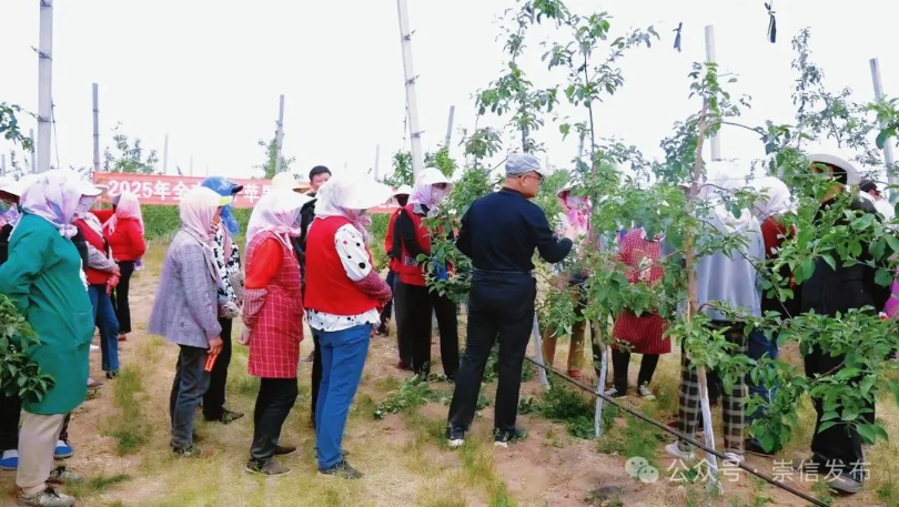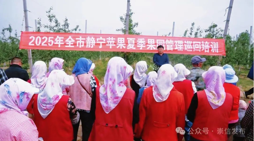 5月12日,由市林业和草原局主办的全市“静宁苹果”夏季果园管理巡回培训在崇信县建崇公司黄寨甘庄矮化密植示范园举行。