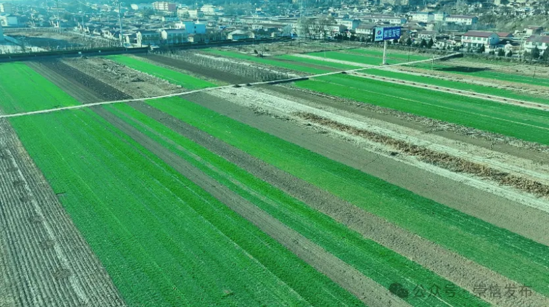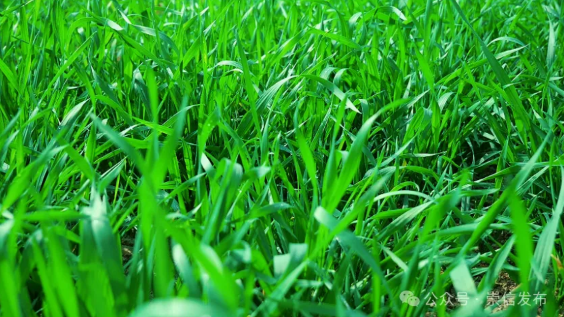 初冬时节,行走在崇信县的田野间,10.3 万亩冬小麦如一片铺展的绿色海洋,为冬日大地注入蓬勃生机。阳光下,麦苗色泽鲜绿、分蘖均匀,宽厚的叶片带着晶莹光泽,在微风中轻轻摇曳,呈现出一派长势喜人的景象。