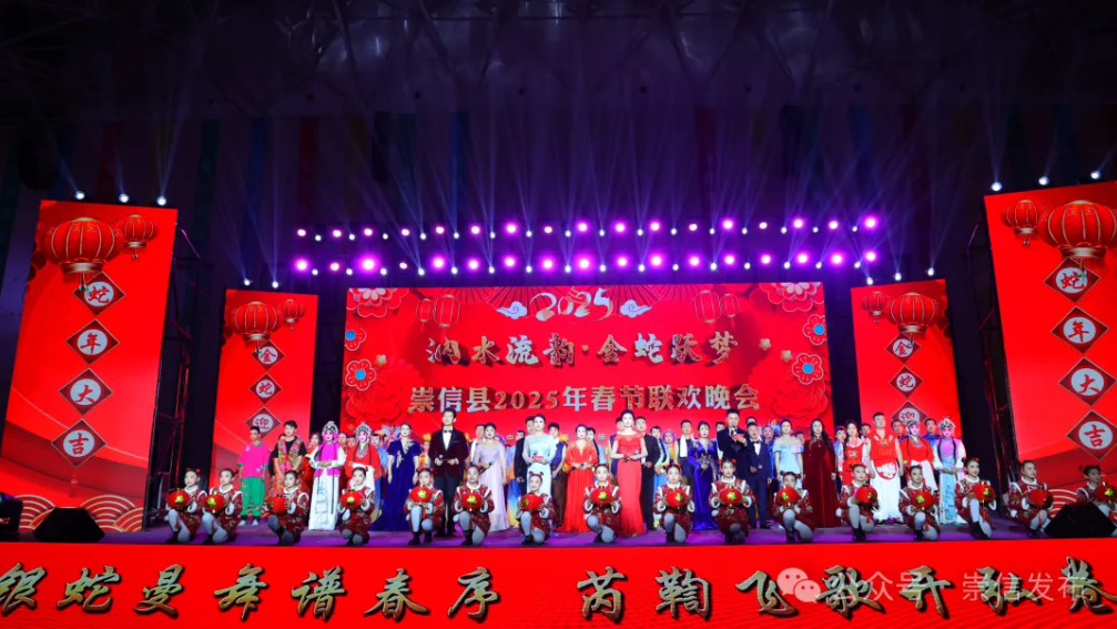 欢声笑语贺新春,欢聚一堂迎新年。在中国传统小年农历腊月二十三日当晚,由中共崇信县委、崇信县人民政府主办,崇信县委宣传部、崇信县文体广电和旅游局、教科局、融媒体中心联合承办的崇信县2025年“汭水流韵·金蛇跃梦”春节联欢晚会在崇信县体育中心举办。杨聪、刘小平、完新义等县上领导现场观看晚会。