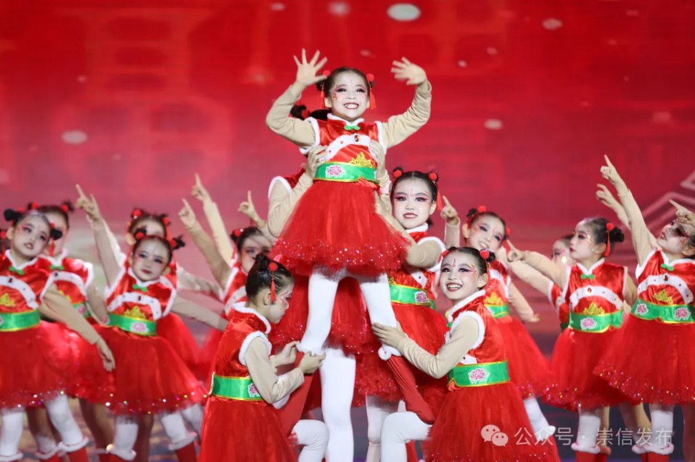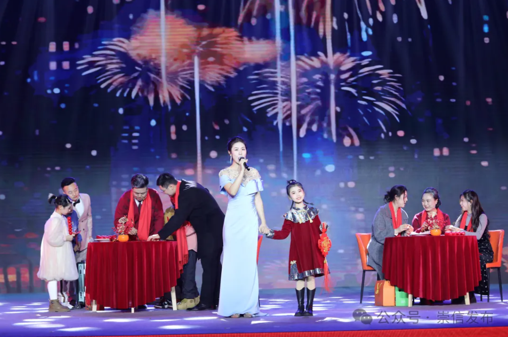 舞蹈《欢天喜地过大年》、歌伴舞《美丽崇信我的家》唱出了对家乡的热爱、舞出了对新年的愿景。音乐快板《移风易俗展新颜》,用朗朗上口的语言,使移风易俗宣传变得生动有趣。非遗节目《崇信民歌情景表演唱》《弦音流韵》表演声情并茂,充分展现了绚丽多姿的崇信民俗民间文化。戏曲舞蹈《粉墨花旦》将古典音乐与现代舞蹈技巧相结合,舞者生动的表演为观众带来了别样的视听体验。情景歌舞《年味》、小品《东娃直播间》、戏曲《表花》等精彩节目一一上演,为现场观众奉上了一场别开生面的文化盛宴,充分展现了崇信经济社会发展的蓬勃动力和美好前景。现场气氛欢乐、掌声不断,让大家切身感受到了家门口浓浓的春节氛围。