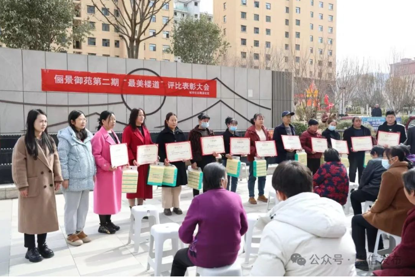 春风送暖,文明花开。2月27日,崇信县俪景御苑小区院内热闹非凡,第二期“最美楼道”“最美楼层”“文明家庭”评比表彰大会如期召开,以实际行动弘扬文明新风尚,共建幸福新家园。