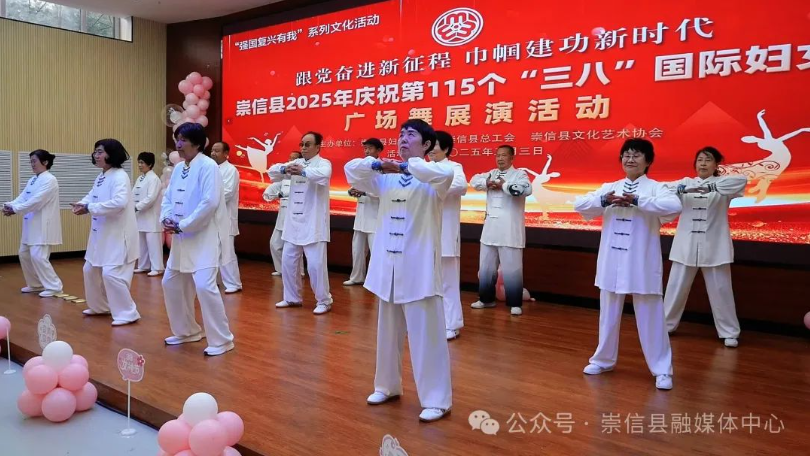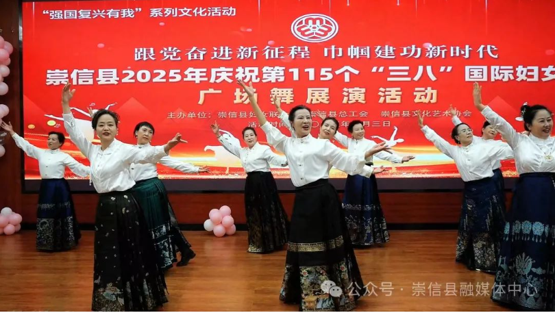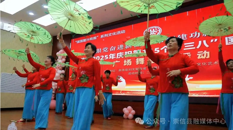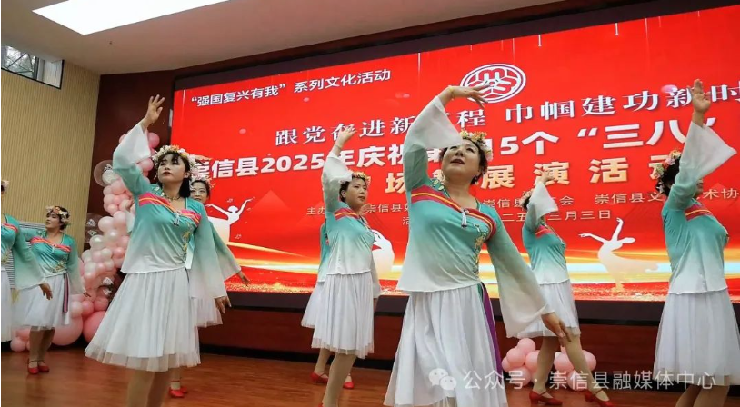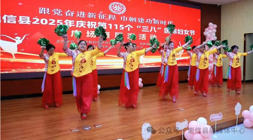 巾帼筑梦新时代,不负韶华展英姿。为热烈庆祝第115个“三八”国际妇女节,丰富妇女群众精神文化生活,展示新时代女性自信自强、昂扬向上的精神风貌。3月3日,崇信县妇联联合县总工会、县群众文化艺术协会在县老干部活动中心多功能厅举办“跟党奋进新征程 巾帼建功新时代”广场舞展演活动,为广大妇女群众营造了浓厚的节日氛围。