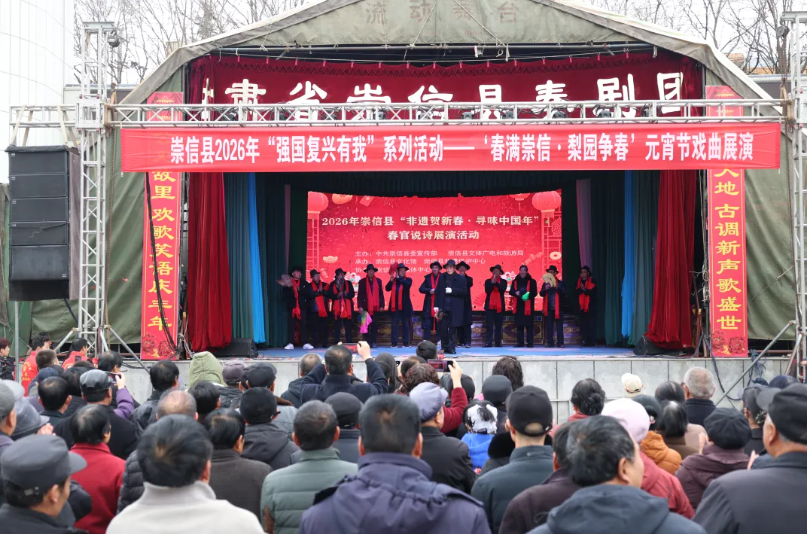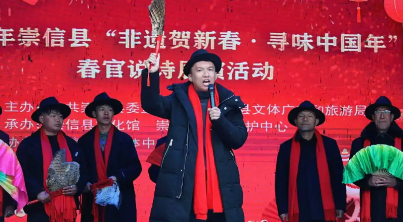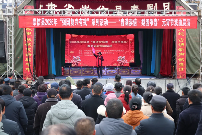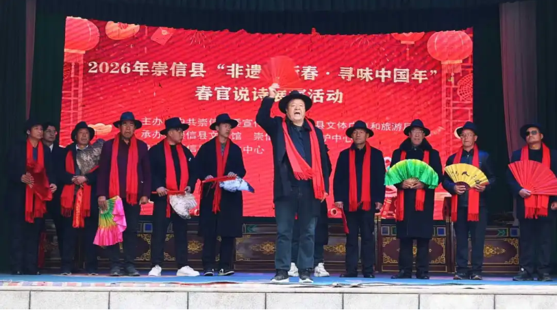 农历正月十四,“非遗贺新春・寻味中国年”2026年春官说诗展演活动在崇信县李元谅广场热闹启幕。本次活动由中共崇信县委宣传部、县文旅局主办,县文化馆承办,13位身着传统服饰的春官登台献艺,用乡音诗韵礼赞时代、祈福新春,让非遗魅力在欢声笑语中浸润人心。