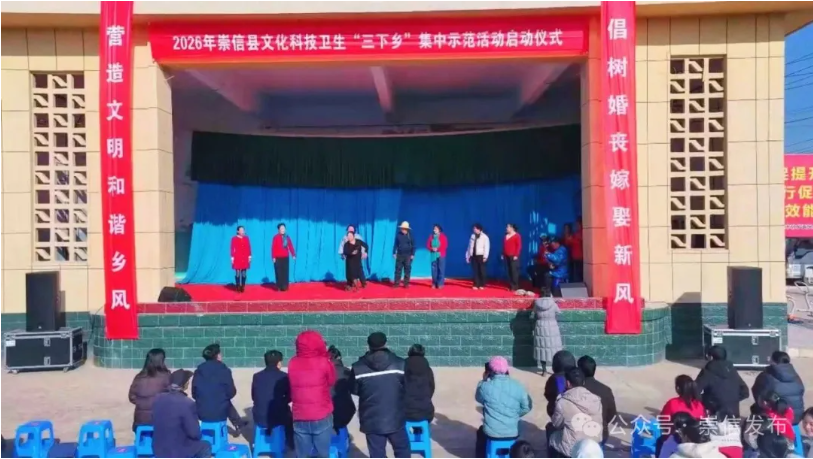 1月17日,2026年崇信县文化科技卫生“三下乡”集中示范活动暨“推动移风易俗 树立文明新风”新时代文明实践宣传月启动仪式在木林乡文化广场隆重举行。