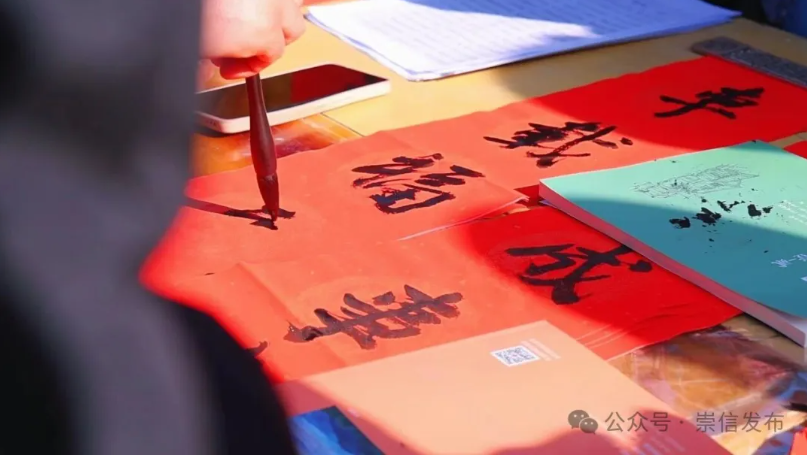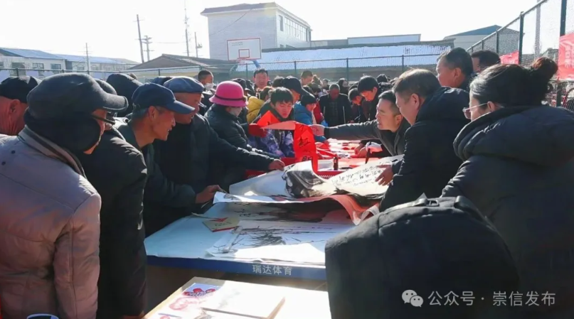 崇信县文化馆工作人员戚斐说:“今天参加全县文化三下乡活动,崇信县文化馆给群众带来了文艺节目、春联、窗花、年画、书画,把文化服务送到家门口。”