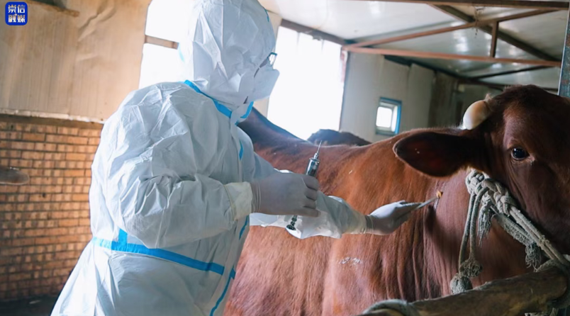 连日来,在崇信县各个乡镇的养殖场、散养户家中,工作人员身着专业工作服,严格按照防疫操作流程,为牛、羊、鸡等各类畜禽逐一接种疫苗,规范佩戴畜禽耳标,仔细登记免疫信息,每一个步骤都严谨细致、规范有序。