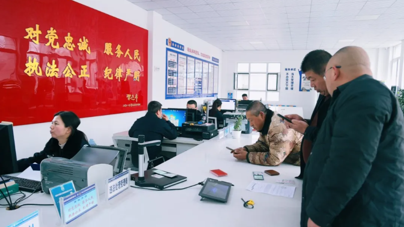 办事群众刘虎林说:“ 年后第一天来换新证,工作人员精神足、态度好,几分钟就给我把新证办好了,我非常满意。”