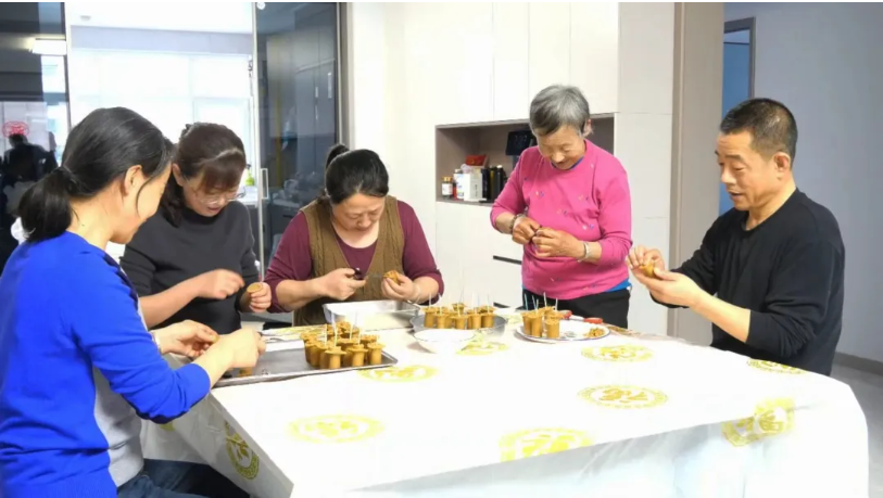 活动现场处处洋溢着喜庆热闹的节日氛围。娘家人早早备足原料,将淘洗干净的酒谷米碾磨蒸制后,与麦面反复揉搓,和成温润柔韧的面团。群众围坐在一起,揉、捏、压、刻,巧手翻飞间,一尊尊憨态可掬的面猴、一盏盏形态各异的生肖灯相继成型。大家按照娘家长辈年龄总和捏制面灯,将十盏小灯嵌于面猴头顶、肩背、手脚之处,寓意福禄寿三星与北斗七星,灯芯注上清油,每一道工序、每一盏灯盏,都承载着对新人的美好祝福与对幸福生活的热切期盼。