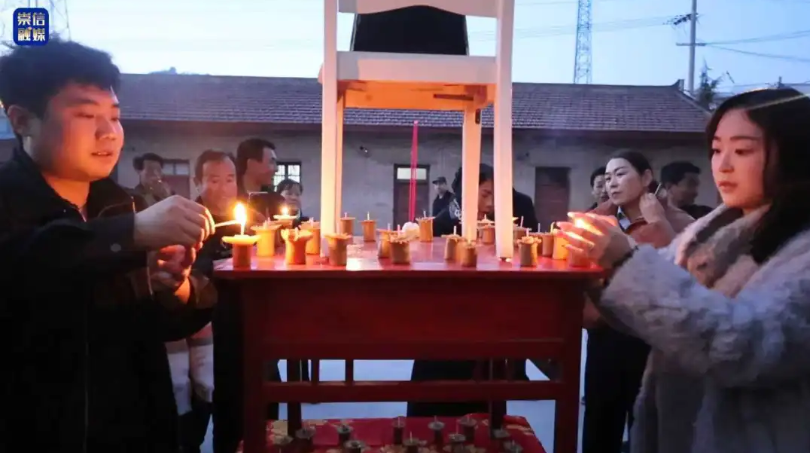 夜幕降临,各乡镇活动现场同步点亮灯火。三层方台错落搭建,木升子倒扣其上,面猴端坐正中,百盏面灯层层环绕,寓意福寿绵长。新婚夫妇携手点燃所有面灯,一时间灯火通明、暖意融融。随着“抢灯”的吆喝声响起,大人小孩欢呼着围拢上前,争抢面灯讨个好彩头。仪式庄重而喜庆,象征着传承香火、接续家风、阖家美满,鞭炮声、欢笑声、喝彩声交织在一起,汇成元宵之夜最动人的乐章。