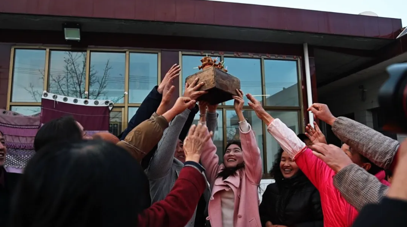 新婚女婿闫忠说:“今天的仪式感特别足,我特别激动。我背上的不只是面猴和面灯,更是两家老人的期盼和祝福。我们一定会把日子过好,也把这份民俗好好传承下去。”