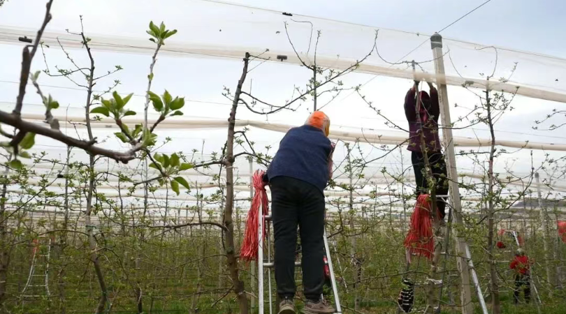 气温回升,枝头吐绿,眼下正是果树萌芽生长的关键时期,也是果园管理的“黄金阶段”。在崇信县铜城塬子高标准矮化密植苹果基地,果农们抢抓农时,有条不紊开展拉枝、打药、水肥管理等各项作业,以精细化管理为苹果丰产、品质提升筑牢基础。