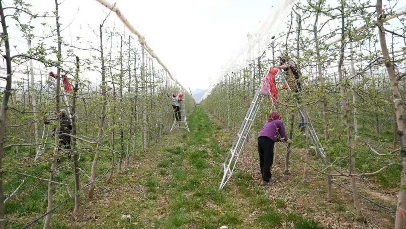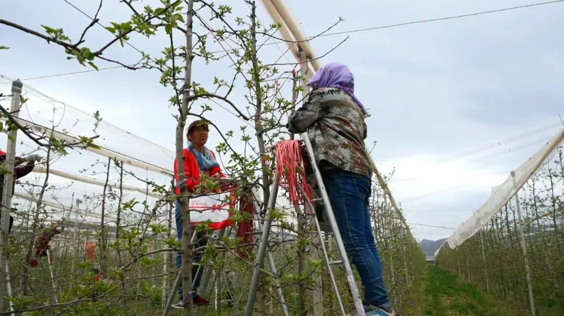 崇信县铜城塬子高标准矮化密植苹果园负责人张斌说:“现在正是果园管理的‘黄金期’,我们现在拉枝一定要做到调整好角度,为了通风透光;打药一定要做到科学规范,防止病虫害发生。同时浇水、施肥,防霜冻,一定要做到‘准’和‘细’。这几项活儿干扎实了,今年的果子才能个头大、口感好,我们果园的果品品质才能更好!”