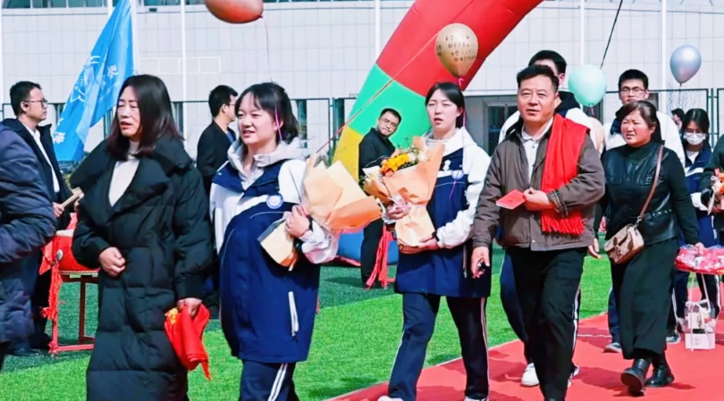 伴随着悠扬的暖场旋律与激昂的鼓点声,活动正式拉开帷幕。高三学子们在家长和老师的陪伴下,迈着坚定的步伐踏上红毯,依次穿过象征蜕变与奋进的“成人门”和“成功门”。这一刻,不仅是对少年时光的告别,更是对崭新未来的期许与宣告。