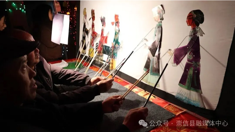 此次展演还创新性地将《李彦贵卖水》《双冠郜》《小姑贤》等经典弦子腔剧目与牛皮灯影艺术相融合,马寨村村民马银堂及其团队凭借精湛的手艺与醇厚唱腔,搭配地道方言解说,将人物喜怒哀乐传递得淋漓尽致。这种“非遗+乡土”的创新呈现方式,让牛皮灯影、弦子腔这些古老艺术焕发出新的生机,更让群众在欢声笑语中凝聚起对家乡的热爱与发展的共识。