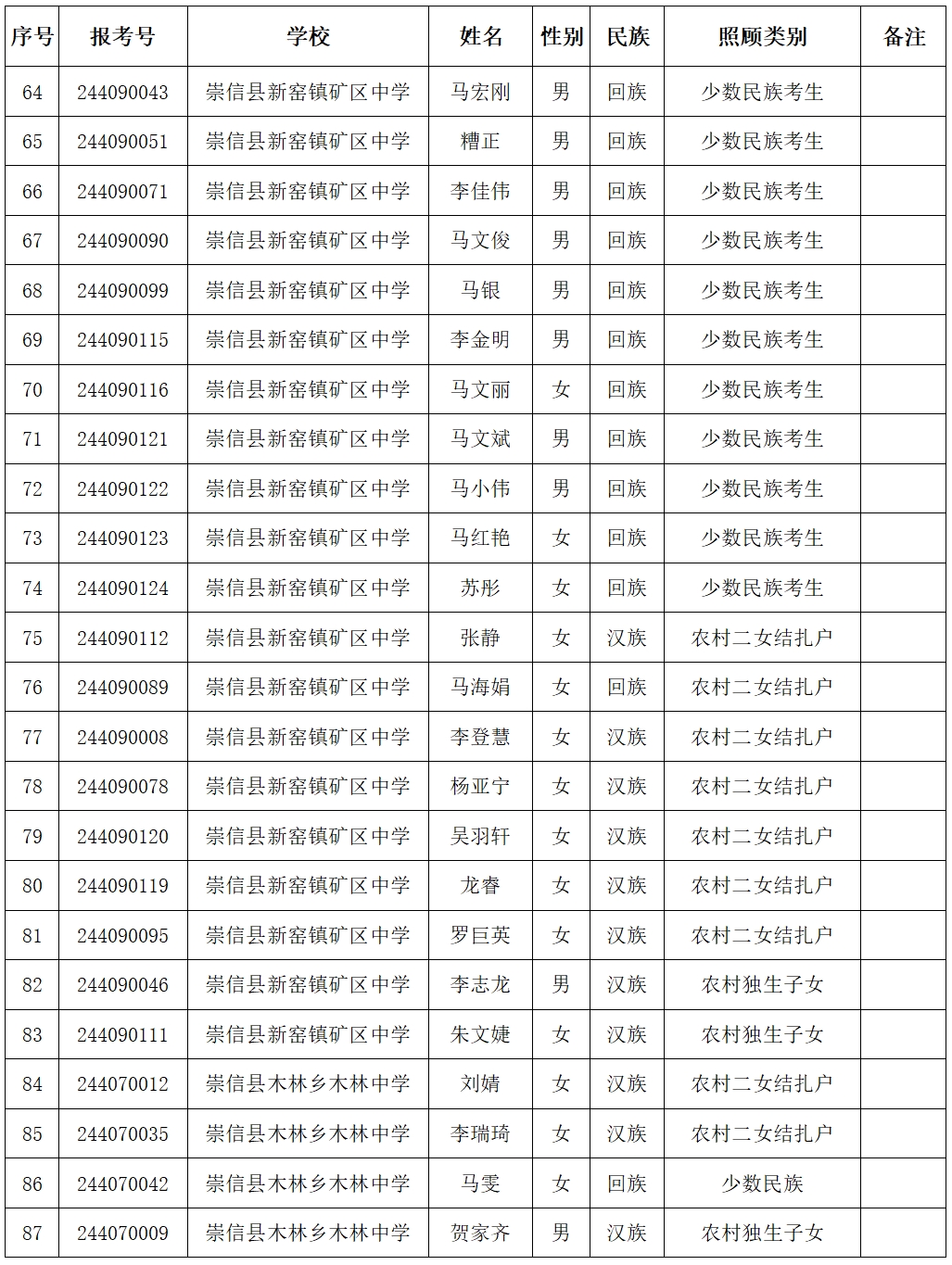 经审查,2024年我县共有88名学生具备中考照顾资格,现将享受照顾考生信息予以公示,欢迎社会各界监督。