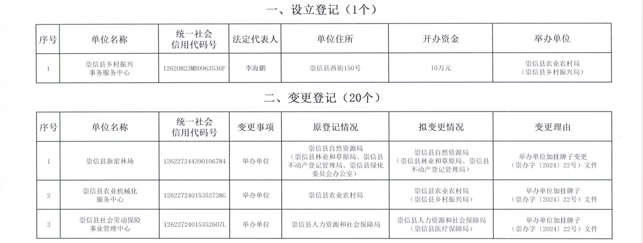 崇信县事业单位登记管理公告(202402号)