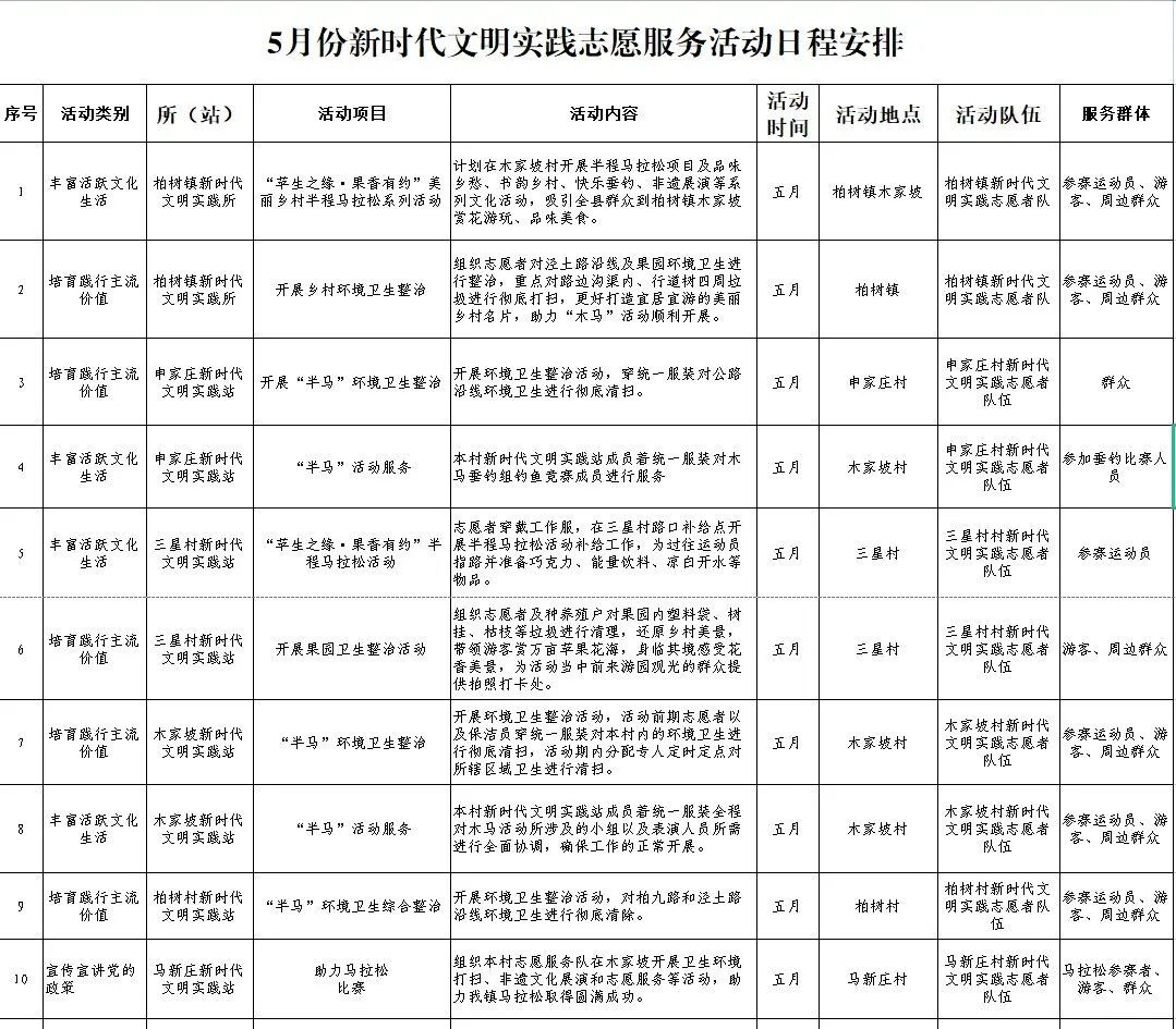 柏树镇5月份新时代文明实践志愿服务活动计划清单来啦! 发文日期:2023-05-12 17:48 来源:王丽君 审核 史军辉 作者:朱双双 编辑:朱双双 扫一扫在手机打开当前页 上一篇: “三抓三促”行动进行时丨黄花乡:党建引领聚合力 人居环境展新颜 下一篇: 【“三抓三促”行动进行时】崇信县柏树镇:强化综治维稳 推进平安建设