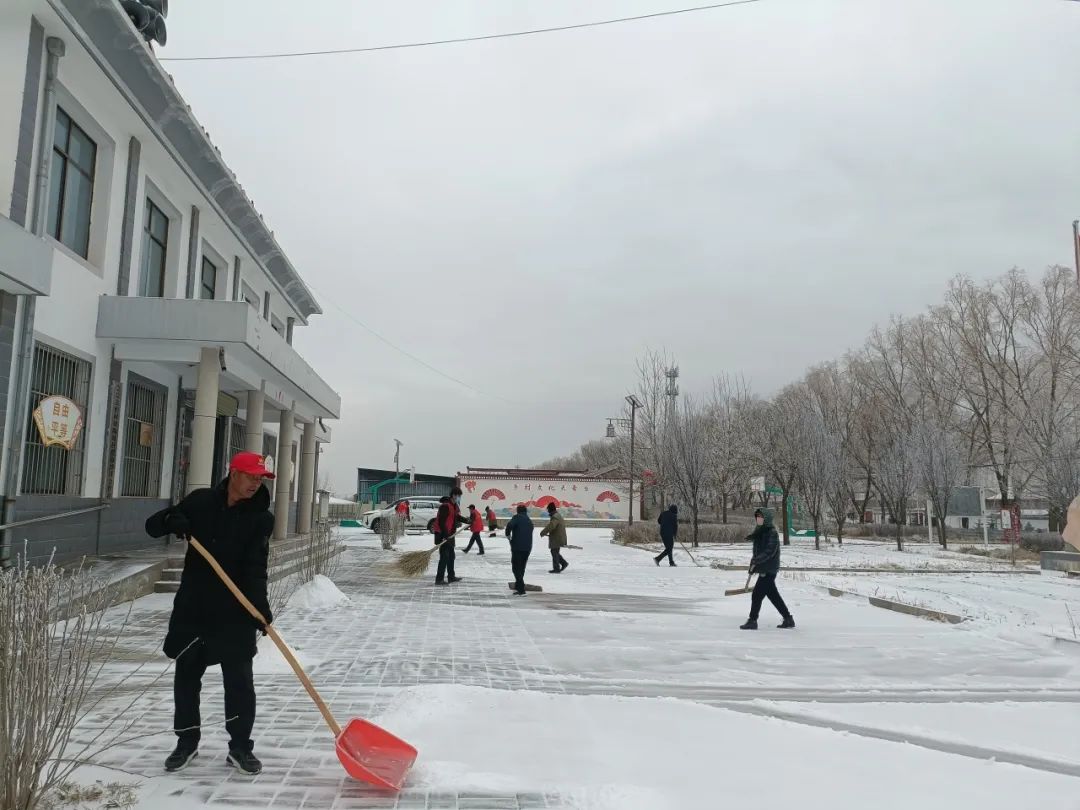 清雪现场,大家充分发扬了不怕苦不怕累的精神,不畏严寒,积极行动,纷纷拿着扫雪工具,集中对居民出入交通要道上的积雪进行清理。大家分工有序,配合默契,忙碌的身影映衬着红马甲,在冬天凛冽的寒风中构成了一道靓丽的风景线。经过大家的不懈努力,辖区主道路的积雪全部清扫干净,为居民提供了出行安全保障。