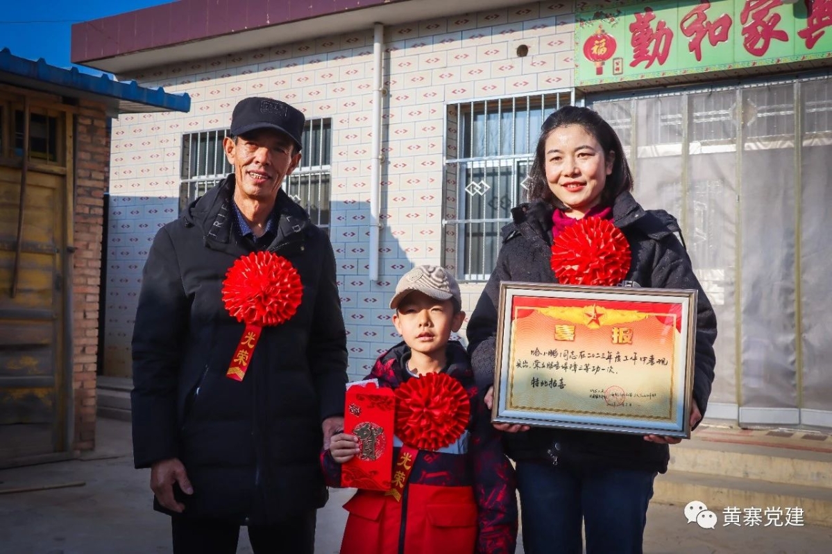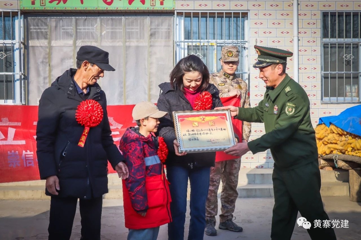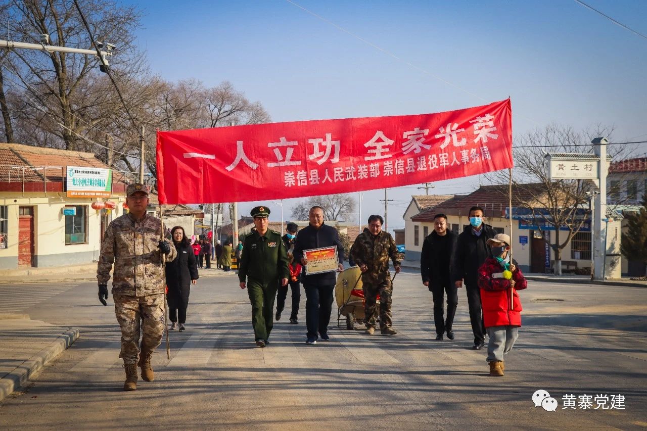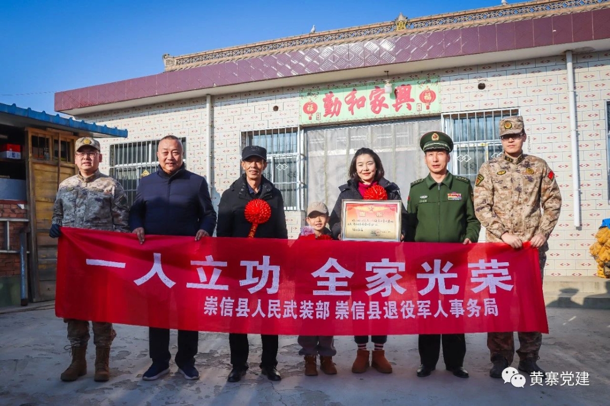 为进一步弘扬拥军优属的光荣传统,增强军人军属的自豪感和荣誉感,12月27日,由崇信县武装部、县退役军人事务局、黄寨镇联合组成的送喜报队伍来到黄寨镇黄土寺村,向荣立三等功现役军人哈小鹏家属报喜,并为他们送上了立功喜报及奖金,让他的家属和家乡人民共同分享这份喜悦和荣光。