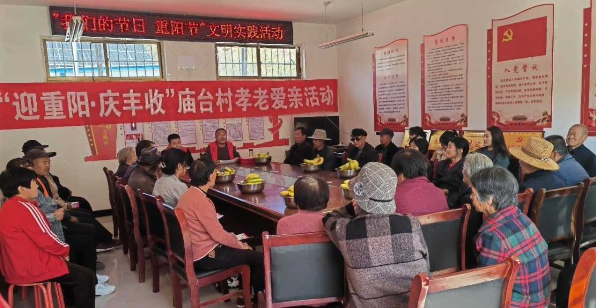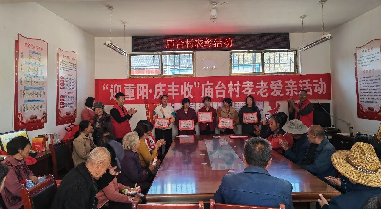 为弘扬中华优秀传统文化,培育和践行社会主义核心价值观,传承尊老、敬老、爱老传统美德,锦屏镇庙台村开展“迎重阳 庆丰收”孝老爱亲主题活动。