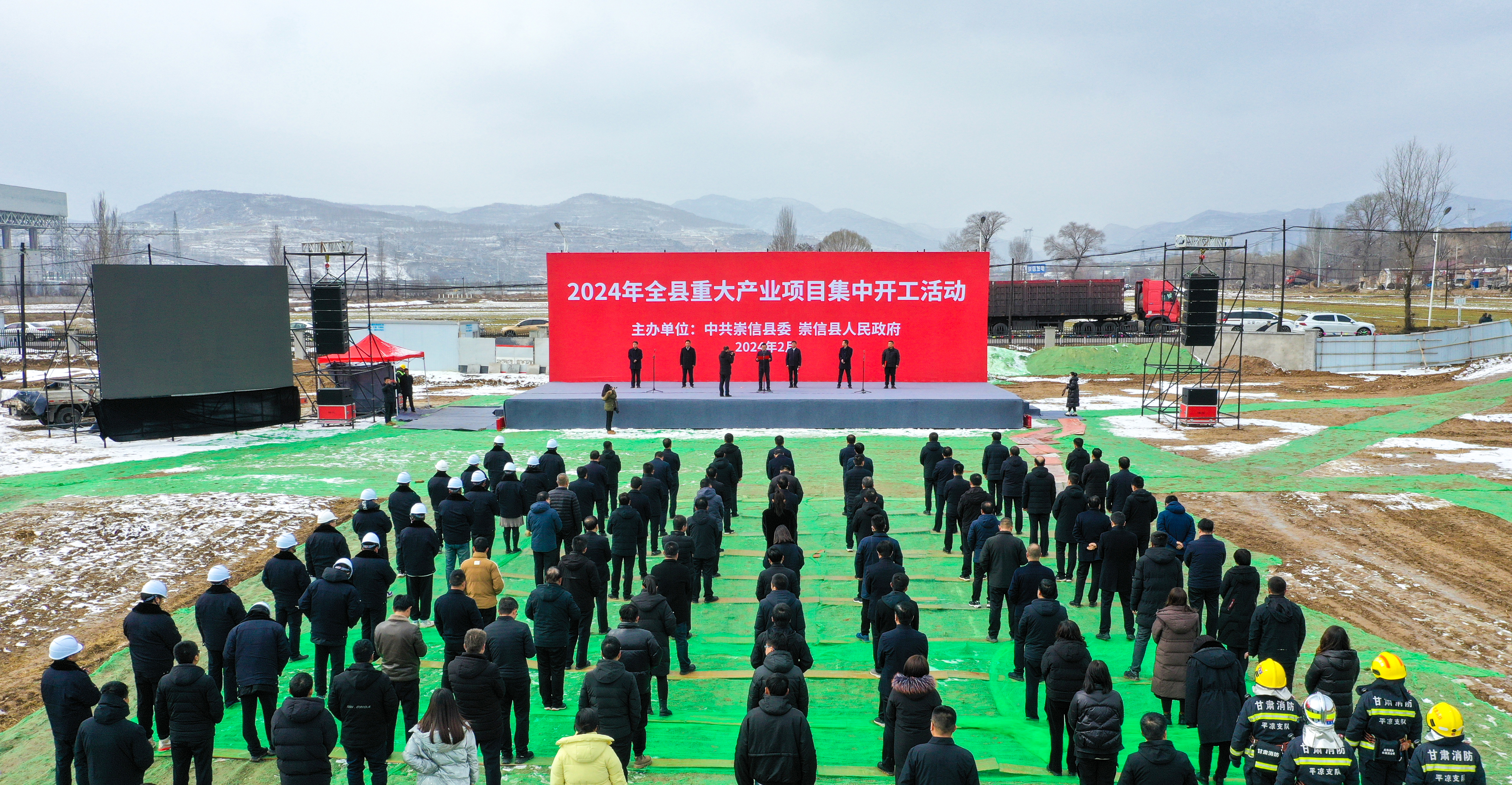2月29日,崇信县在观看2024年全省重大产业项目开工活动后,在工业集中区宏泰热电有限公司背压式热电联产项目现场举行2024年重大产业项目开工活动。县委书记杨聪作动员讲话并宣布项目开工。县委副书记赵志刚主持活动,县委常委、县政府常务副县长席鹏举介绍项目开工情况,县委常委、县政府副县长秦军杰,县工业集中区党工委书记、管委会主任秦岭参加活动,项目建设单位代表平凉市宏泰热电有限公司负责人作了发言。