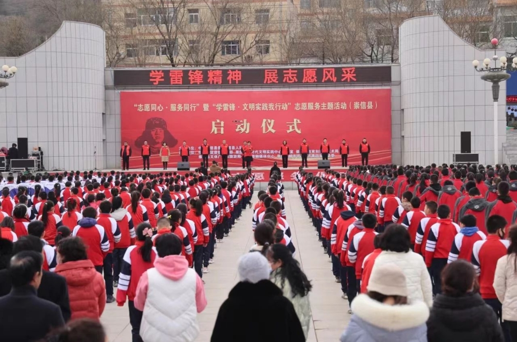 启动仪式上,观看了崇信县学雷锋志愿服务专题片,合唱了歌曲《学习雷锋好榜样》,城市社区志愿者代表、青年志愿者代表分享了学雷锋志愿服务心得,志愿者代表宣读了学雷锋志愿服务倡议书。