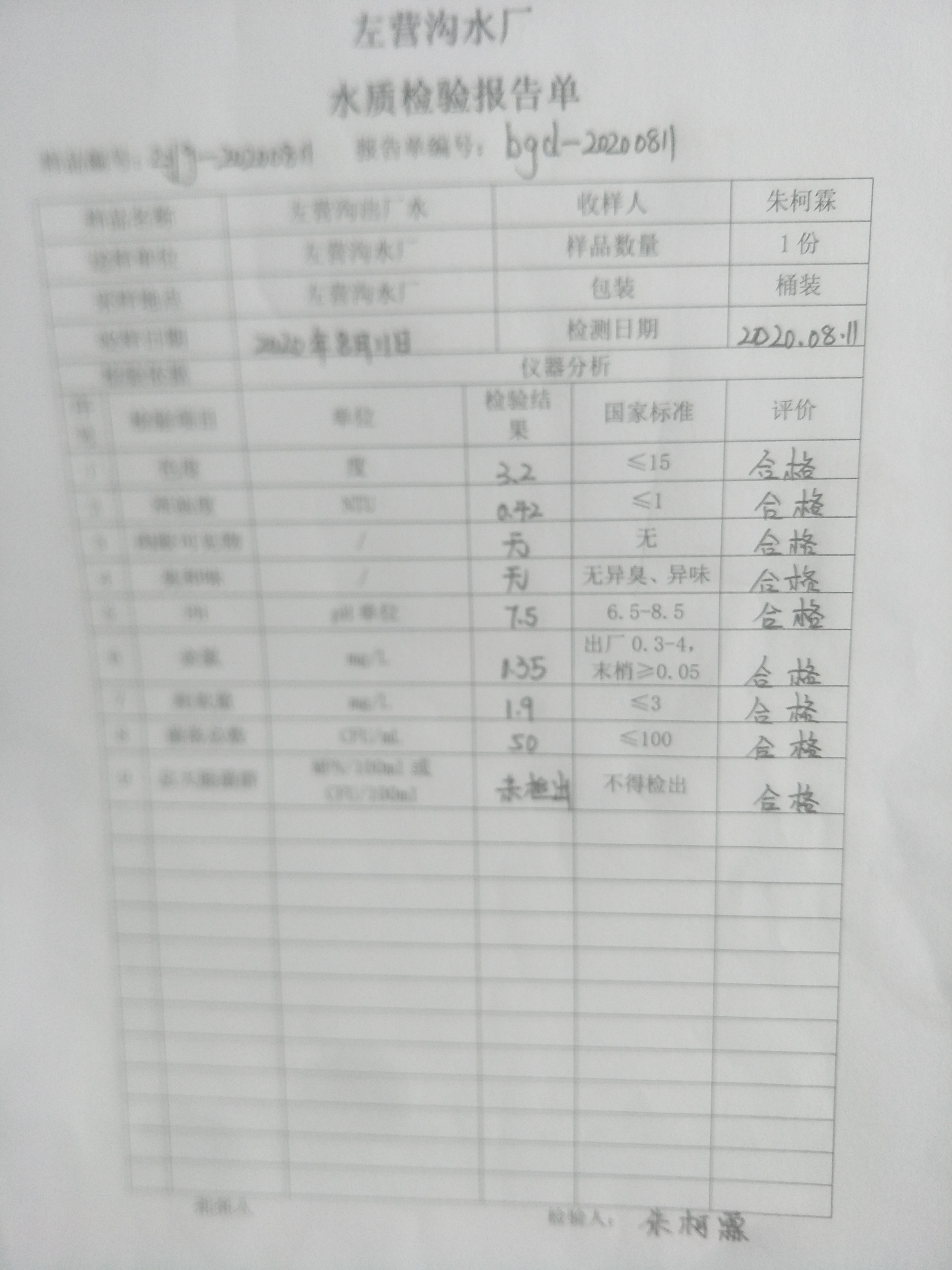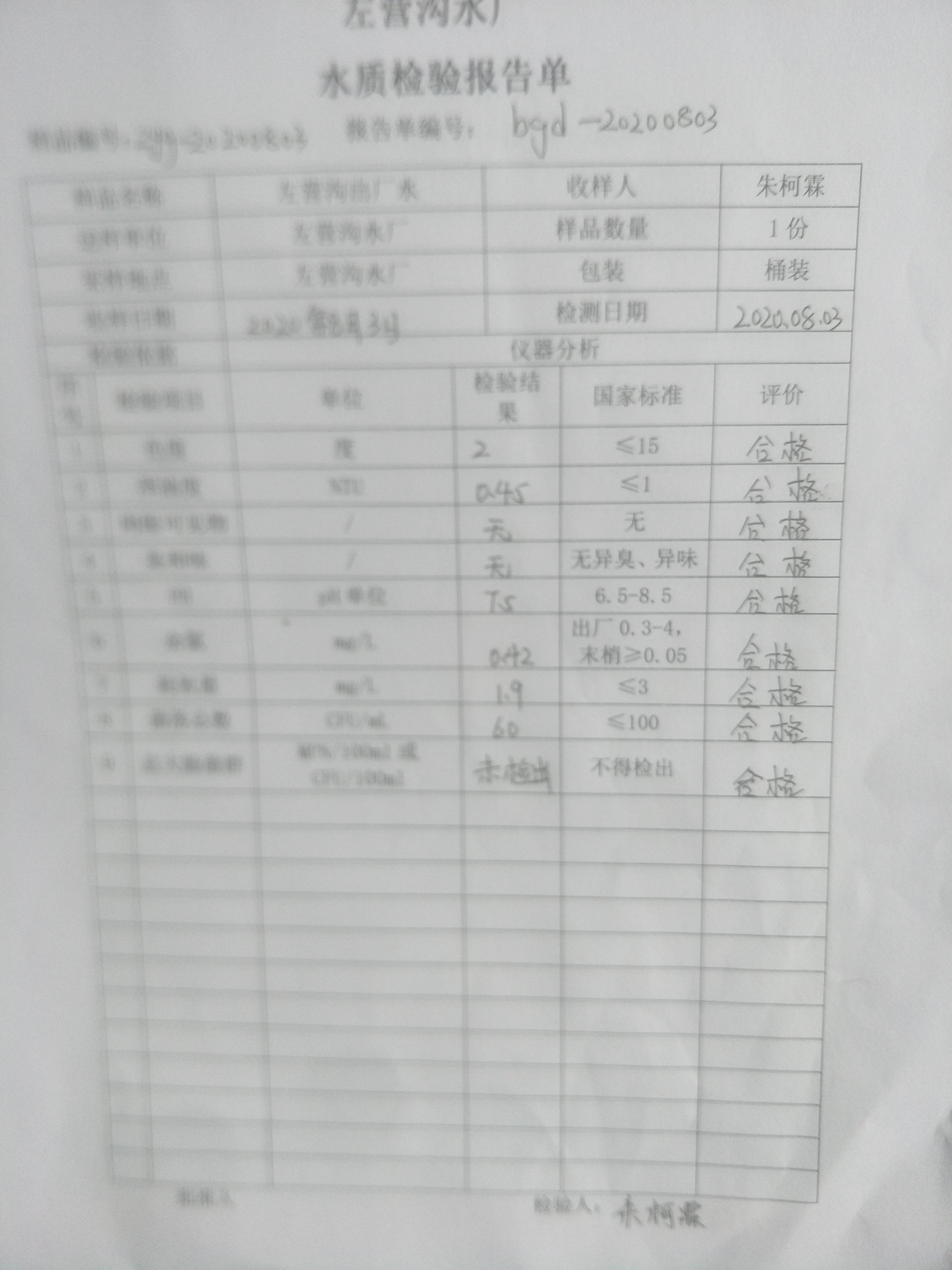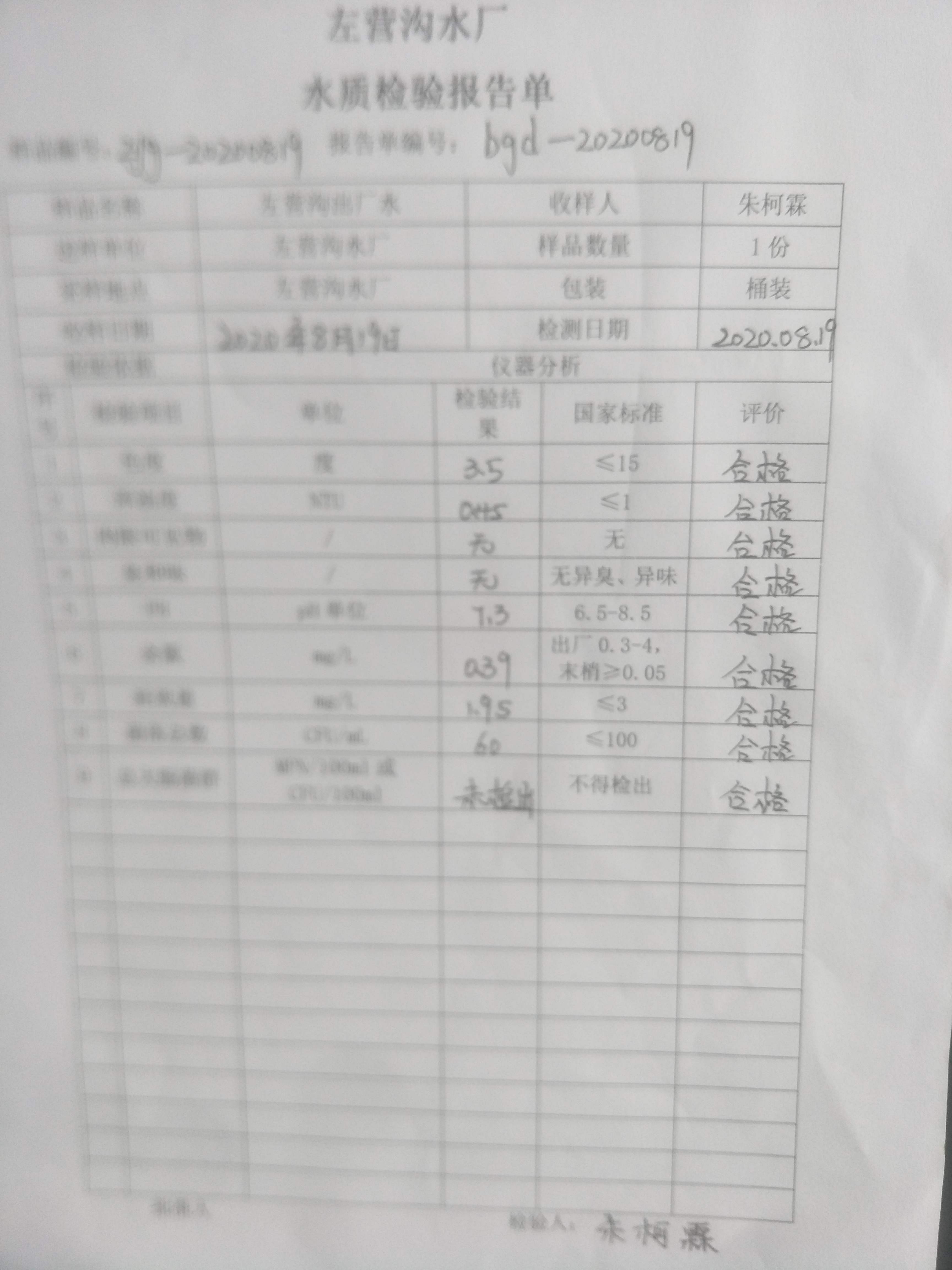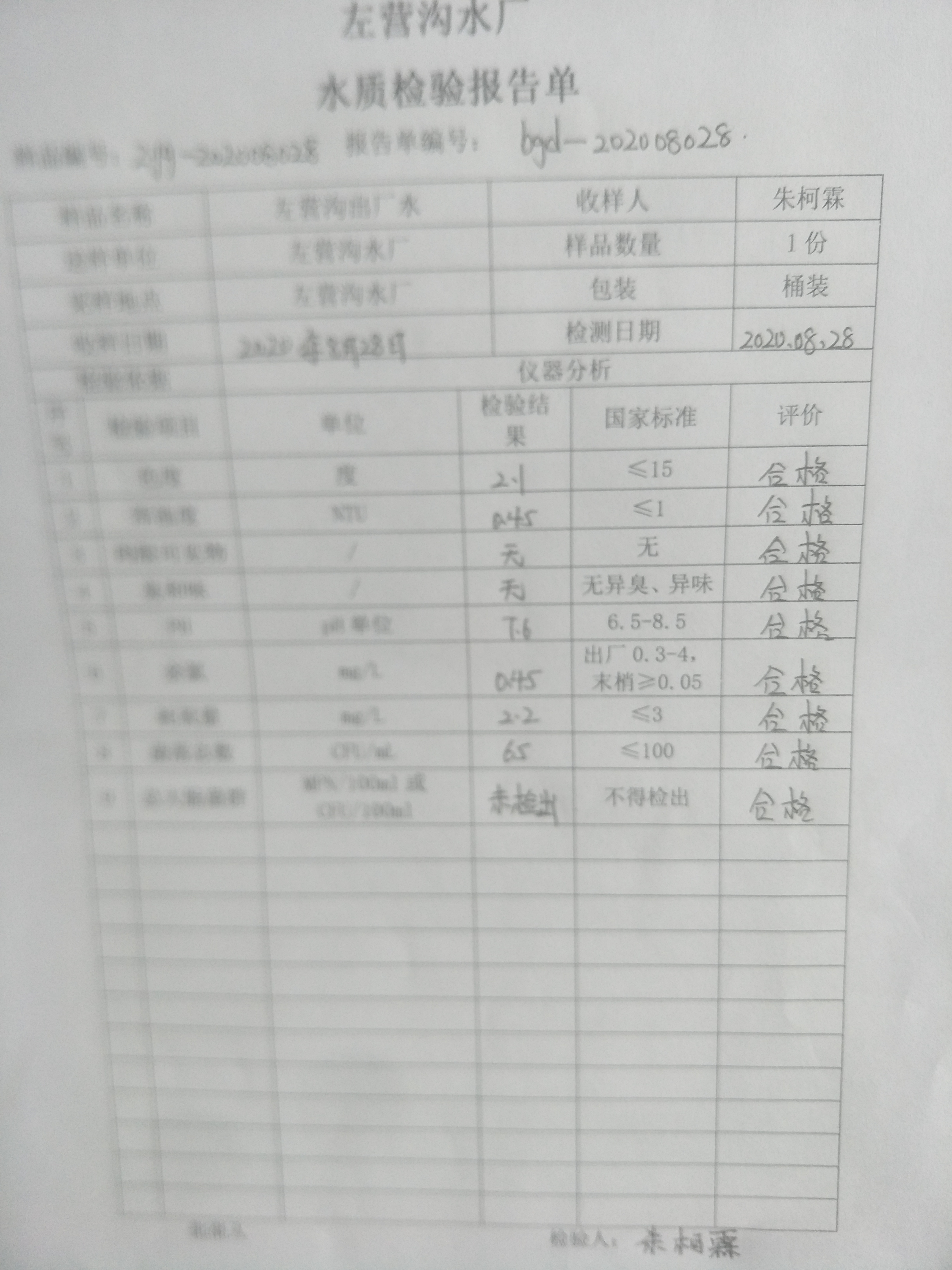 2020年左营沟水厂8月份水质检验报告单 发文日期:2020-09-28 00:00 来源:崇信县水务局 作者:崇信水务局 编辑:崇信水务局 IMG20200928171445 IMG20200928171452 IMG20200928171458 IMG20200928171505_1 扫一扫在手机打开当前页 上一篇: 崇信县农业农村局2020年扶贫资金项目计划公示表 下一篇: 2020年左营沟水厂7月份水质检验报告单