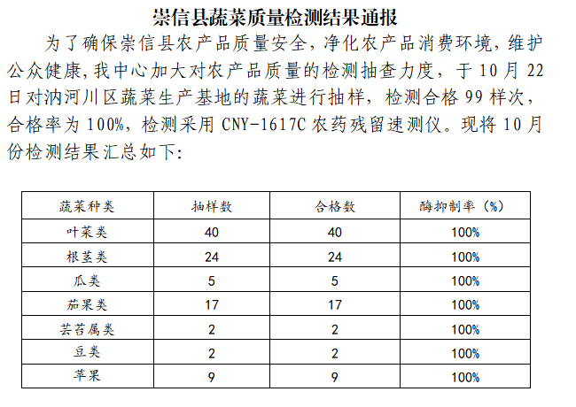 2020年10月份崇信县蔬菜质量检测结果通报(第16期) 发文日期:2020-10-23 00:00 来源:崇信县农业农村局 作者:崇信农牧局 编辑:崇信农牧局 扫一扫在手机打开当前页 上一篇: 2020年11月份崇信县蔬菜质量检测结果通报(第17期) 下一篇: 2020年10月份农产品农药残留检验报告单(第16期)
