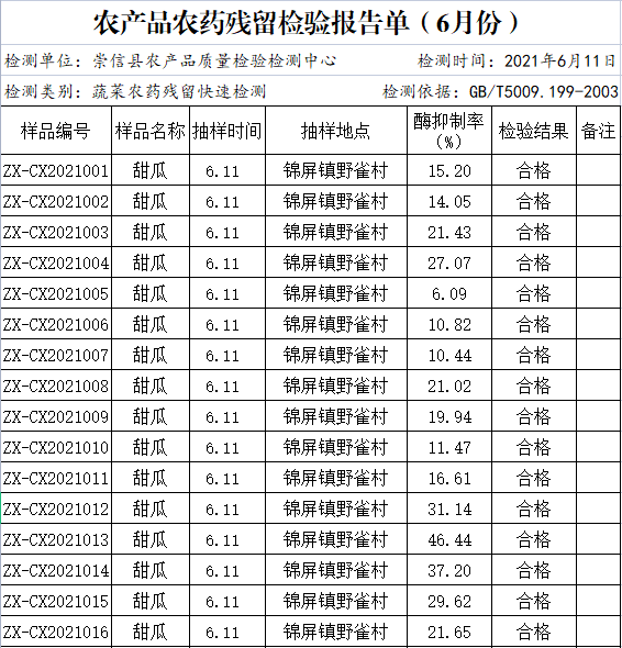 2021年6月份农产品农药残留检验报告单(第8期) 发文日期:2021-06-17 00:00 来源:崇信部门信息公开 作者:崇信农牧局 编辑:崇信农牧局 扫一扫在手机打开当前页 上一篇: 崇信县农产品农药残留检验报告 下一篇: 2021年6月份崇信县蔬菜质量检测结果通报(第8期)
