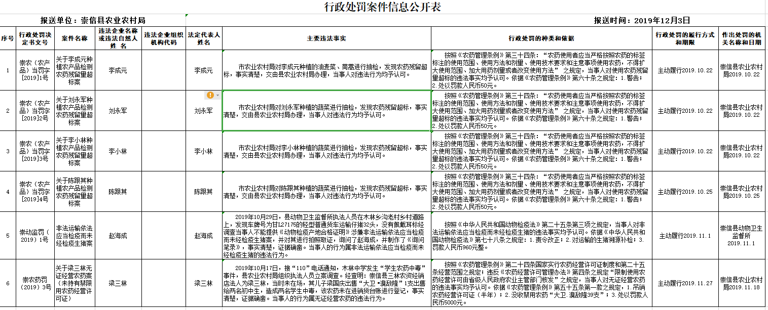 2019案件信息公开表 发文日期:2019-12-03 00:00 来源:崇信部门信息公开 作者:崇信农牧局 编辑:崇信农牧局 扫一扫在手机打开当前页 上一篇: 2019年案件信息公开表 下一篇: 2019年11月崇信县蔬菜质量检测结果通报