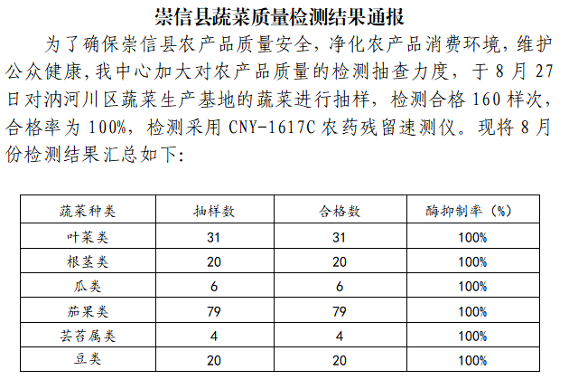 2020年8月份崇信县蔬菜质量检测结果通报(第13期) 发文日期:2020-08-31 00:00 来源:崇信县农业农村局 作者:崇信农牧局 编辑:崇信农牧局 扫一扫在手机打开当前页 上一篇: 2020年9月份农产品农药残留检验报告单(第14期) 下一篇: 2020年8月份农产品农药残留检验报告单(第13期)