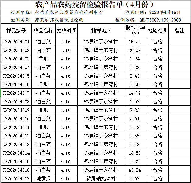 2020年4月份农产品农药残留检验报告单(第5期) 发文日期:2020-04-26 00:00 来源:崇信县农业农村局 作者:崇信农牧局 编辑:崇信农牧局 扫一扫在手机打开当前页 上一篇: 2020年4月份崇信县蔬菜质量检测结果通报(第6期) 下一篇: 2020年4月份农产品农药残留检验报告单(第6期)