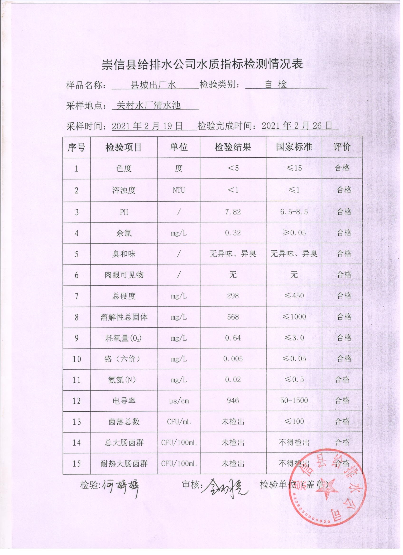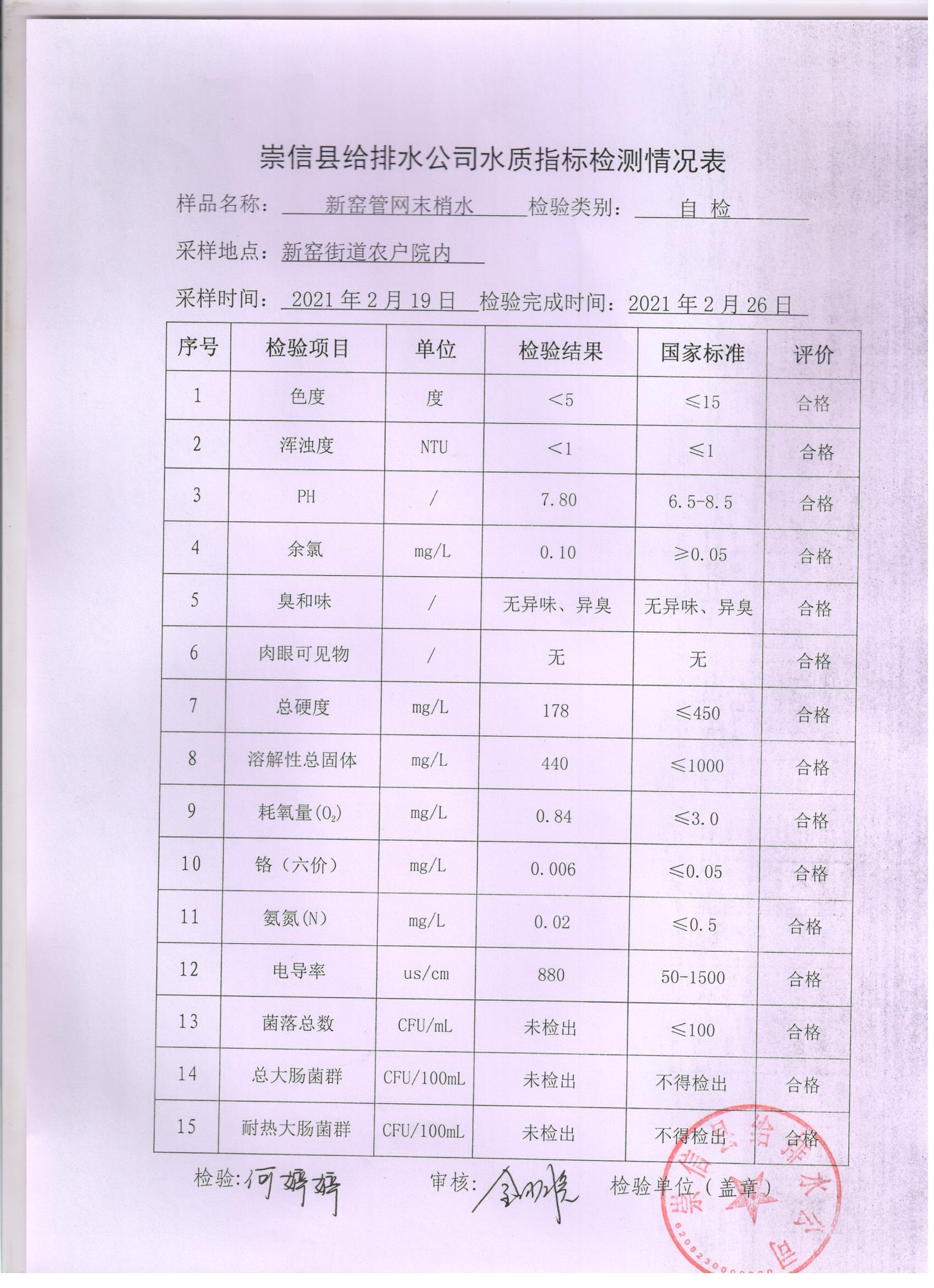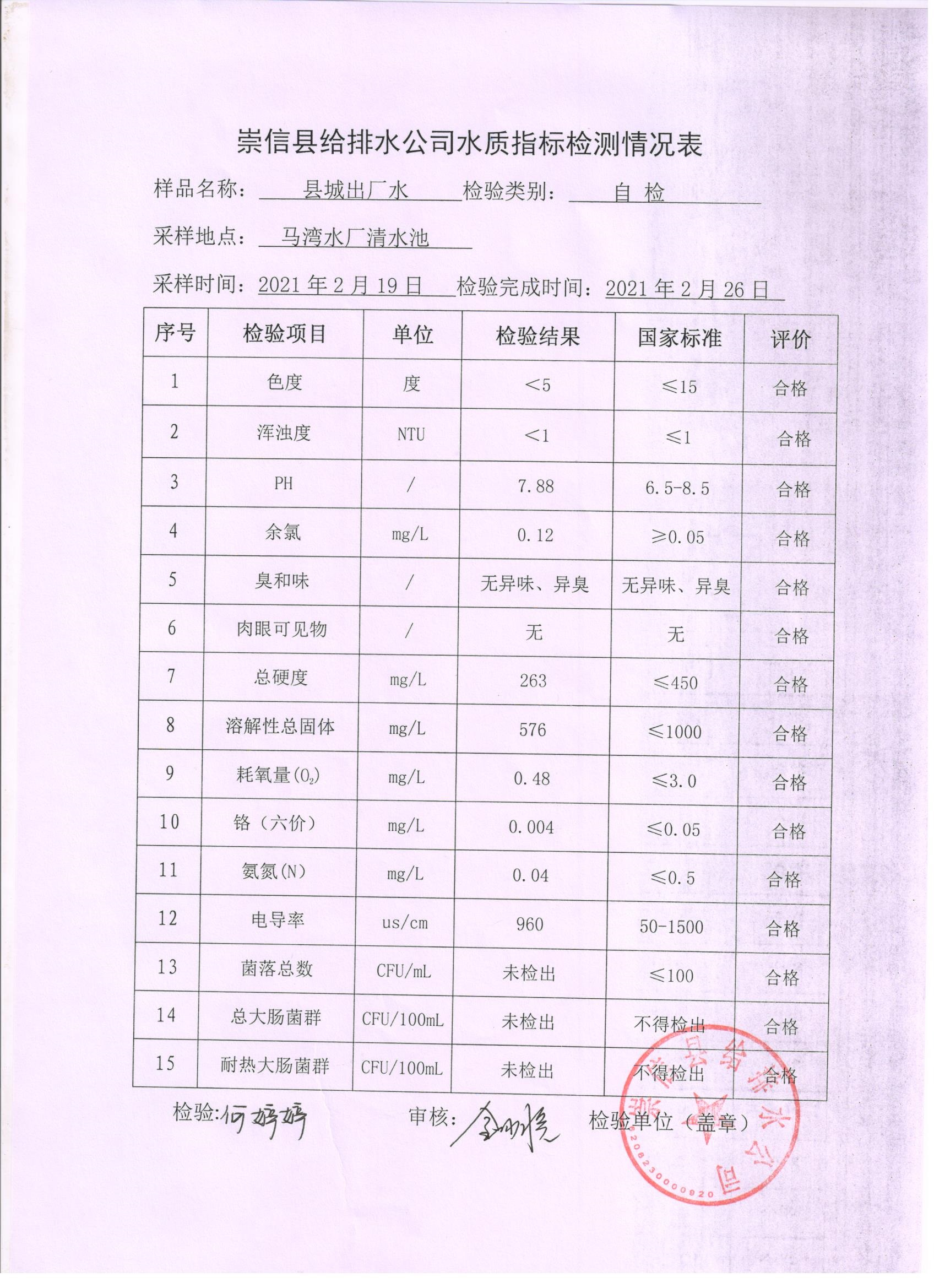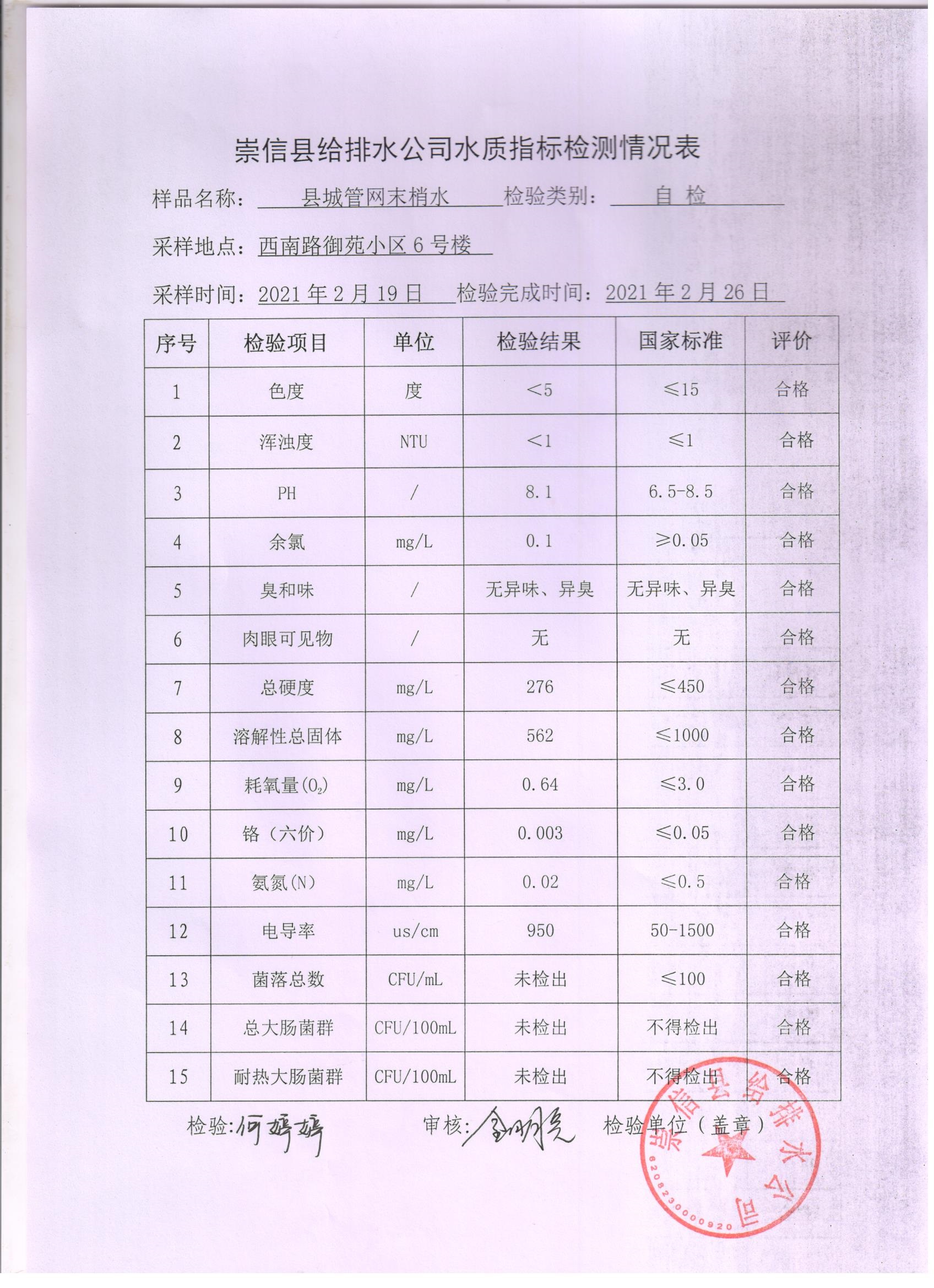 2021年2月份水质化验报告单 发文日期:2021-04-09 00:00 来源:崇信县住房和城乡建设局 作者:崇信住建局 编辑:崇信住建局 扫一扫在手机打开当前页 上一篇: 崇信县市场监督管理局执法人员名录 下一篇: 城区居民饮水安全告知书