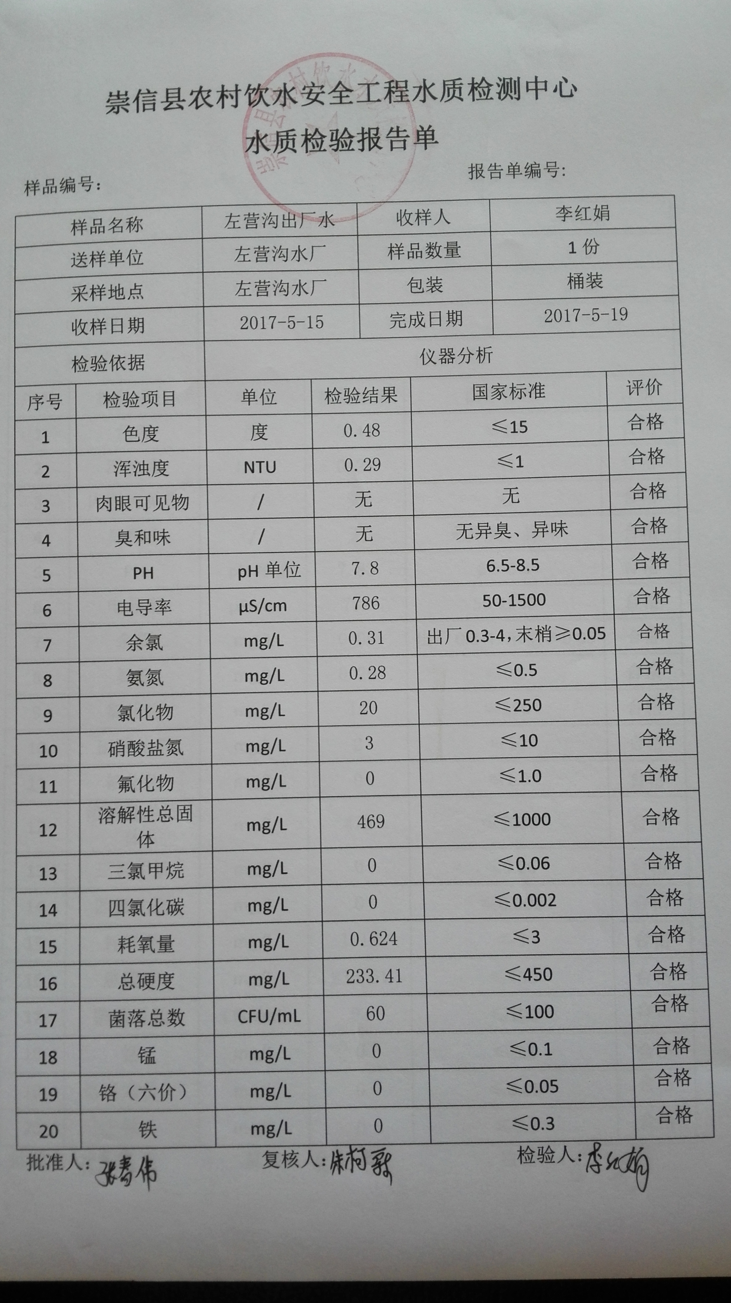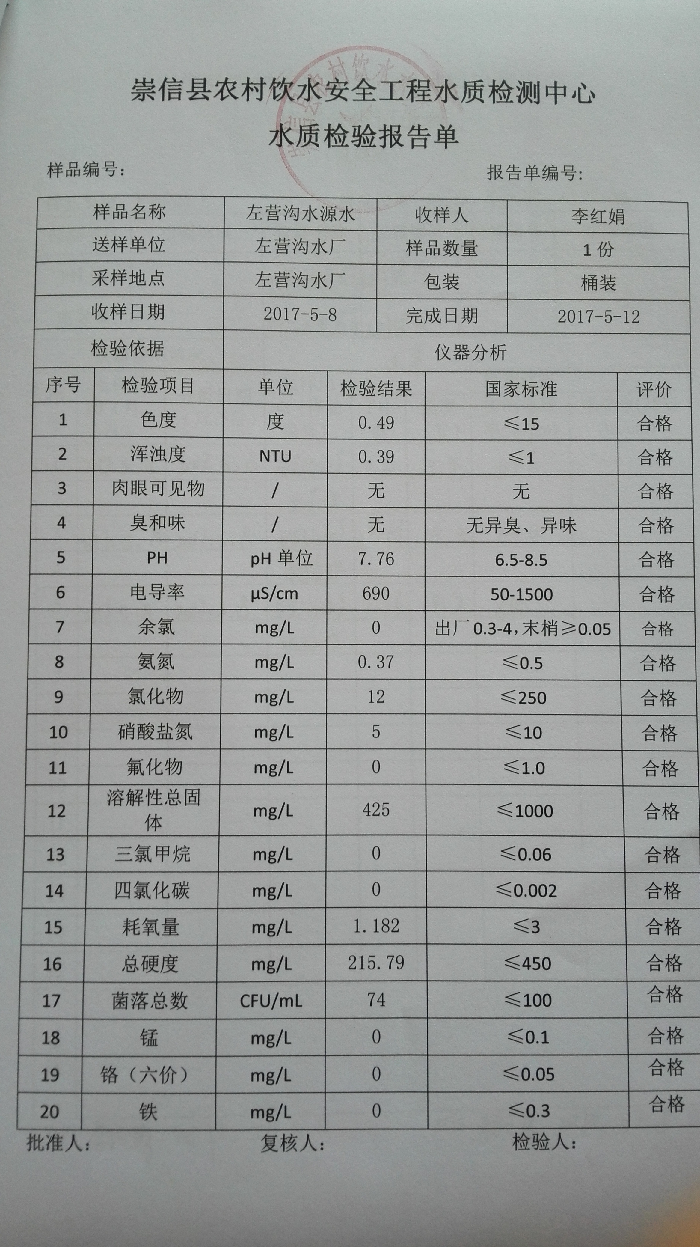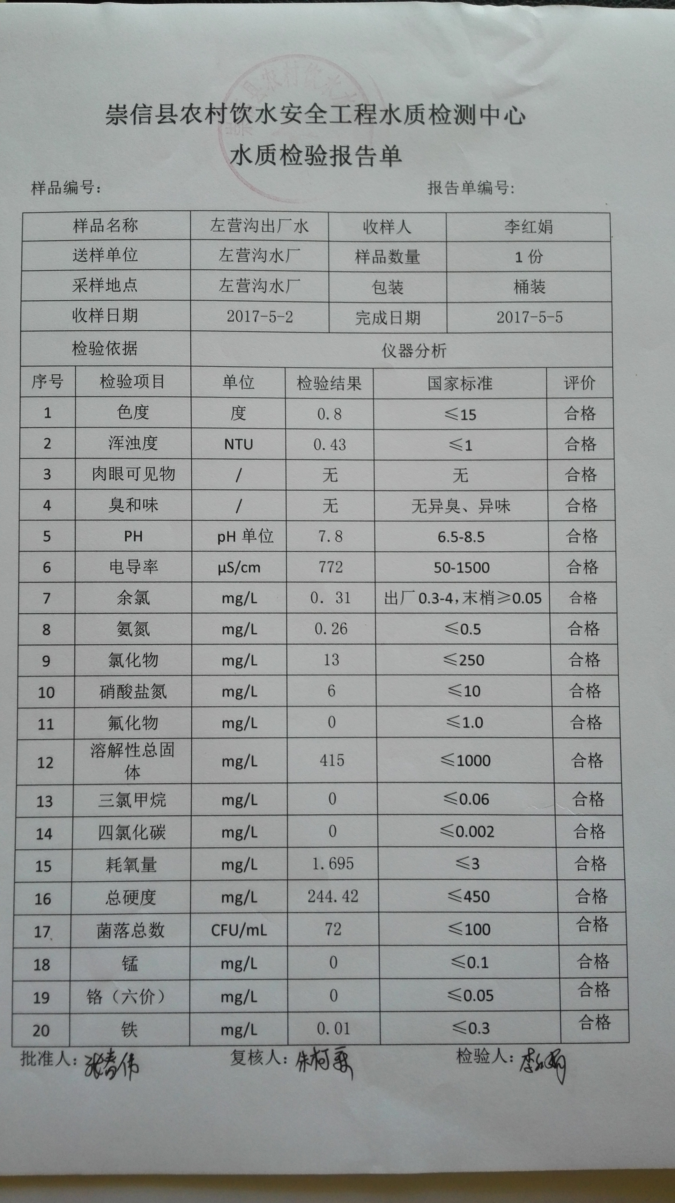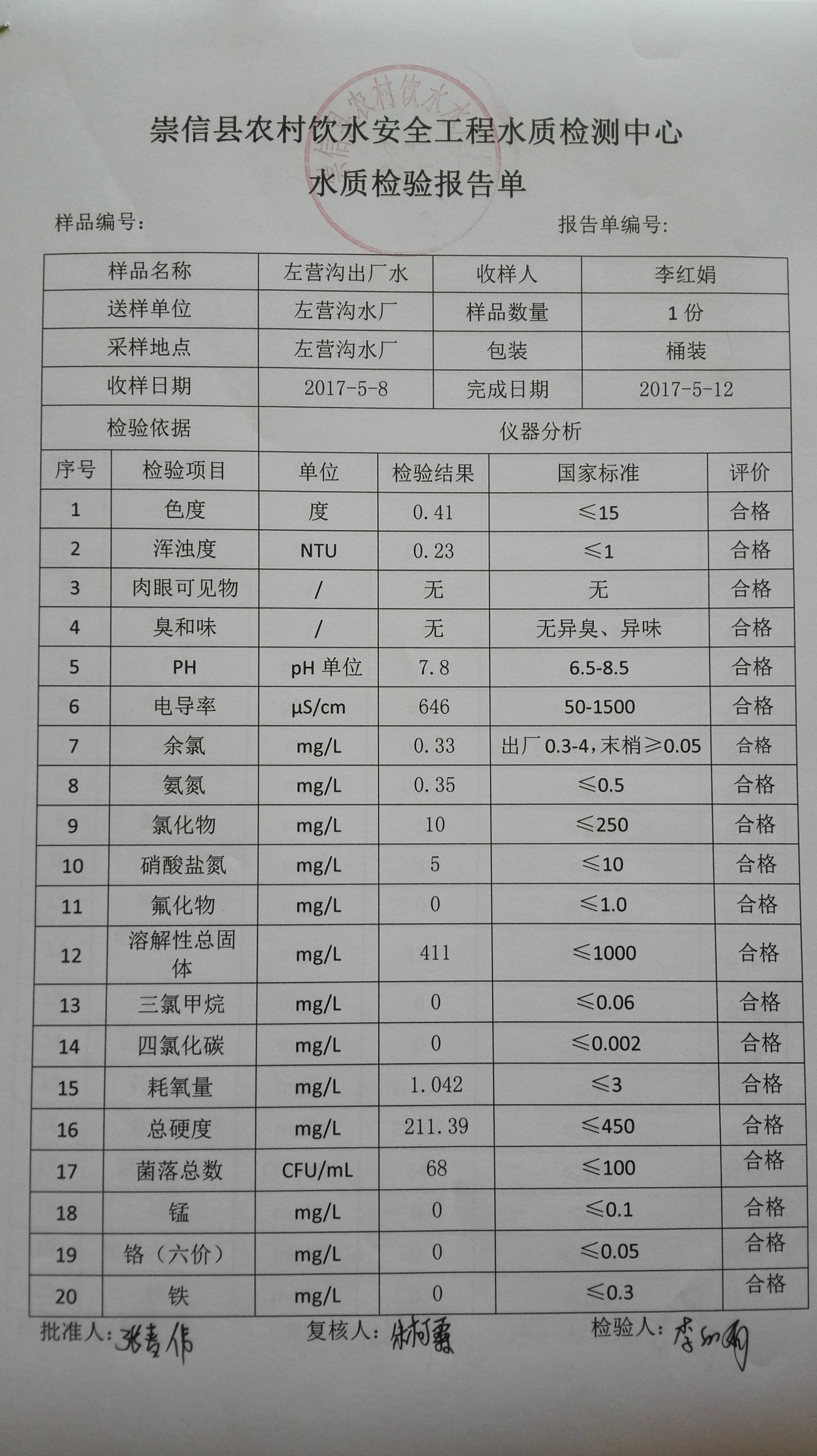 2017年5月份左营沟水厂水质检测报告单 发文日期:2017-09-28 15:38 来源:崇信县水务局 作者:崇信水务局 编辑:崇信水务局 1506575769762 1506575783960 1506575796801 1506575809987 1506575820333 1506575829787 1506575841682 1506575851989 1506575865160 扫一扫在手机打开当前页 上一篇: 2017年6月份左营沟水厂水质检测报告单 下一篇: 2017年4月份左营沟水厂水质检测报告单