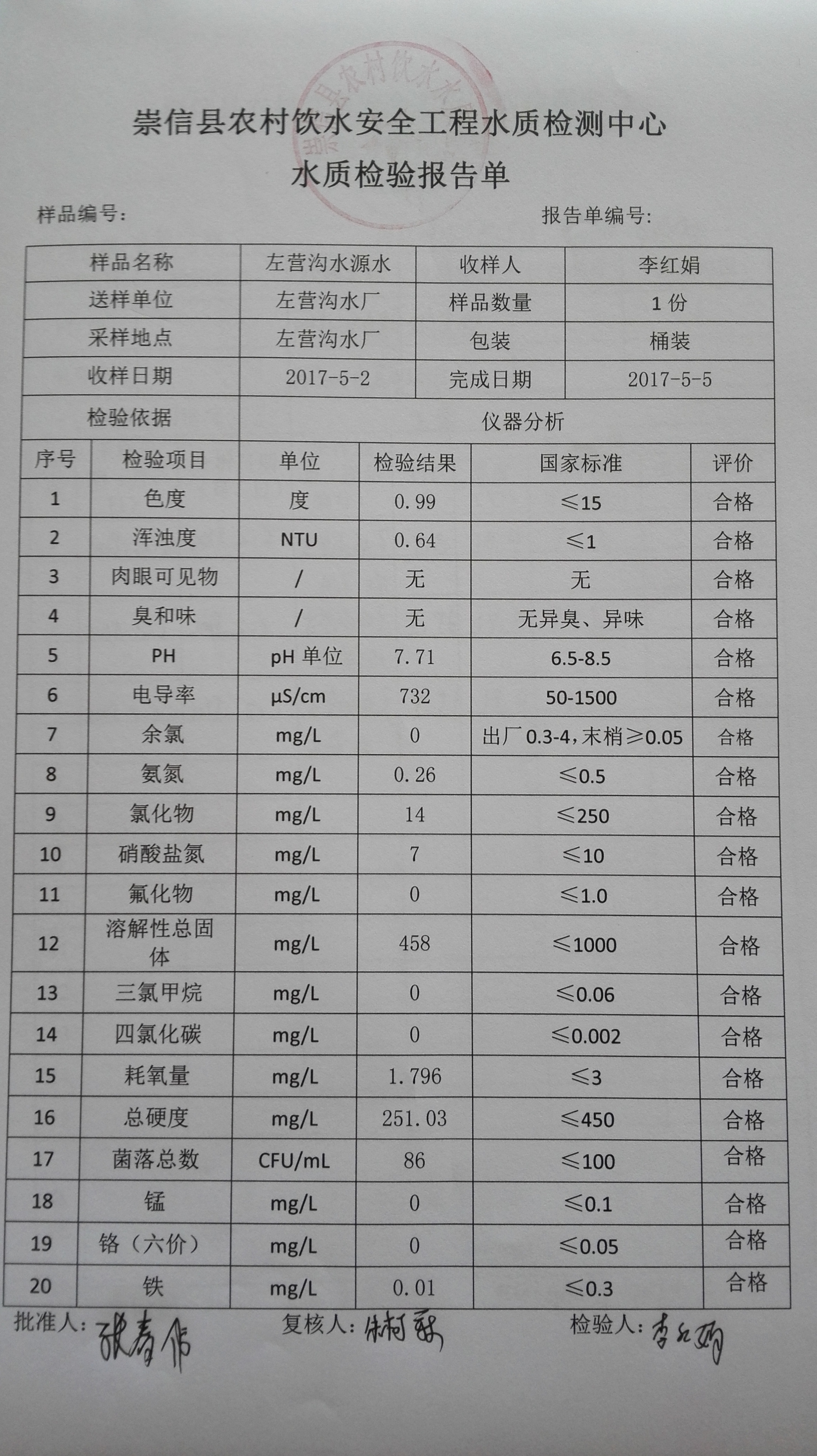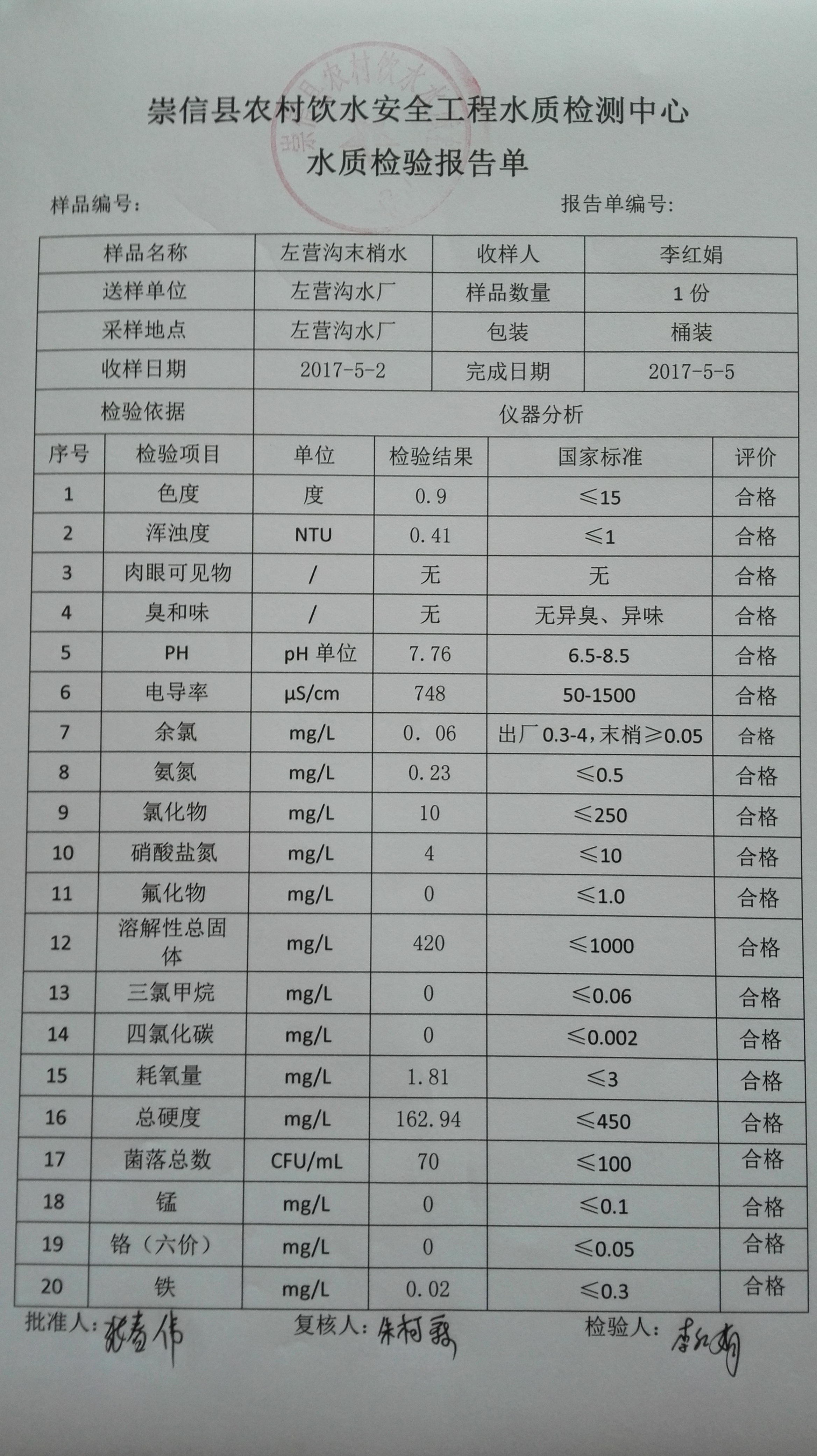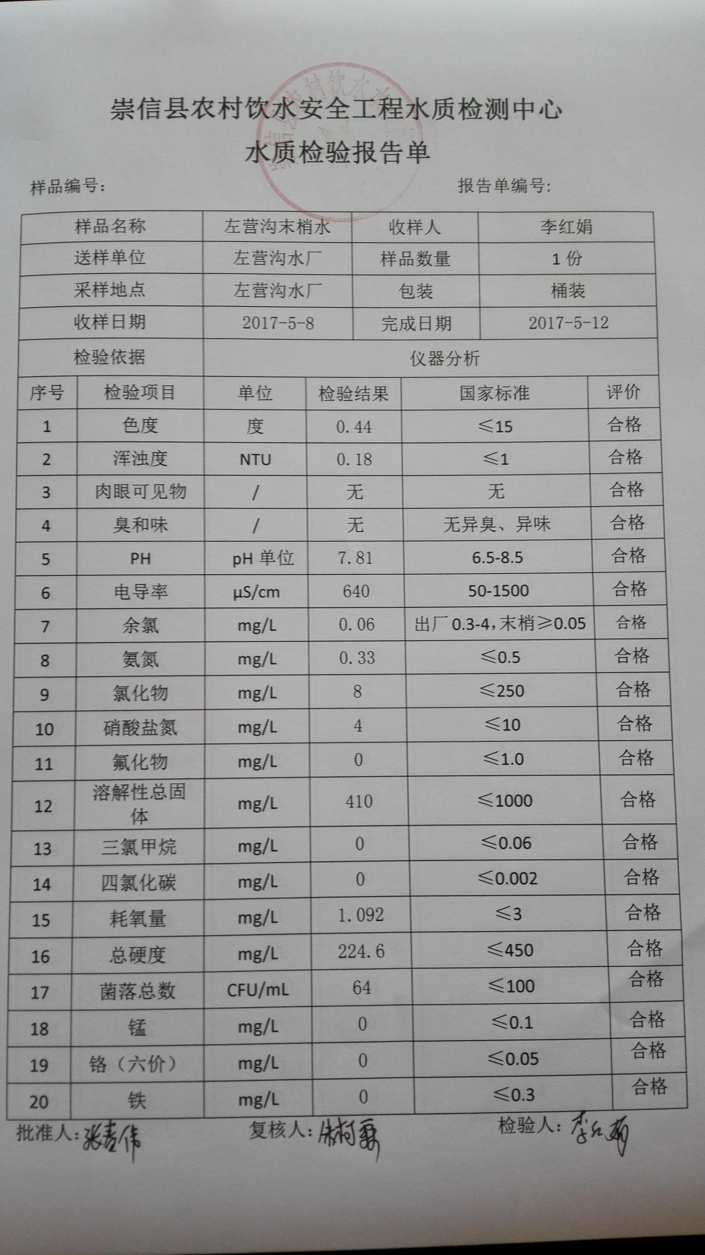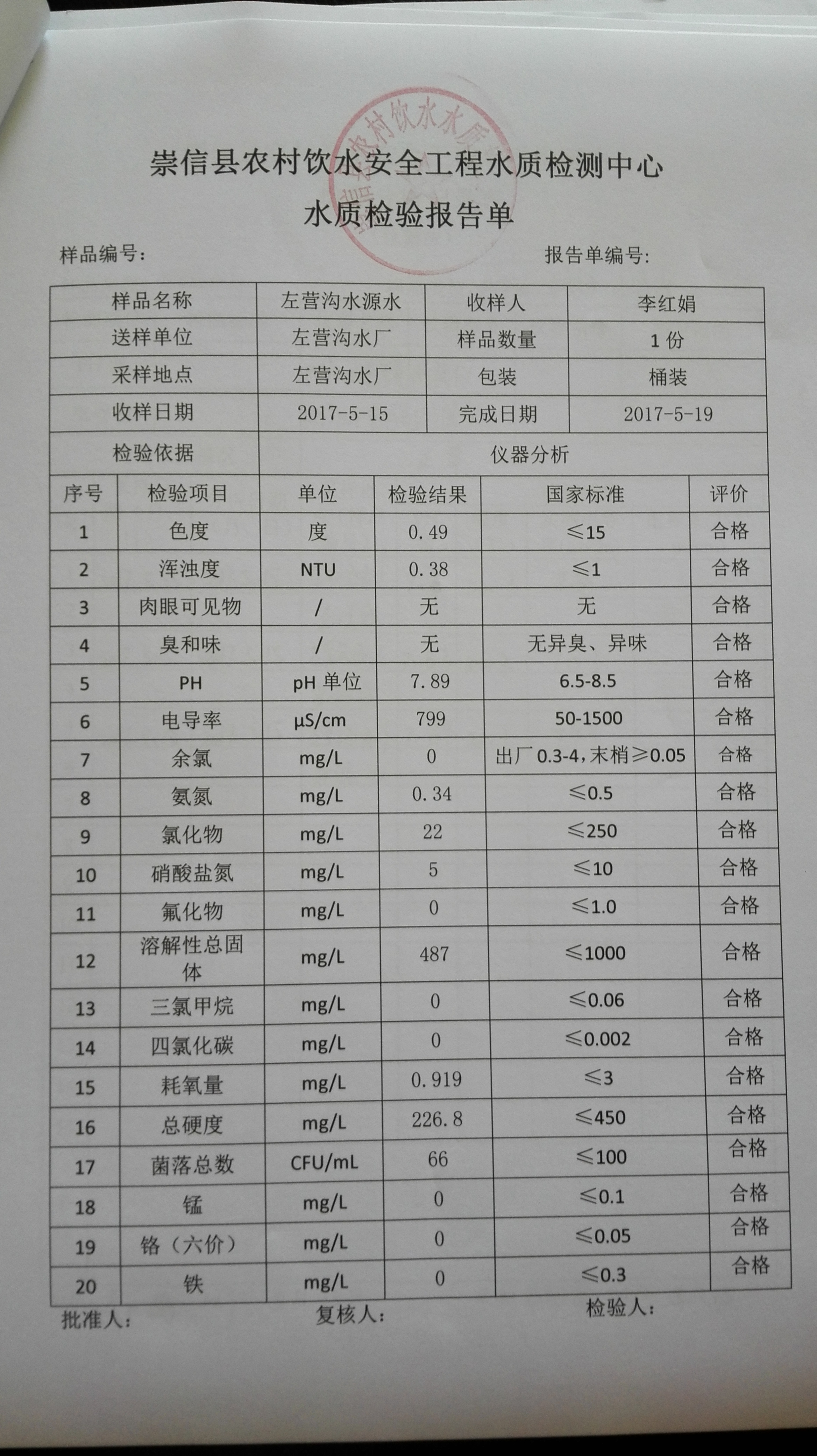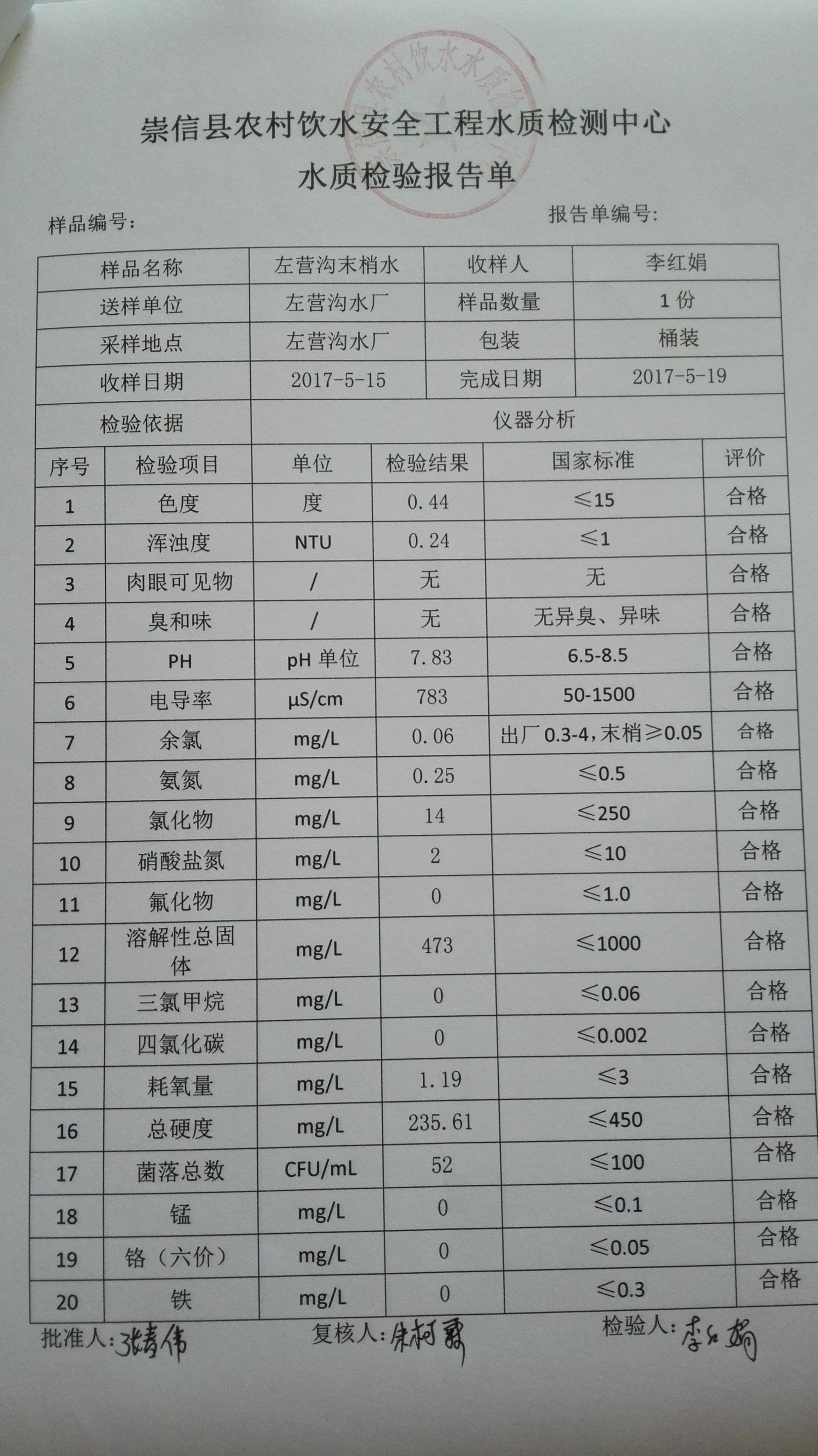 2017年5月份左营沟水厂水质检测报告单 发文日期:2017-09-28 15:38 来源:崇信县水务局 作者:崇信水务局 编辑:崇信水务局 1506575769762 1506575783960 1506575796801 1506575809987 1506575820333 1506575829787 1506575841682 1506575851989 1506575865160 扫一扫在手机打开当前页 上一篇: 2017年6月份左营沟水厂水质检测报告单 下一篇: 2017年4月份左营沟水厂水质检测报告单