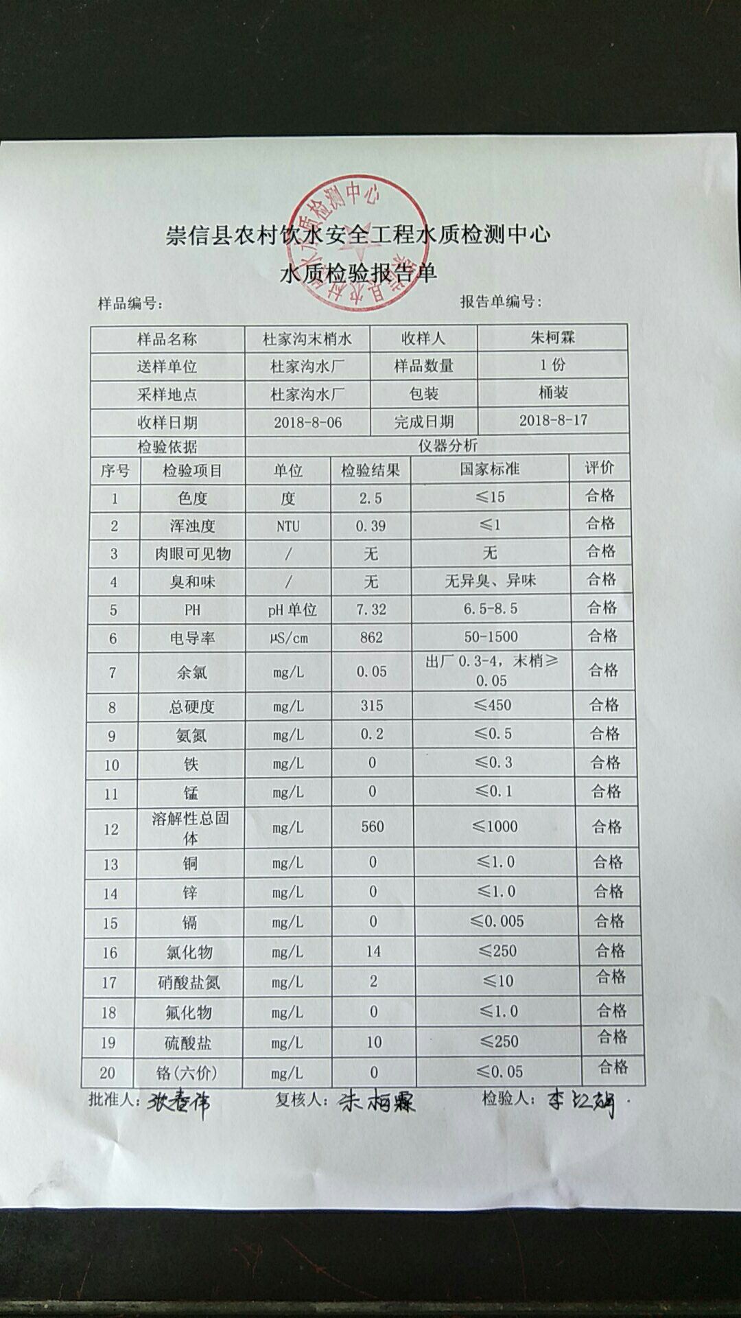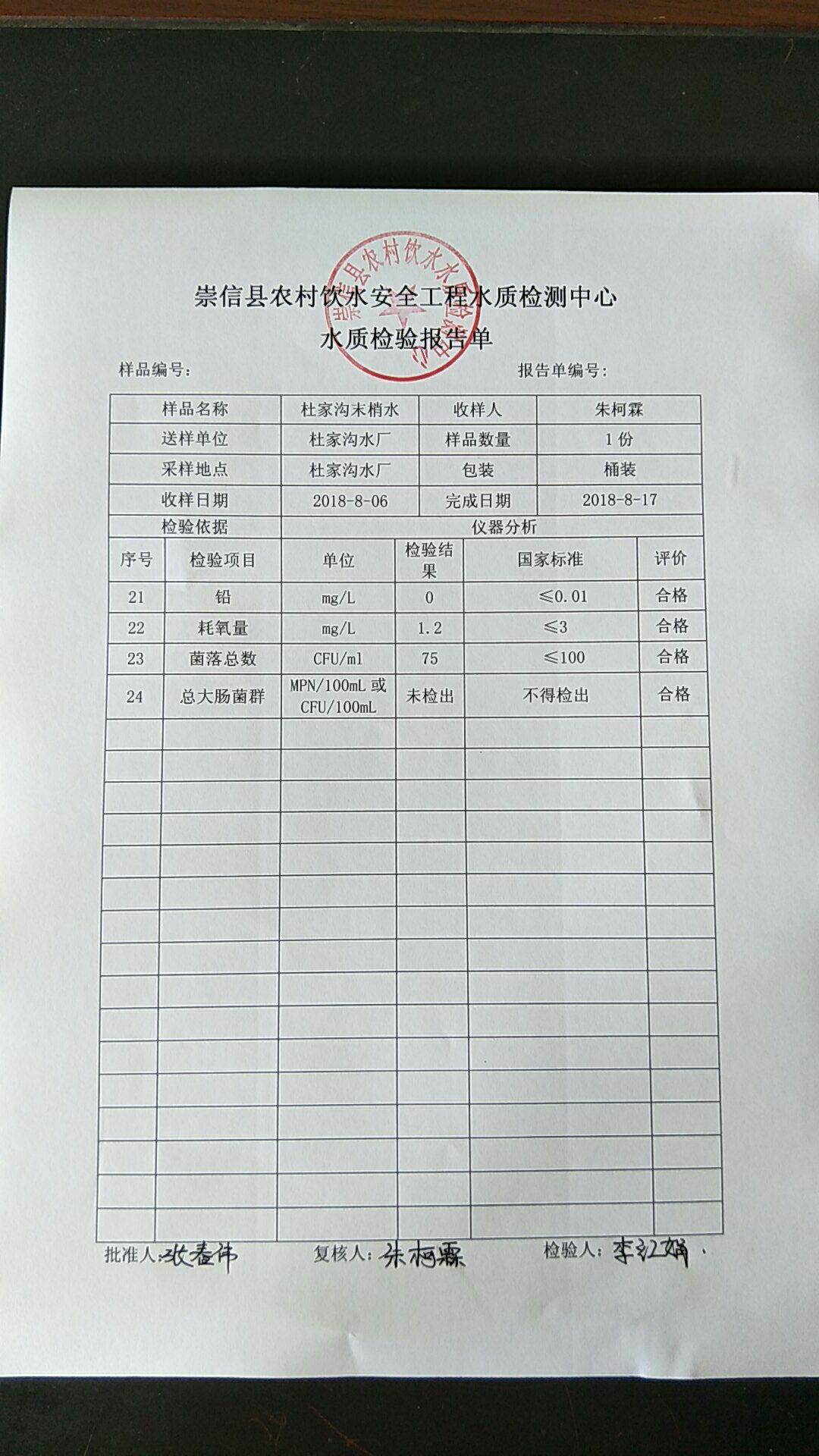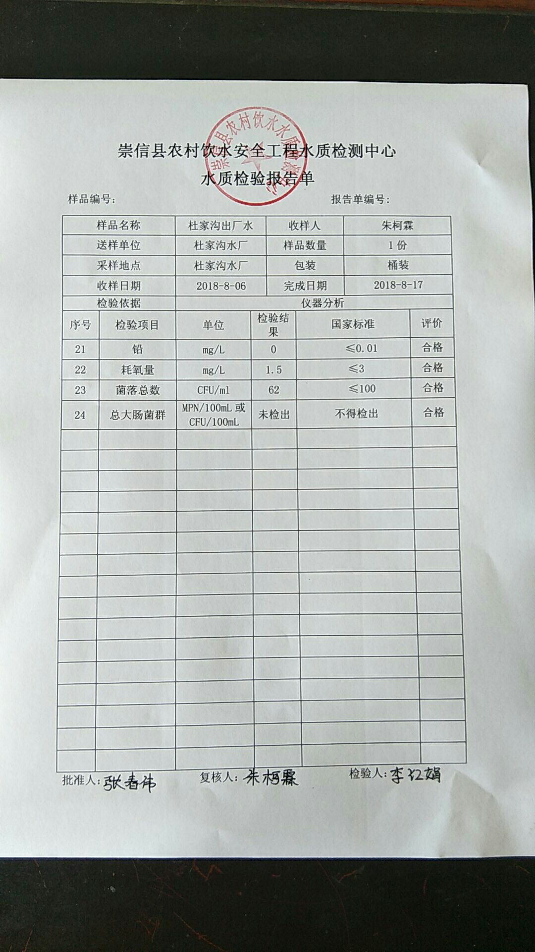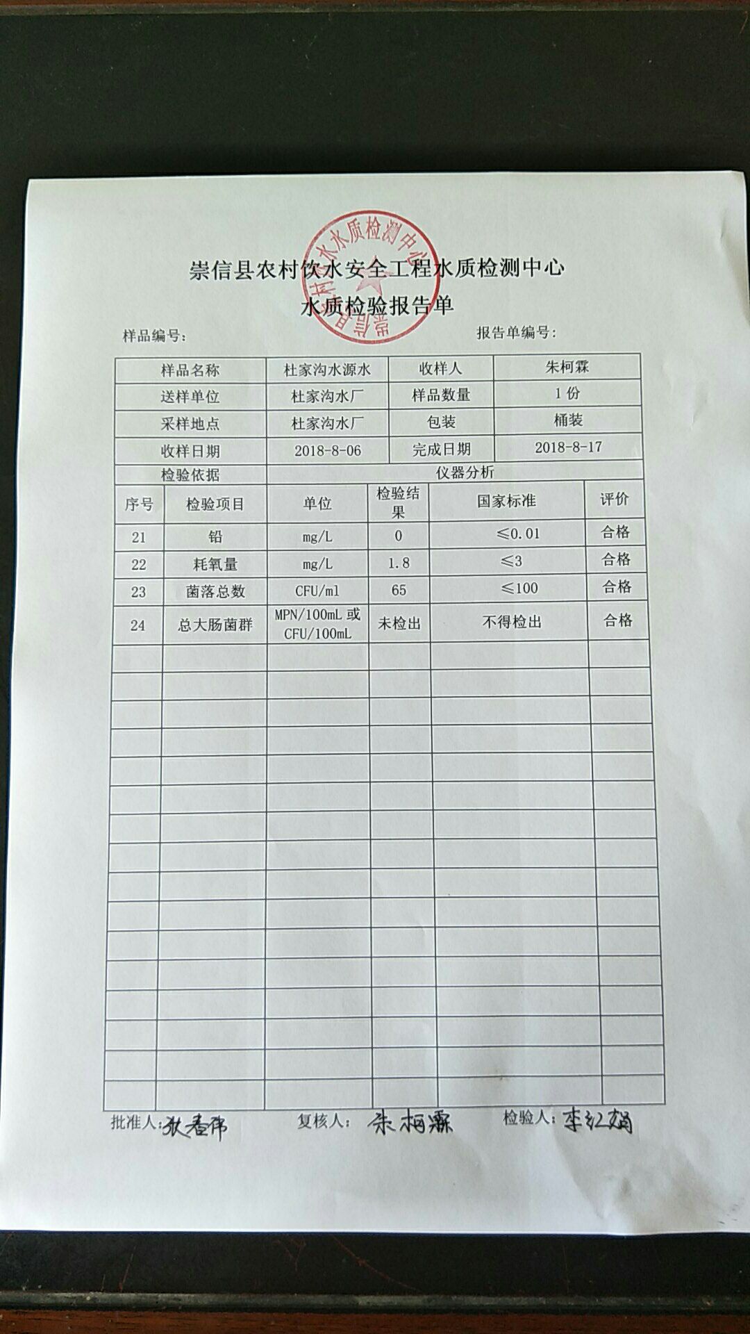 2018年8月份杜家沟水厂水质检测报告单 发文日期:2018-08-29 10:55 来源:崇信县水务局 作者:崇信水务局 编辑:崇信水务局 7D0F7BEB619E18287C7862AE4C766653 0F5F7C468F59794F7629EFBD1B4199BD 33AF7721A5E585E765CB6076A09F0DB1 779CF540C367A0F4E651EF298B83D16E 9105A25F013A43063D69680B4536C898 AF416E270D071EDC348350FA0A9968D5 扫一扫在手机打开当前页 上一篇: 2018年8月份散花沟水厂水质检测报告单 下一篇: 2018年8月份新窑水厂水质检测报告单