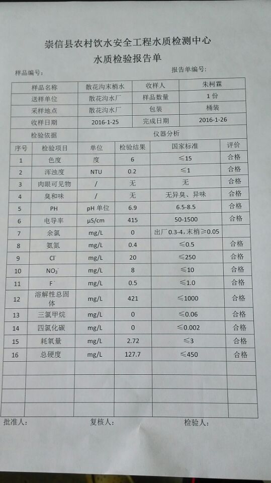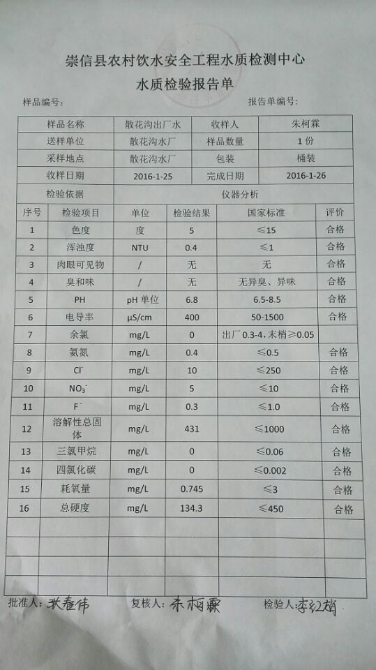 散花沟水厂1月份水质检测报告单 发文日期:2017-09-27 11:09 来源:崇信县水务局 作者:崇信水务局 编辑:崇信水务局 Cache_18efc6806d7303b6. Cache_31d8c390c2141f60. Cache_40a2168ba144df5e. Cache_42e4424b71b04606. Cache_-18b0fd6425f91e0c. Cache_-4265d3f9fe87ad33. 扫一扫在手机打开当前页 上一篇: 散花沟水厂2月份水质检测报告单 下一篇: 新窑水厂12月份水质检测报告单