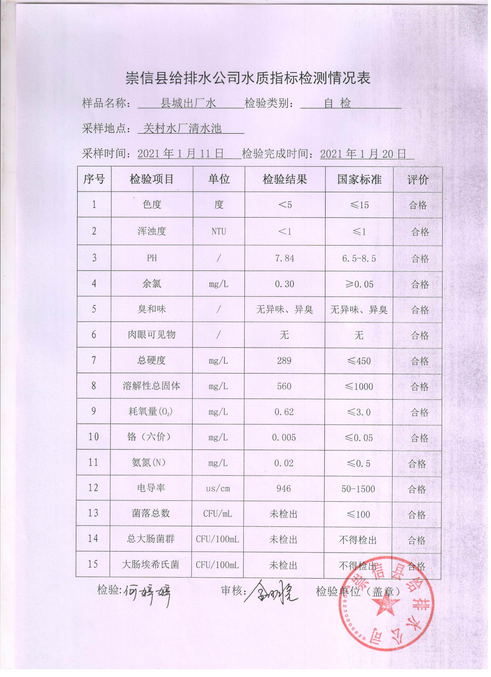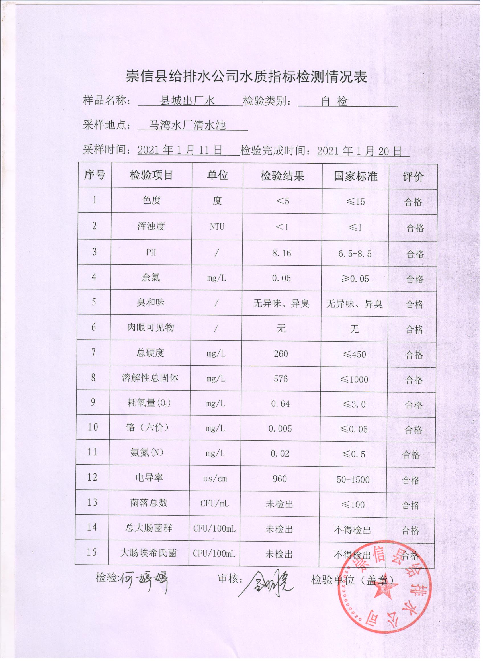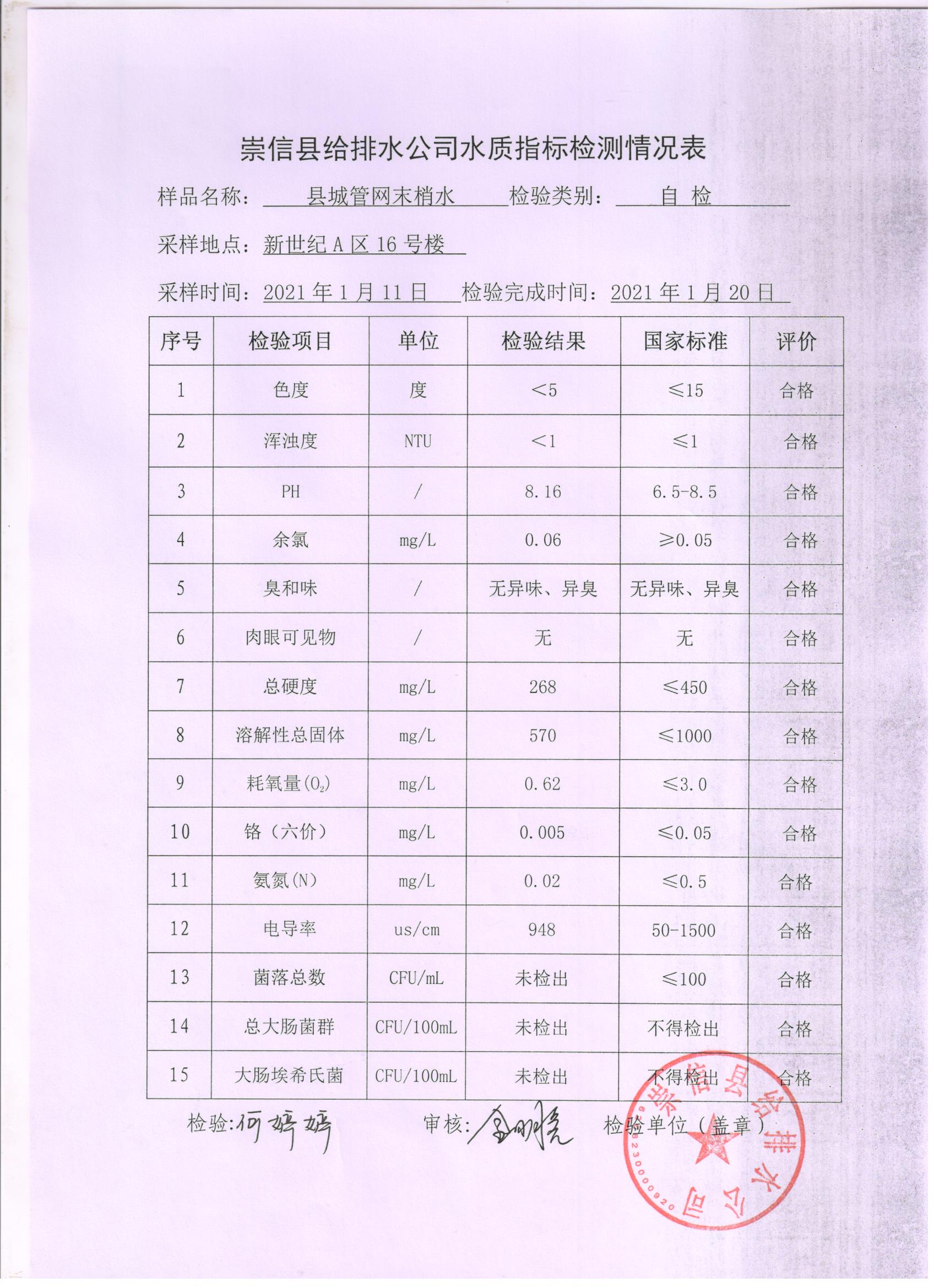 2021年1月份水质化验报告 发文日期:2021-02-19 00:00 来源:崇信县住房和城乡建设局 作者:崇信住建局 编辑:崇信住建局 01 02 03 04 05 扫一扫在手机打开当前页 上一篇: 城区居民饮水安全告知书 下一篇: 2020年12月水质化验报告单