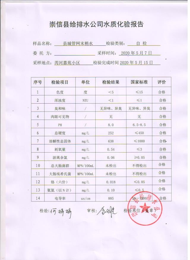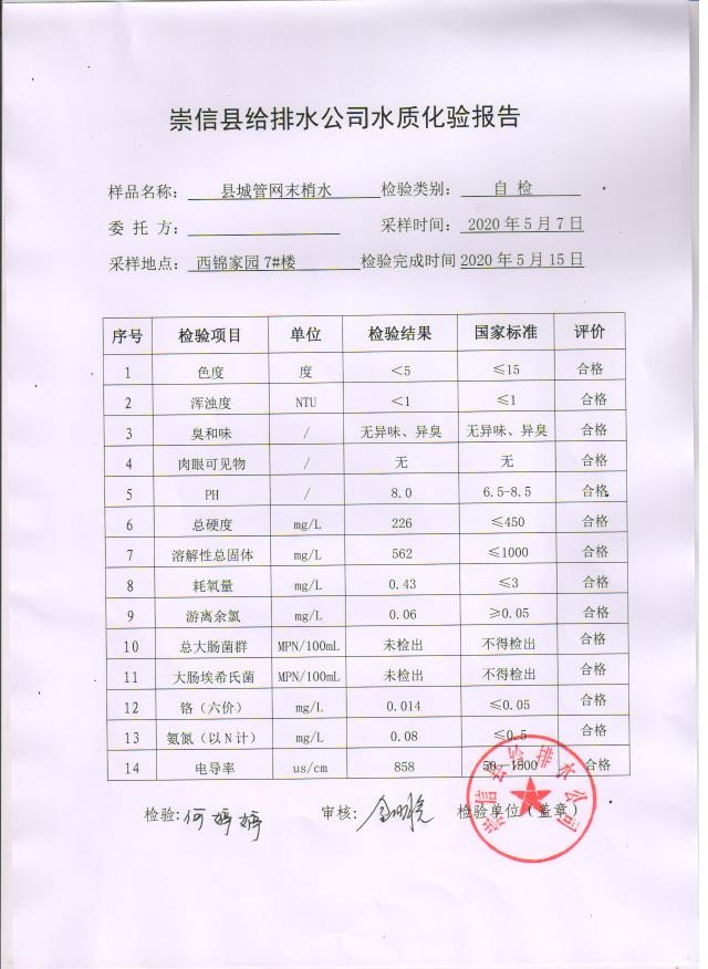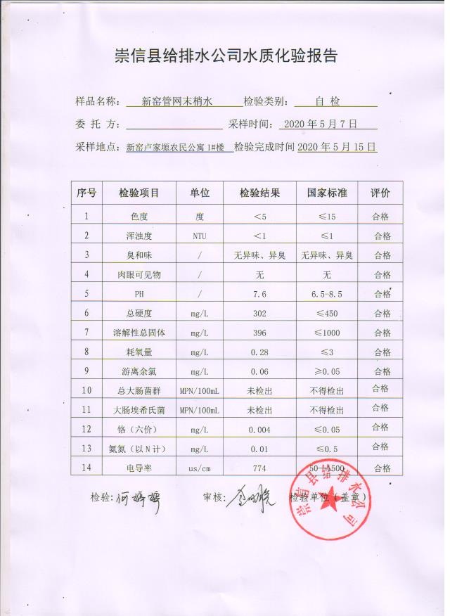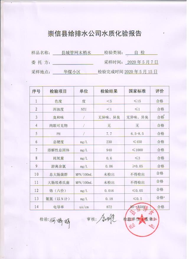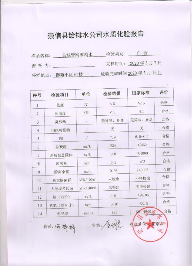 2020年5月水质化验报告 发文日期:2020-05-19 00:00 来源:崇信县住房和城乡建设局 作者:崇信住建局 编辑:崇信住建局 01 02 03 04 05 扫一扫在手机打开当前页 上一篇: 2020年上半年崇信县县级集中式 生活饮用水地下水源地水质状况 下一篇: 2020年4月份水质化验报告单