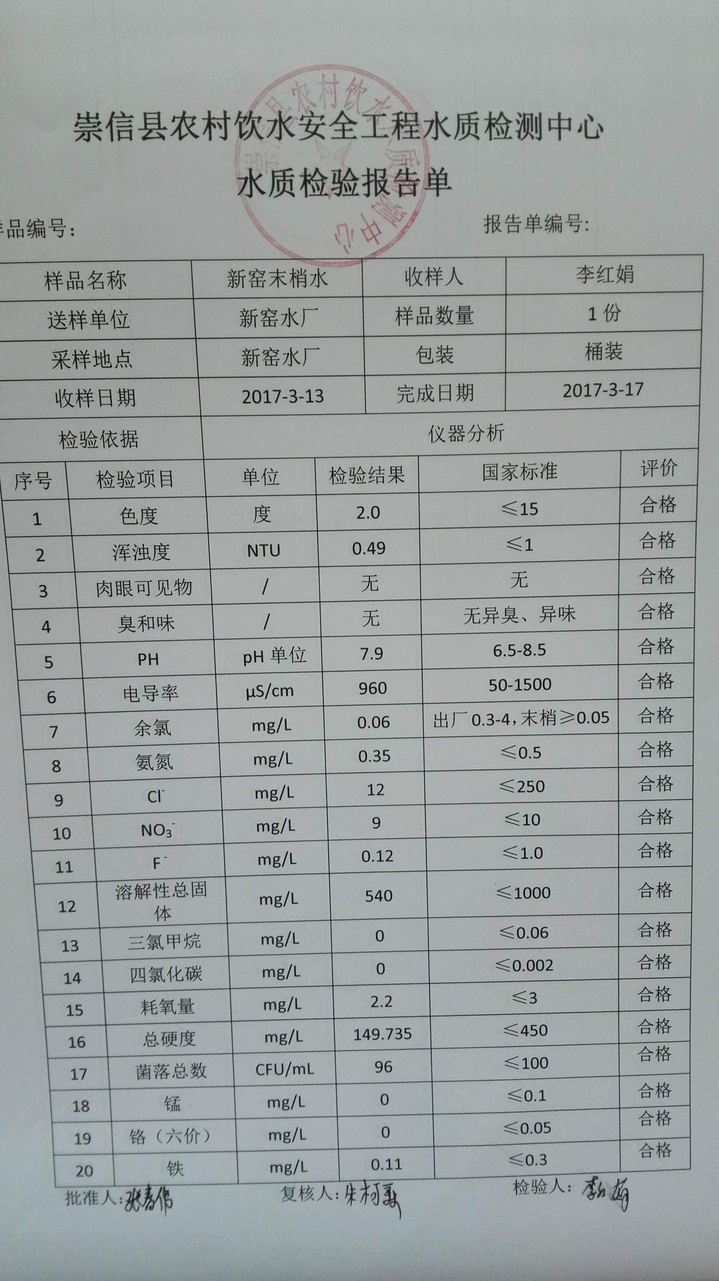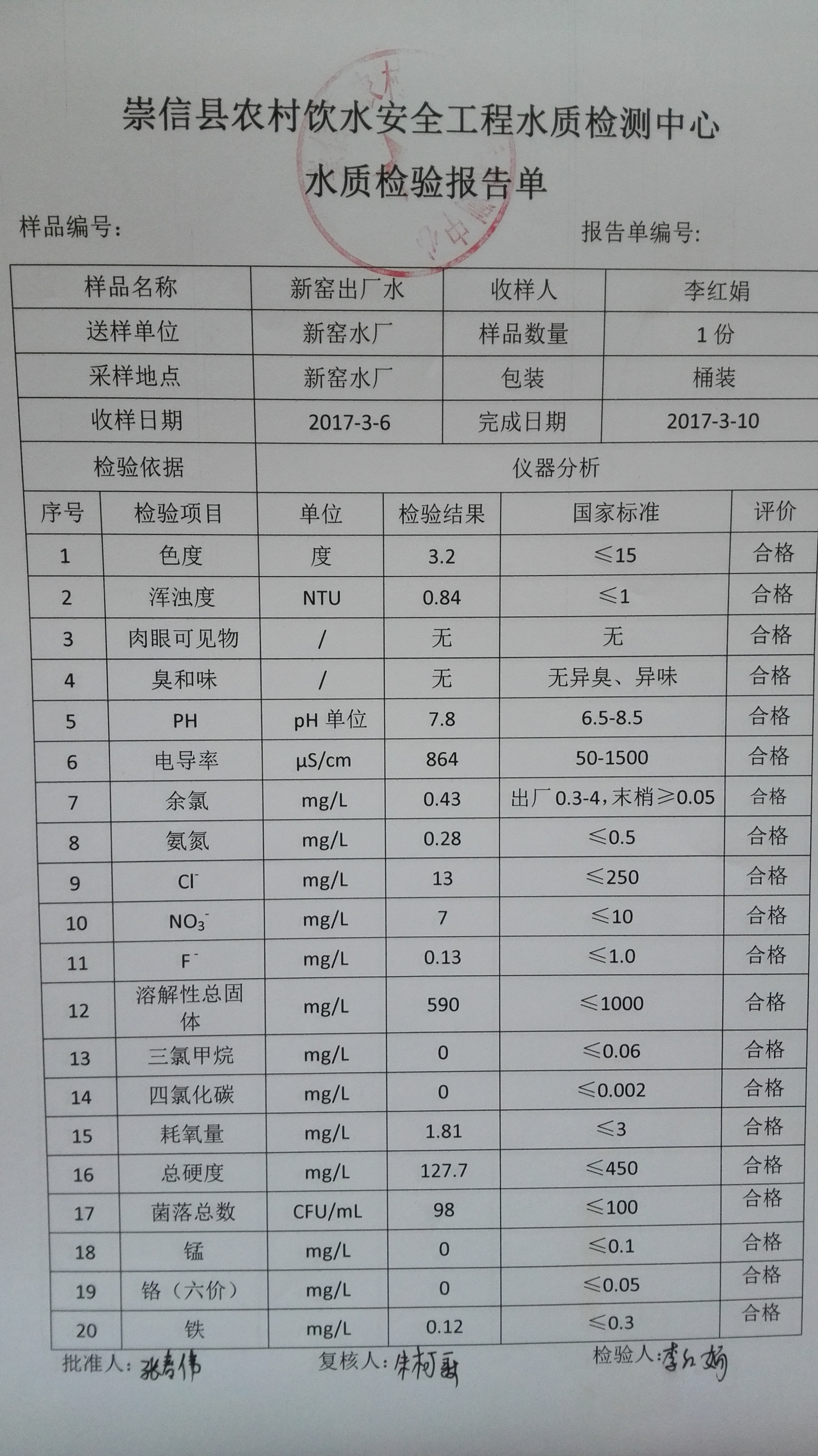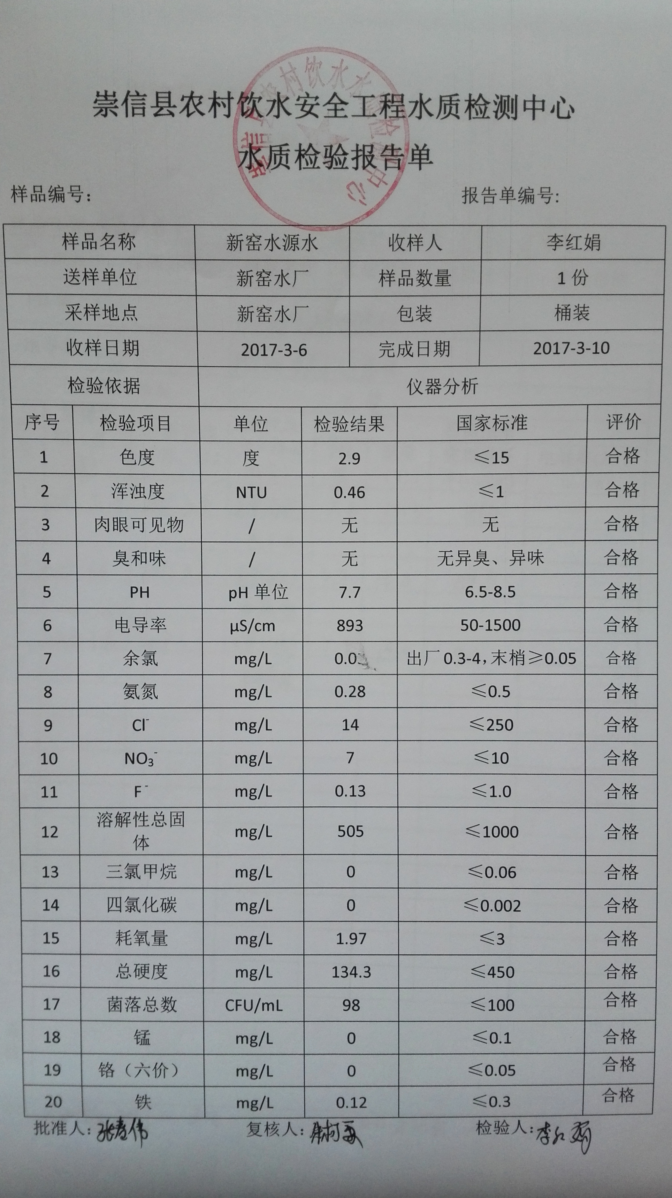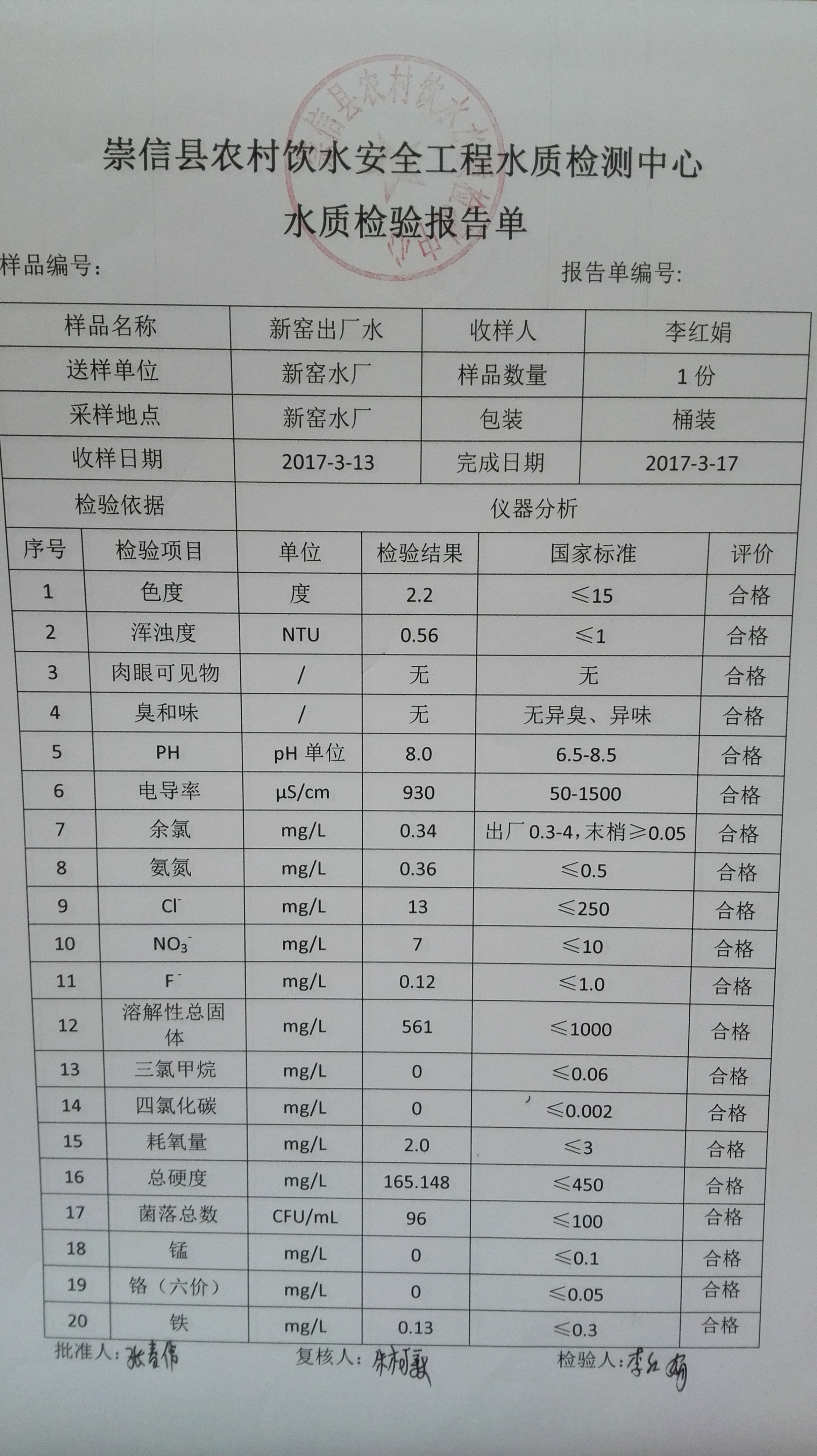 2017年3月份新窑水厂水质检测报告单 发文日期:2017-09-28 11:19 来源:崇信县水务局 作者:崇信水务局 编辑:崇信水务局 1506565362004 1506565398393 1506565542238 1506565583187 1506565605051 1506565638271 1506565682652 1506565736391 1506565768845 1506565830912 1506565847993 1506565925536 扫一扫在手机打开当前页 上一篇: 2017年2月份新窑水厂水质检测报告单 下一篇: 新窑出厂水8月份水质化验报告单