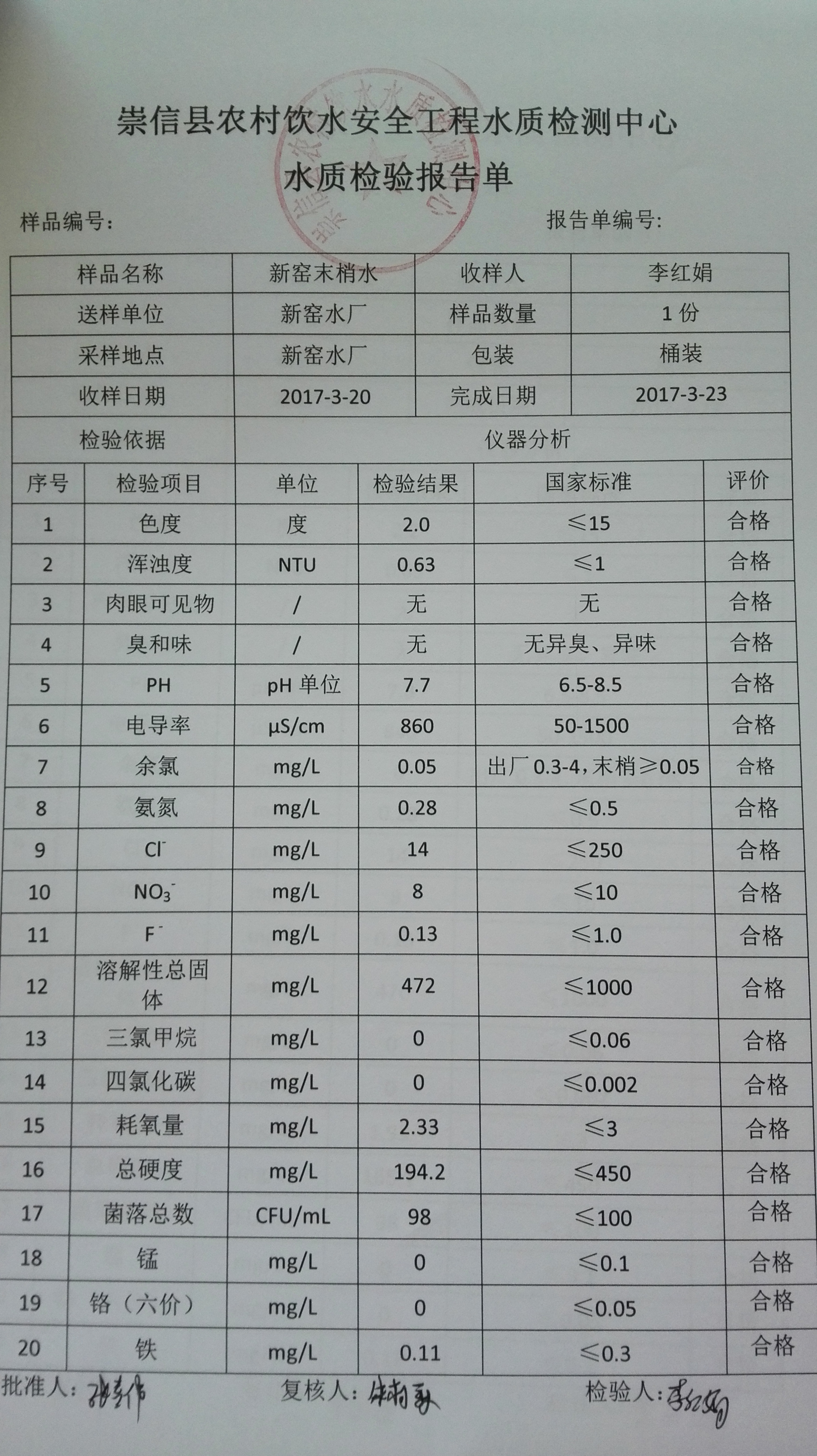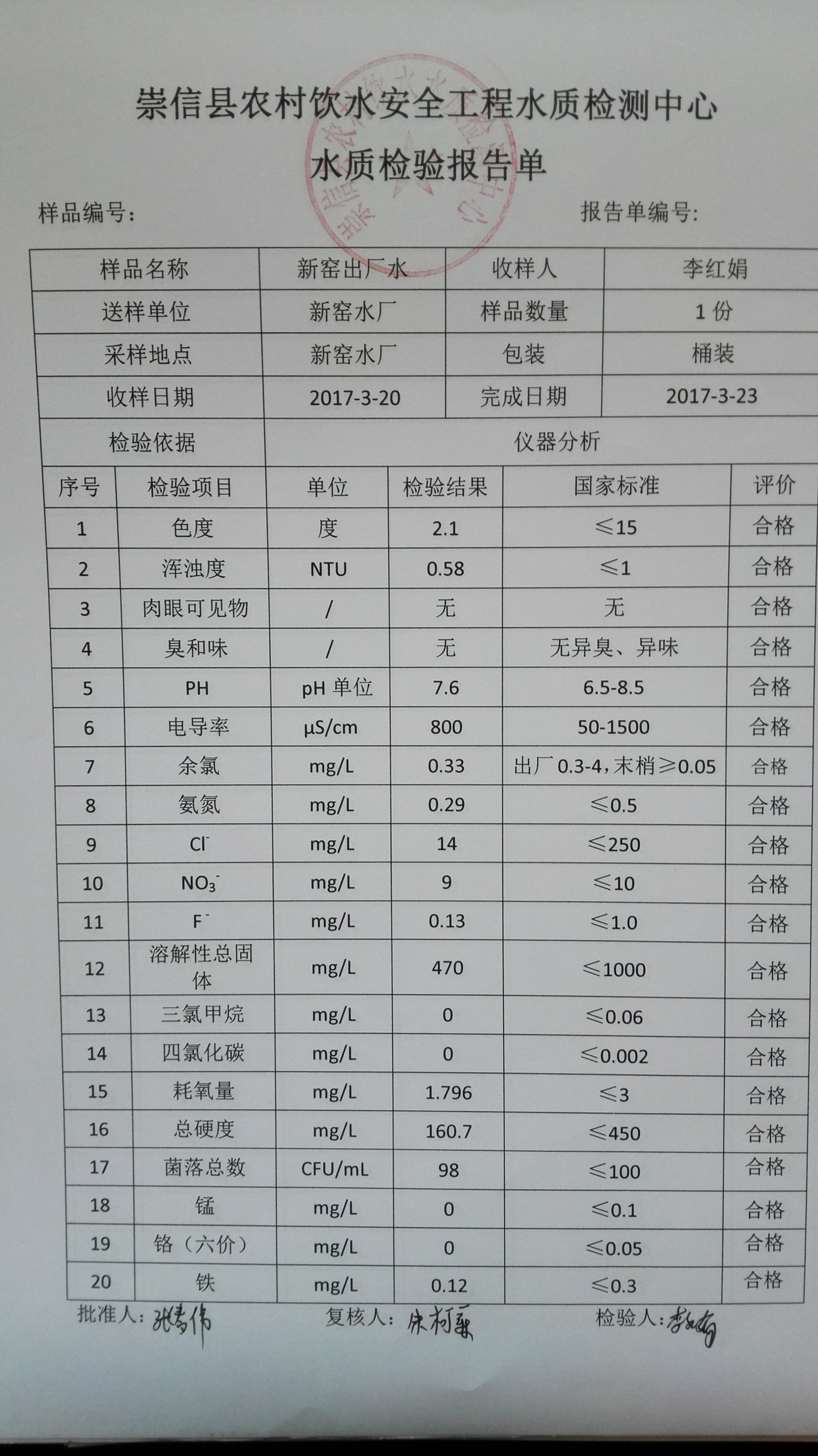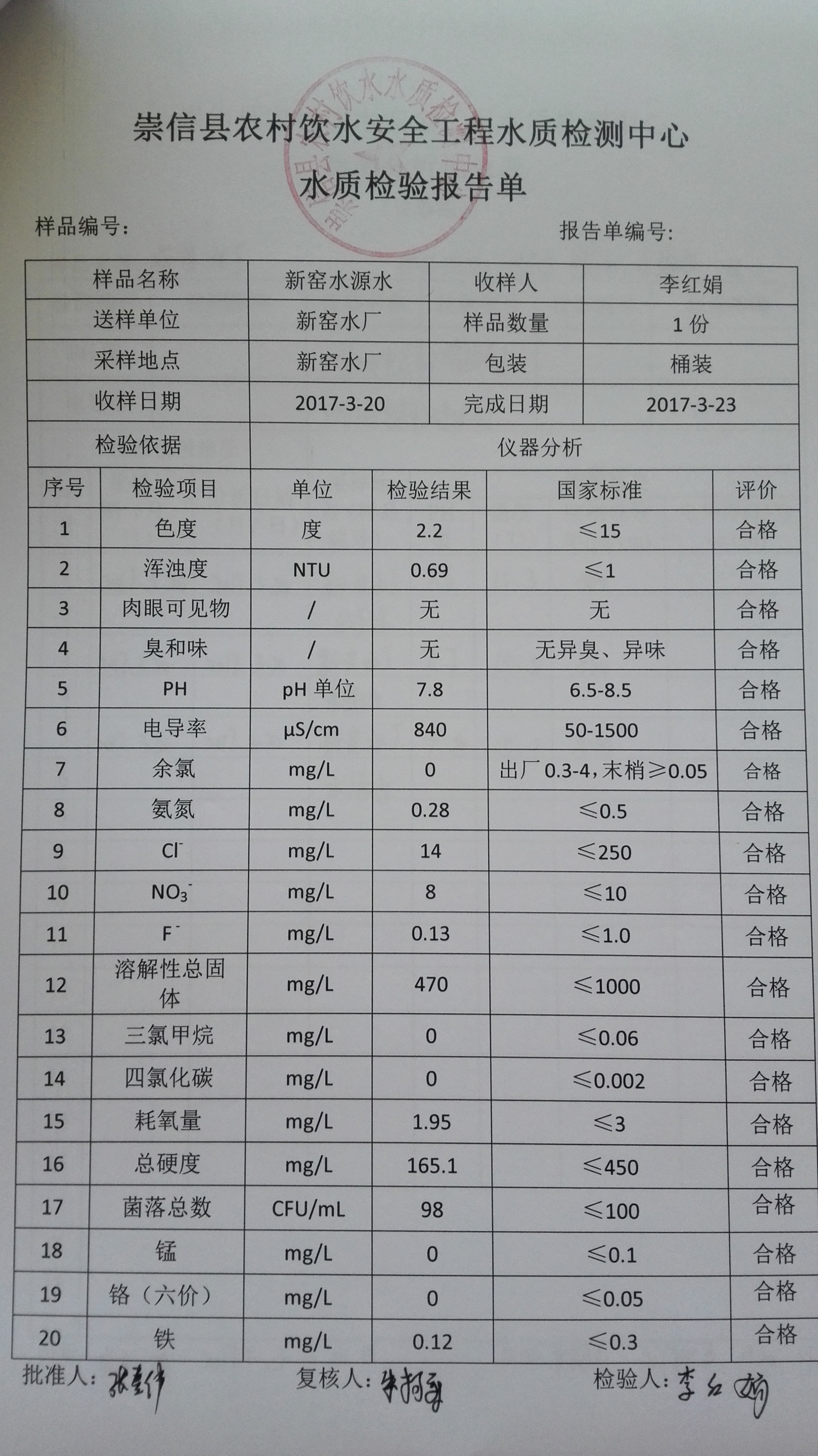 2017年3月份新窑水厂水质检测报告单 发文日期:2017-09-28 11:19 来源:崇信县水务局 作者:崇信水务局 编辑:崇信水务局 1506565362004 1506565398393 1506565542238 1506565583187 1506565605051 1506565638271 1506565682652 1506565736391 1506565768845 1506565830912 1506565847993 1506565925536 扫一扫在手机打开当前页 上一篇: 2017年2月份新窑水厂水质检测报告单 下一篇: 新窑出厂水8月份水质化验报告单