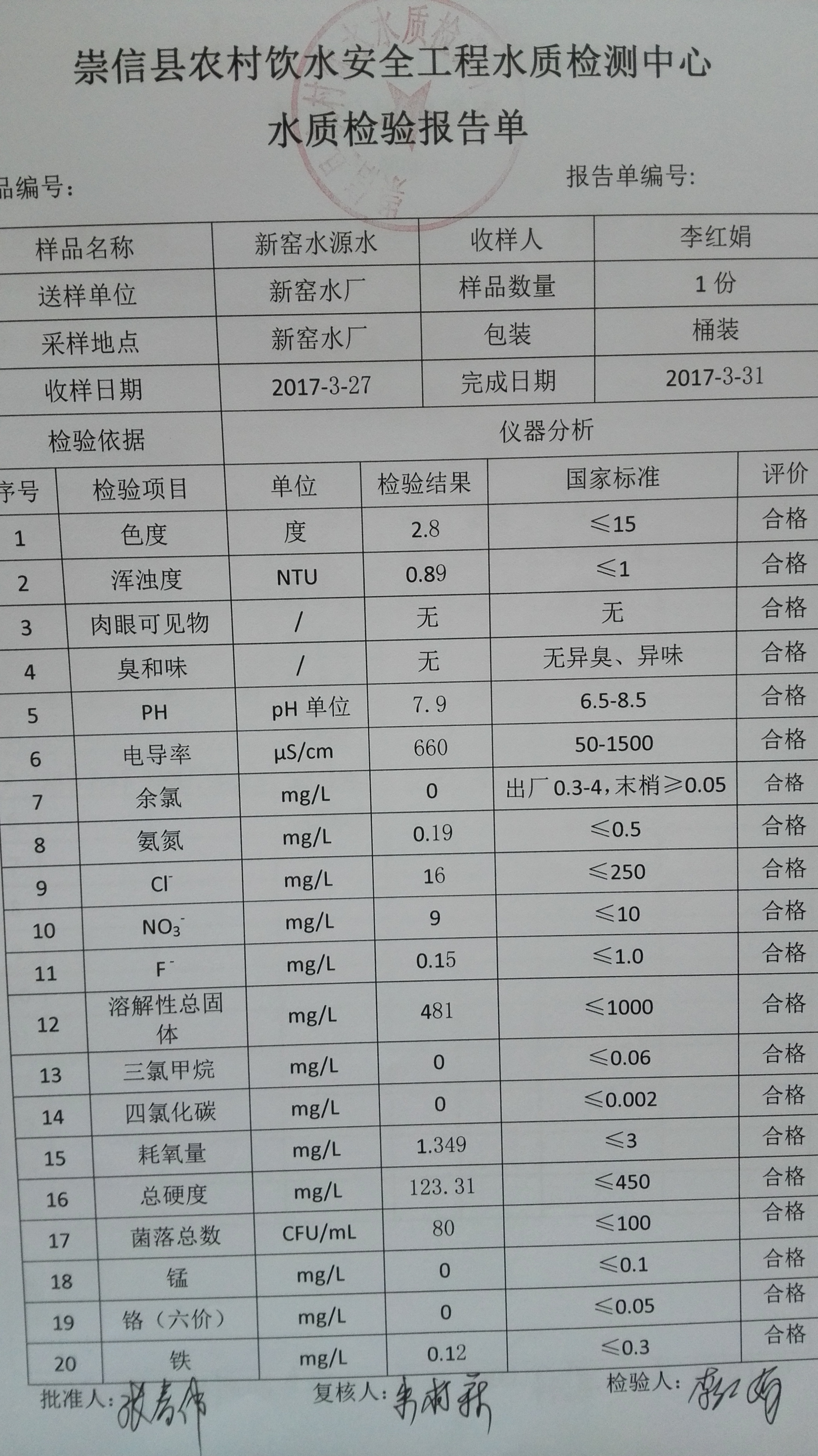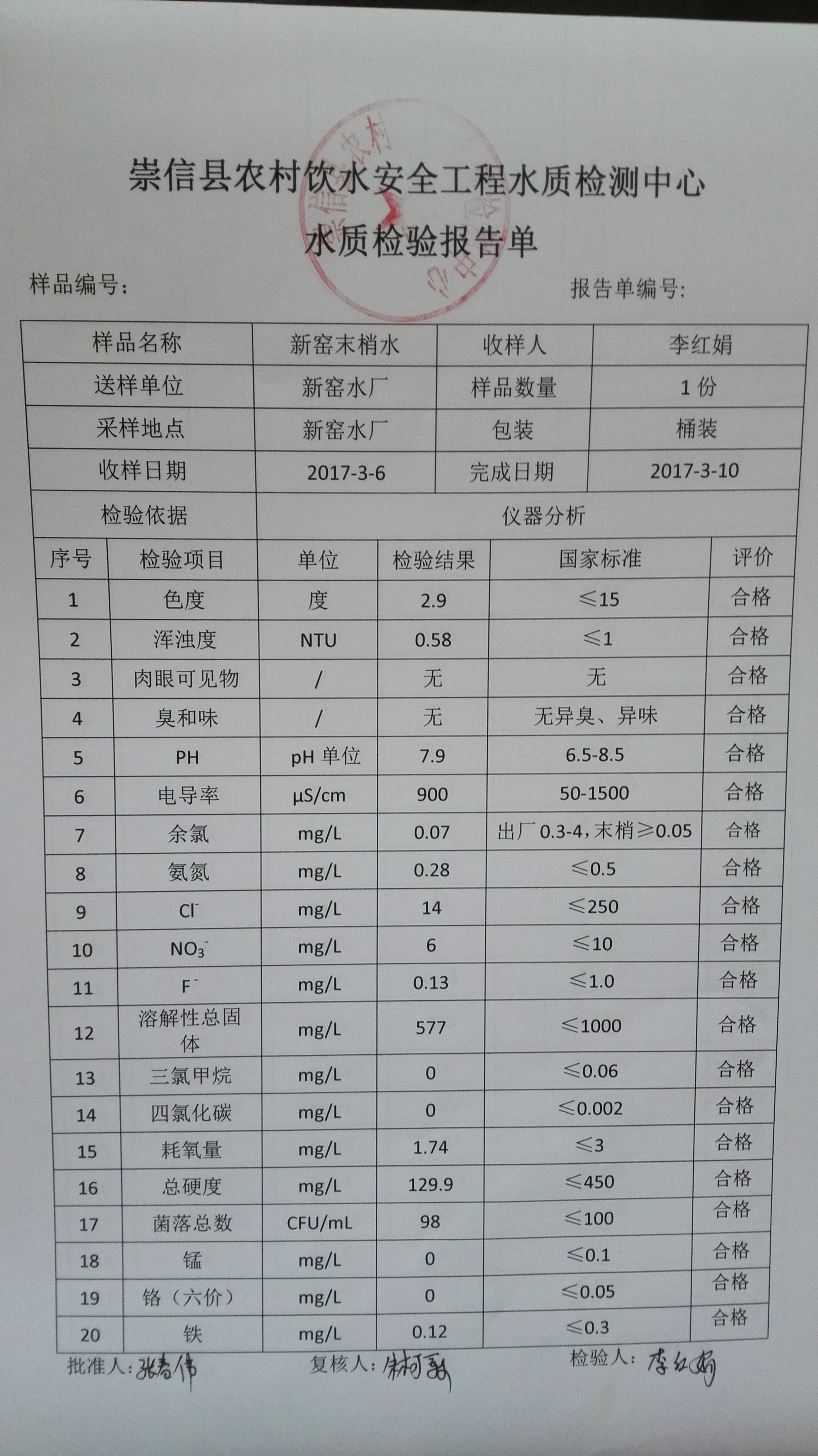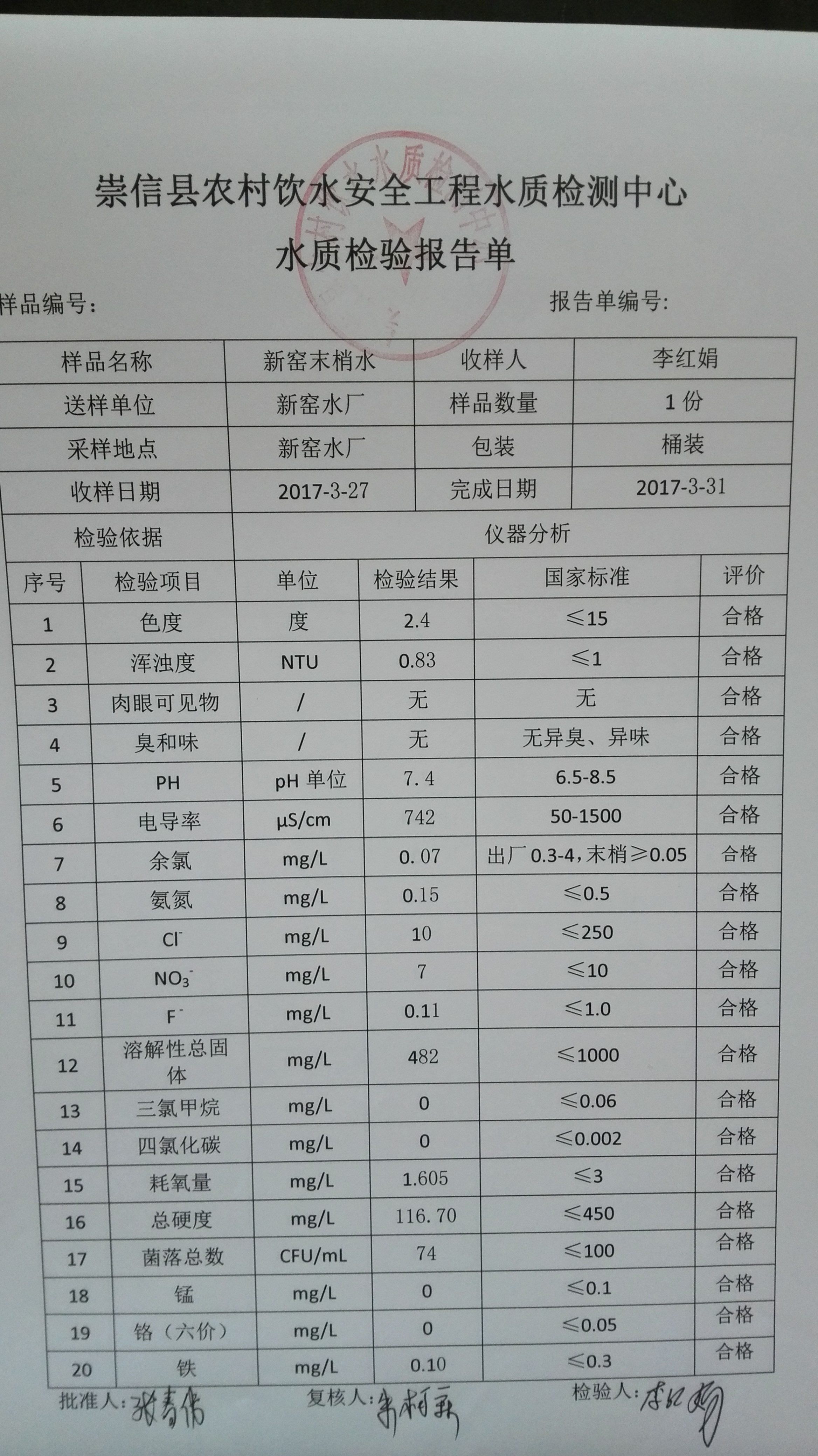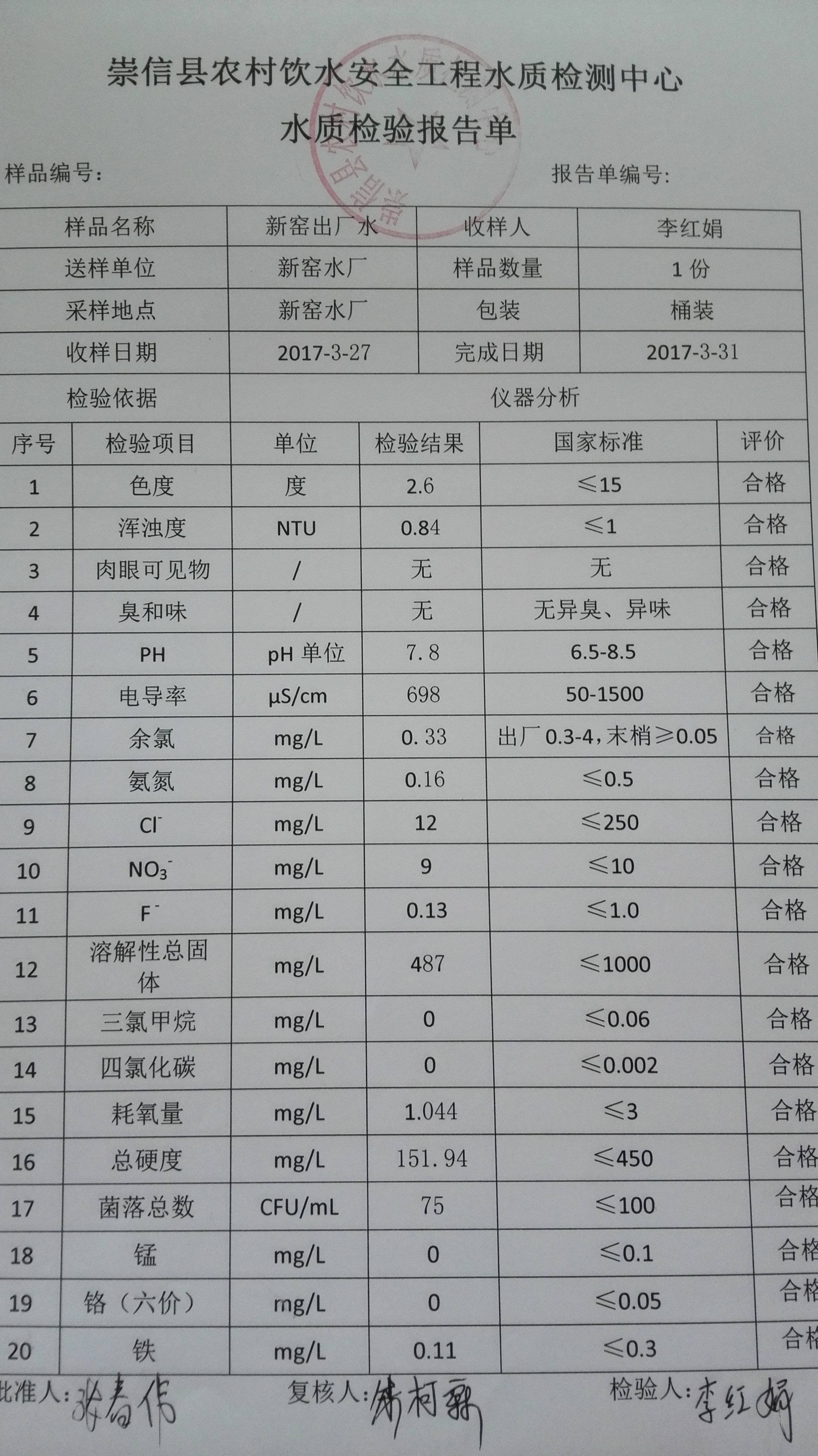 2017年3月份新窑水厂水质检测报告单 发文日期:2017-09-28 11:19 来源:崇信县水务局 作者:崇信水务局 编辑:崇信水务局 1506565362004 1506565398393 1506565542238 1506565583187 1506565605051 1506565638271 1506565682652 1506565736391 1506565768845 1506565830912 1506565847993 1506565925536 扫一扫在手机打开当前页 上一篇: 2017年2月份新窑水厂水质检测报告单 下一篇: 新窑出厂水8月份水质化验报告单