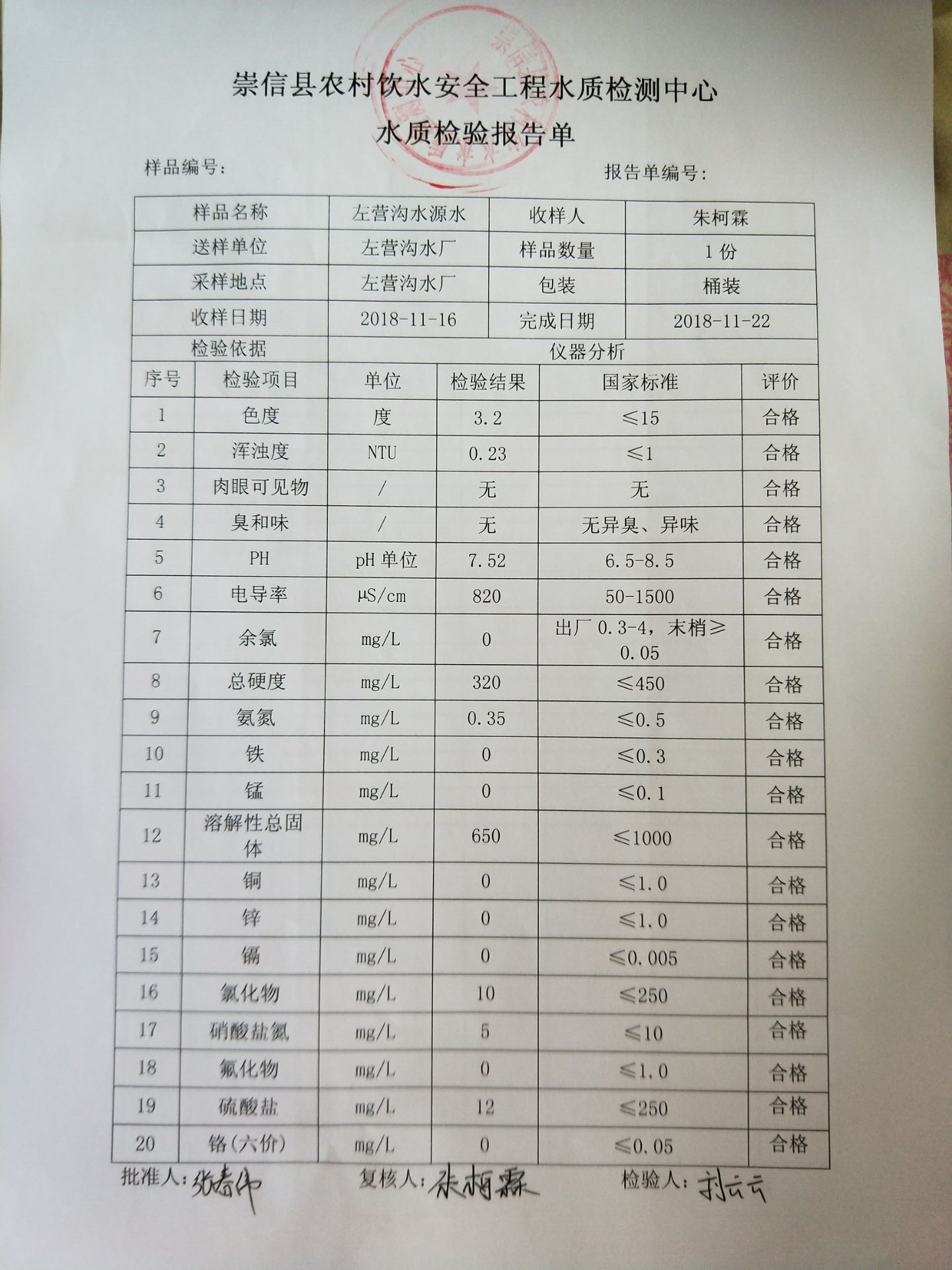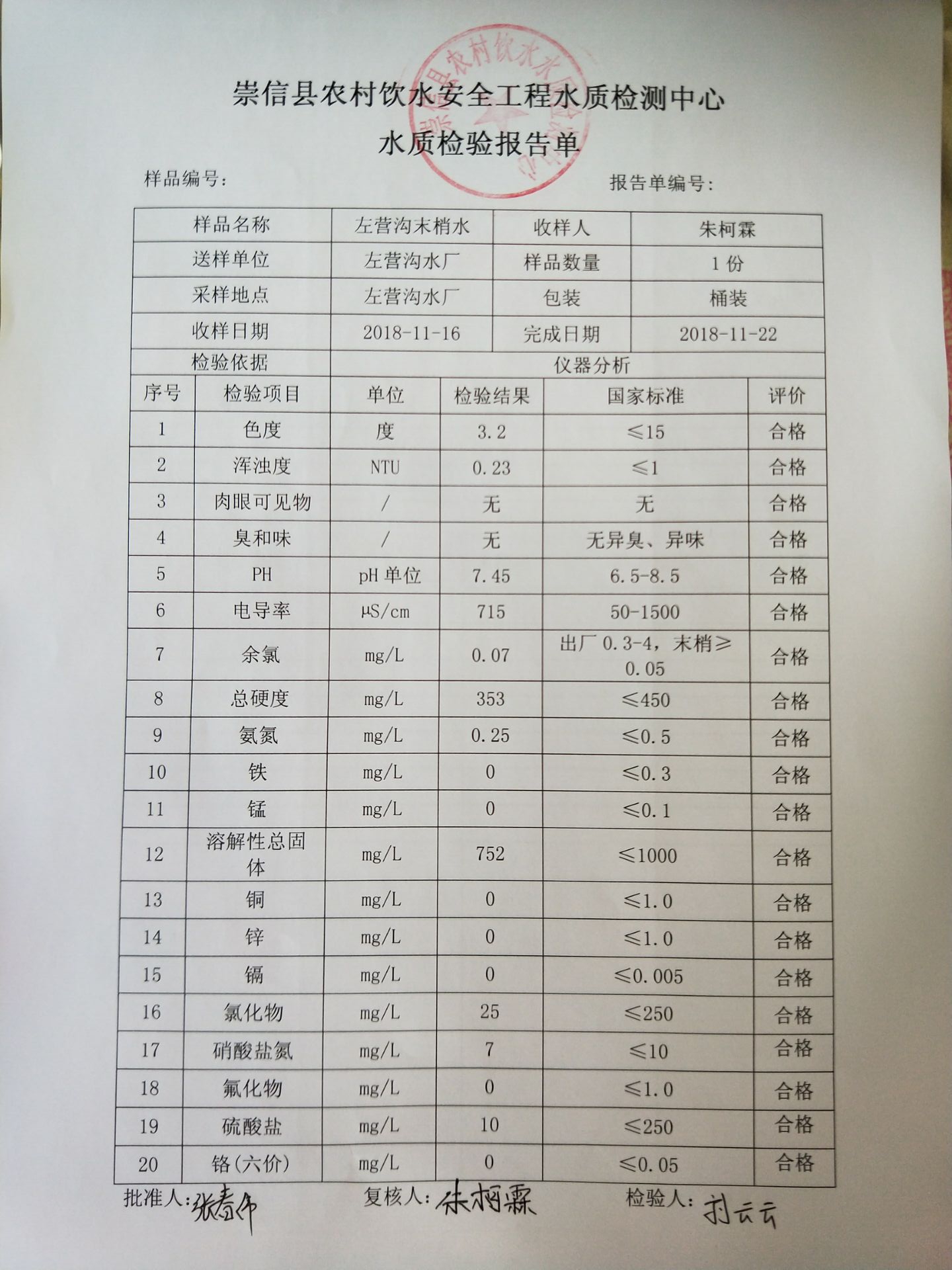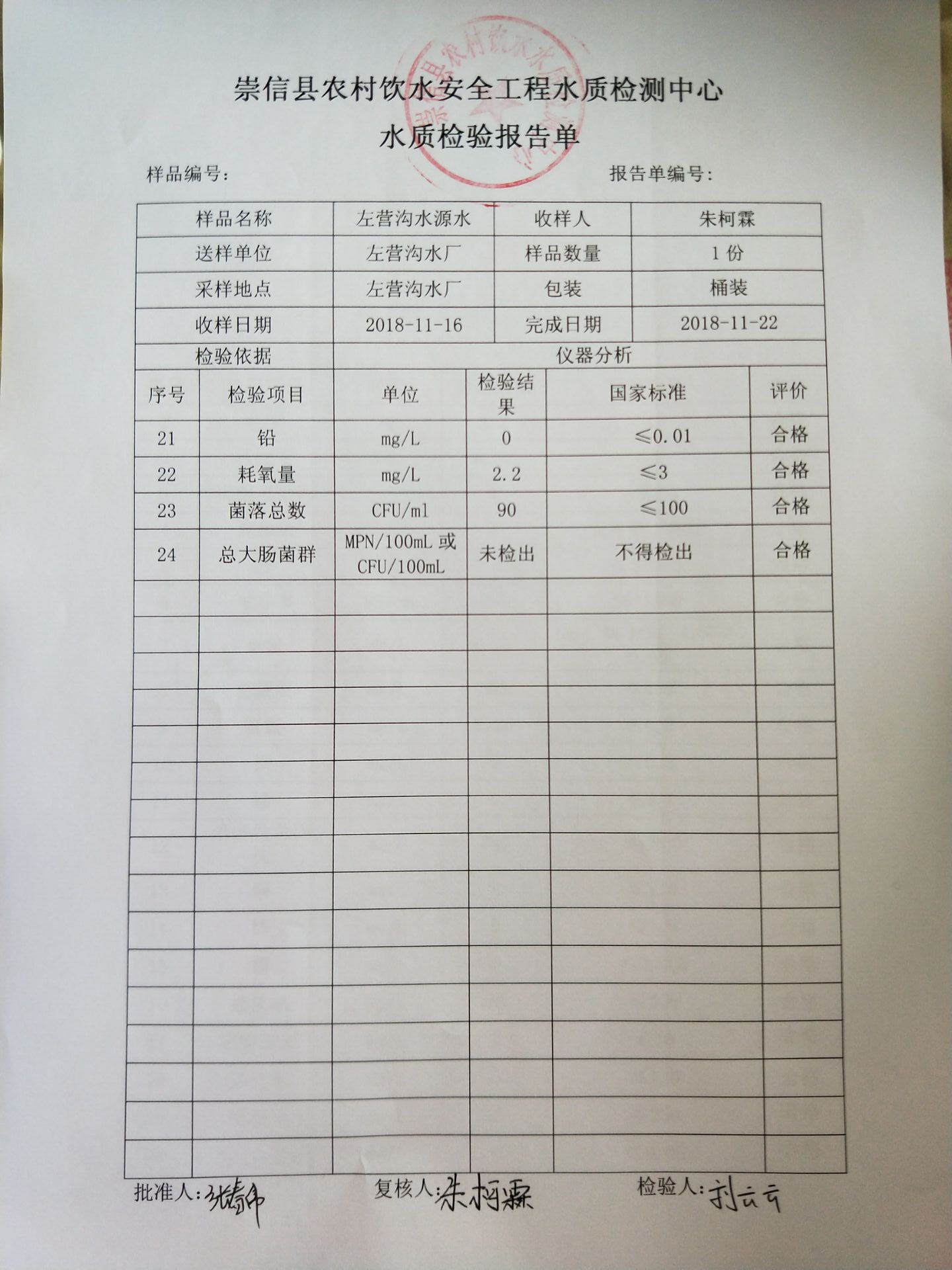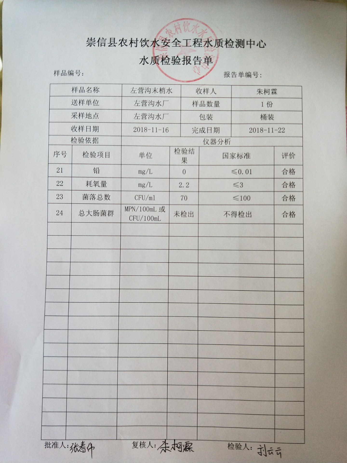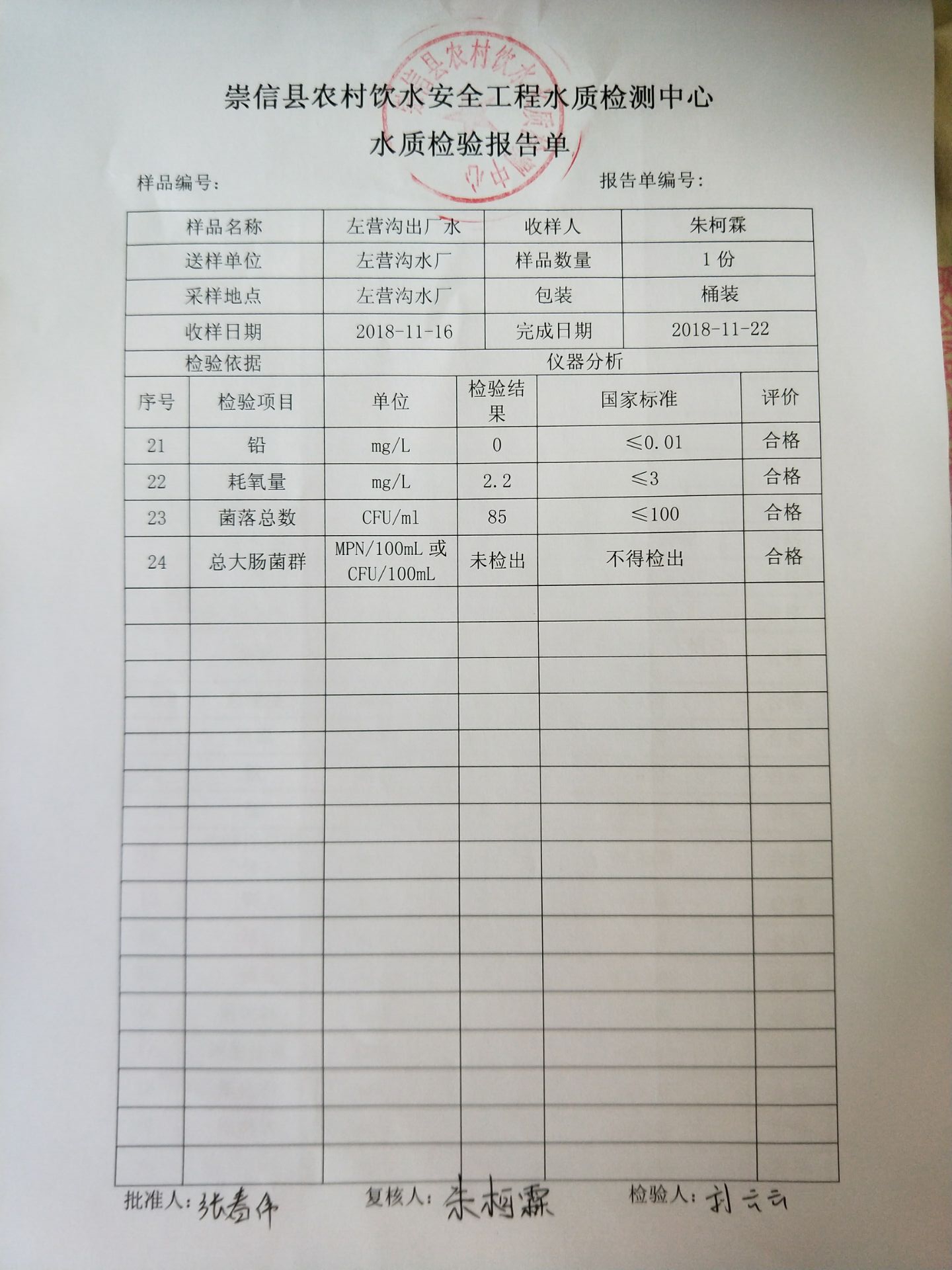 2018年11月份左营沟水厂水质检测报告单 发文日期:2018-12-03 16:03 来源:崇信县水务局 作者:崇信水务局 编辑:崇信水务局 09A75E2E3692EEB73C7AAC1CBE07B24A 672F0D824B9DC7C2551B10A70C31A75D 7435AFFE6BD30B36E614804285E7D6B8 603989D648B58495B14B6026715489EA A83336A6162A7A61D03C6315A9BFD208 B3E0AAF2EEF4B6297C8C4F1B5CBF9540 扫一扫在手机打开当前页 上一篇: 2018年11月份杜家沟水厂水质检测报告单 下一篇: 关于对崇信县农村饮水安全工程管理责任单位及责任人的公示