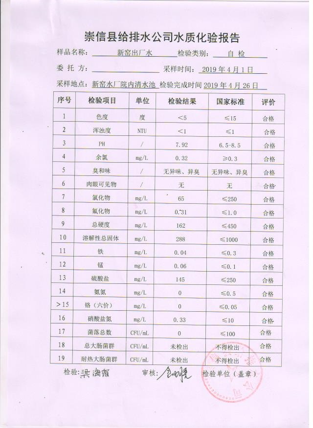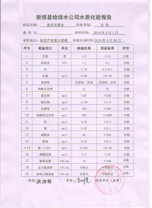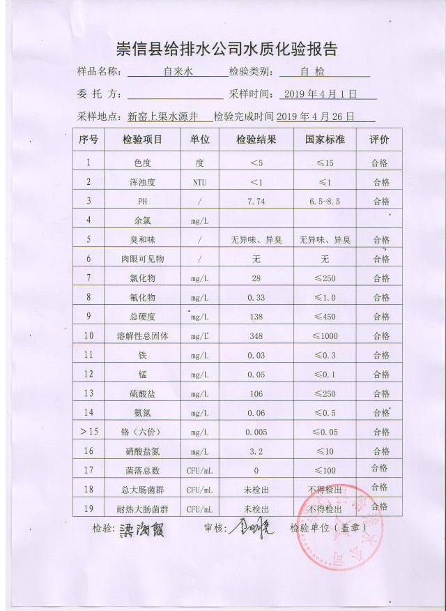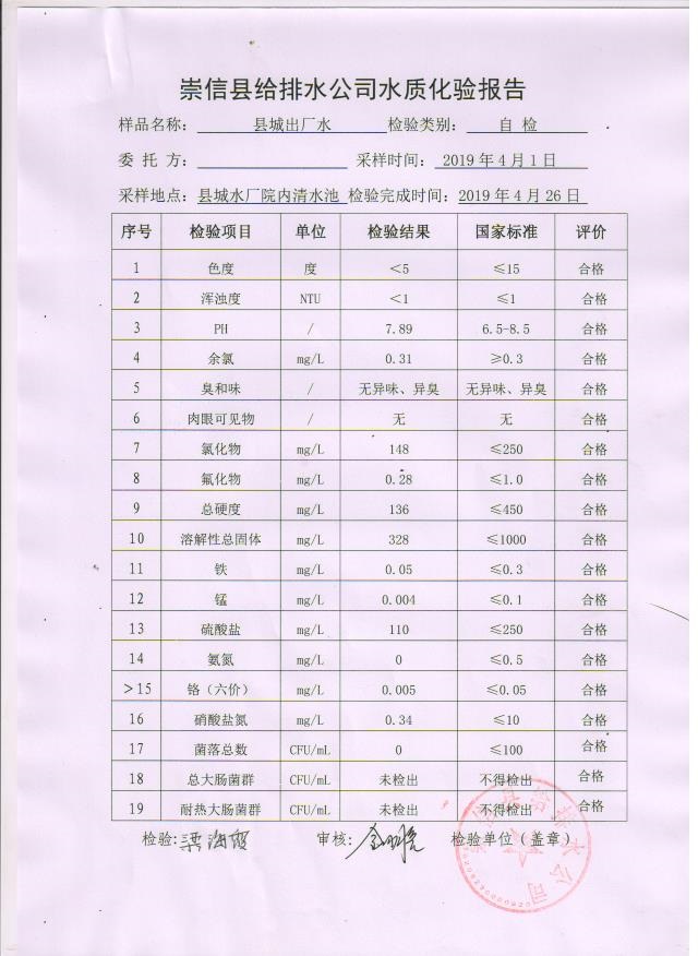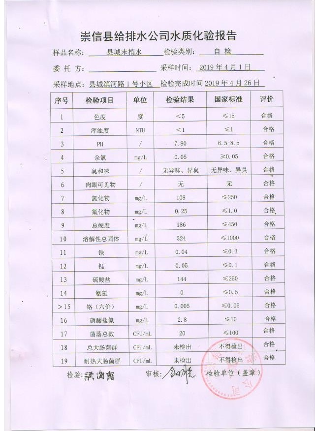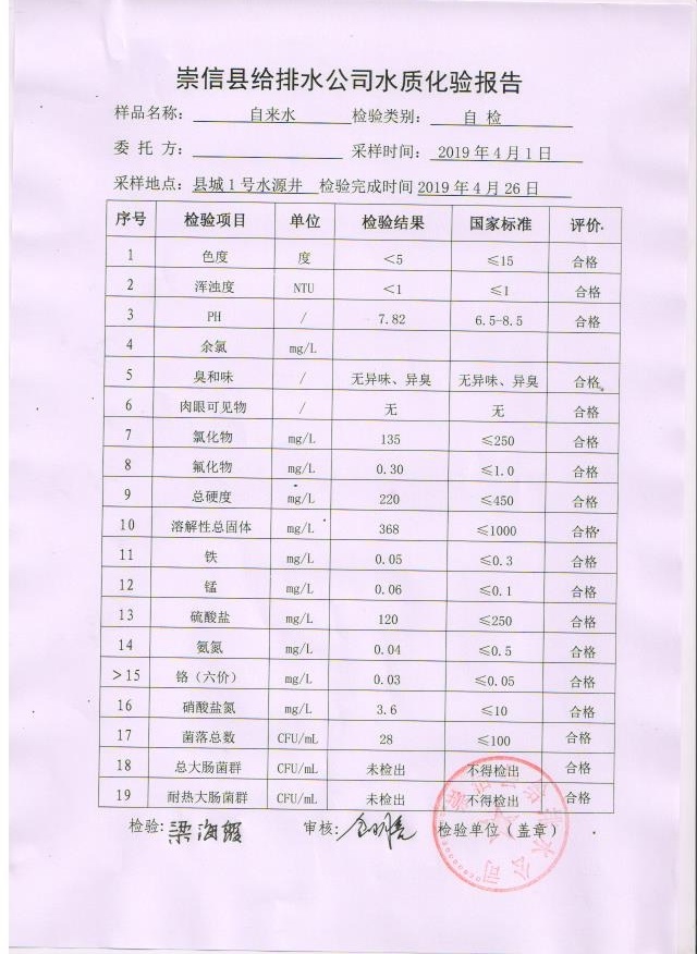2019年4月份水质化验报告单 发文日期:2019-06-04 00:00 来源:崇信县住房和城乡建设局 作者:崇信住建局 编辑:崇信住建局 01 02 03 04 05 06 扫一扫在手机打开当前页 上一篇: 2019年5月份水质化验报告单 下一篇: 2019年5月份散花沟水厂水质检测报告