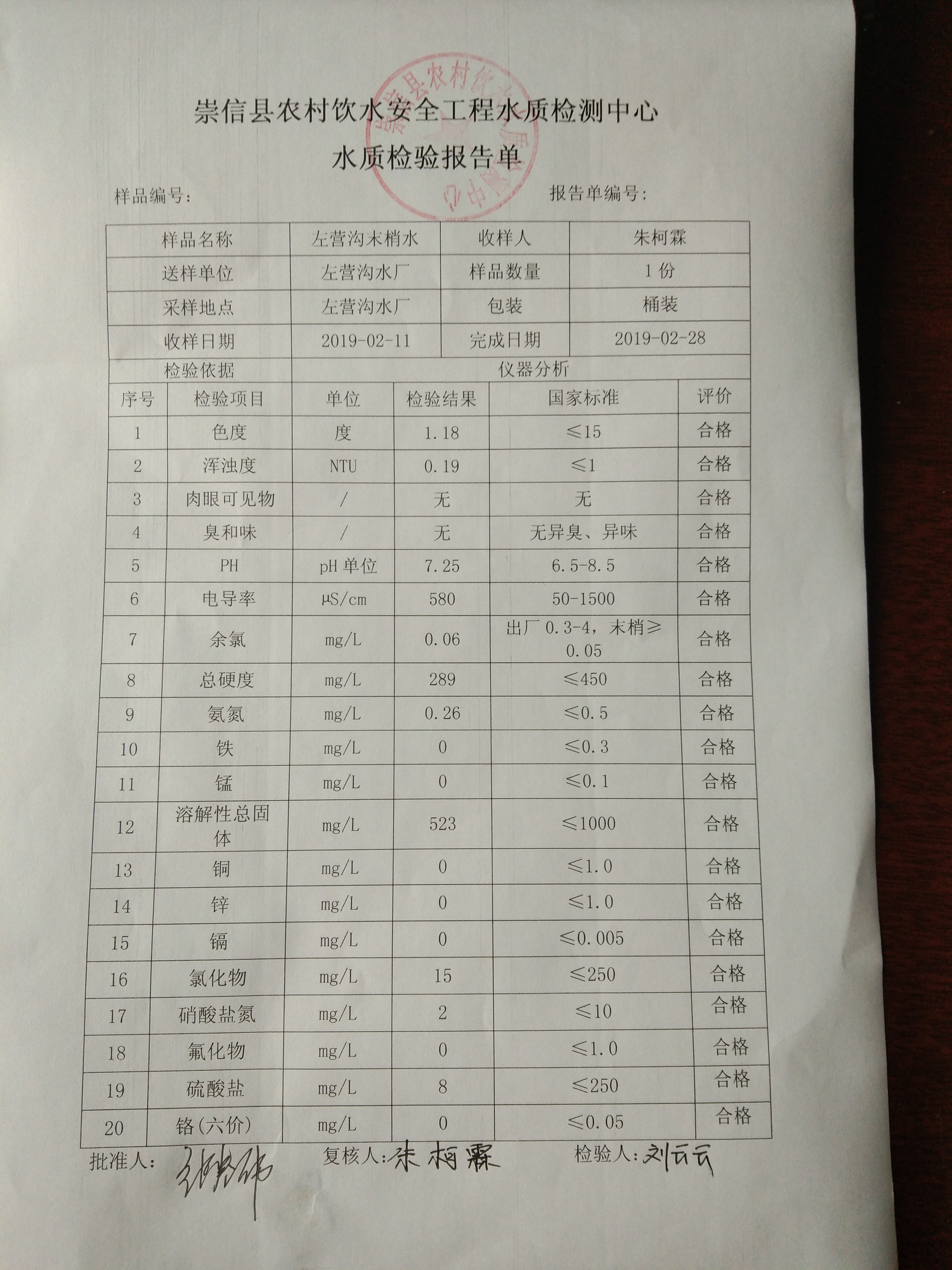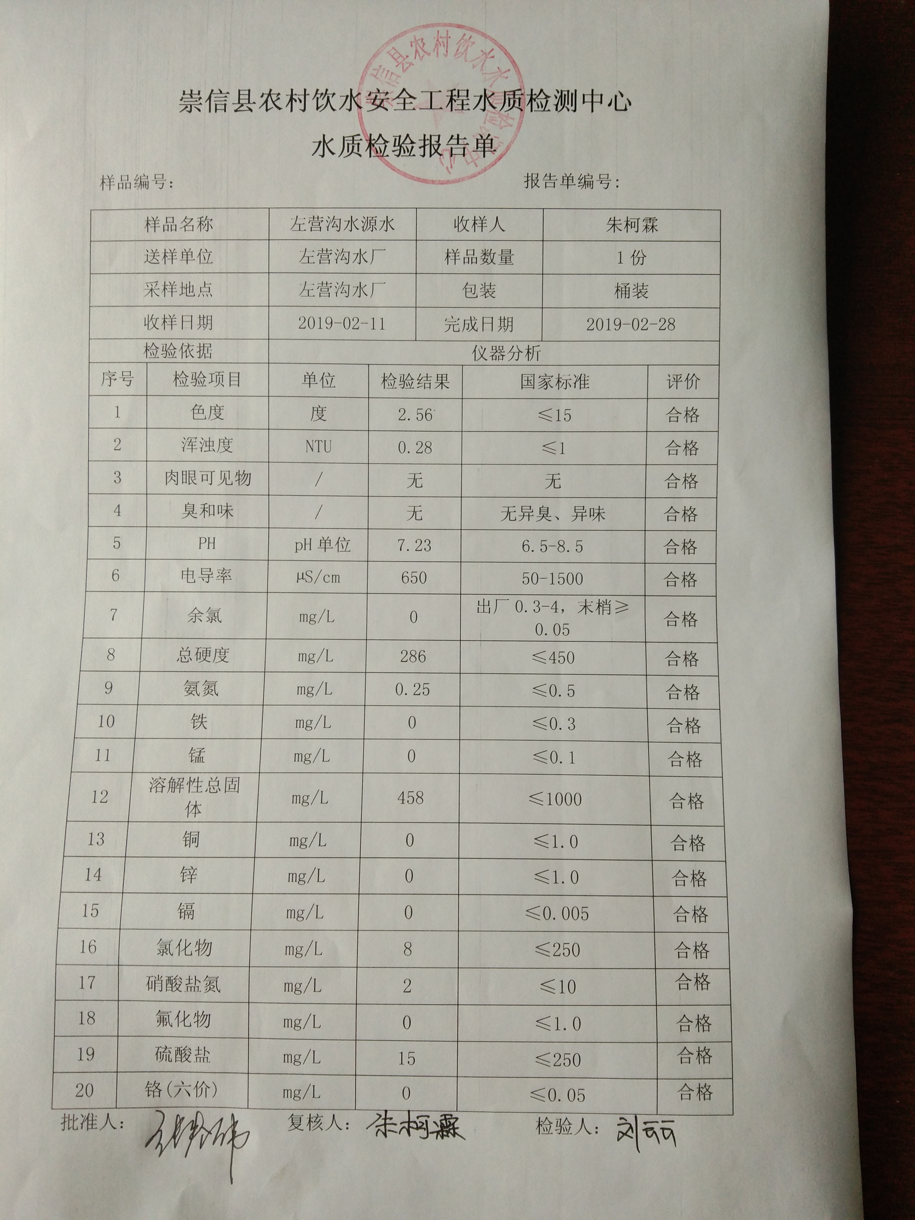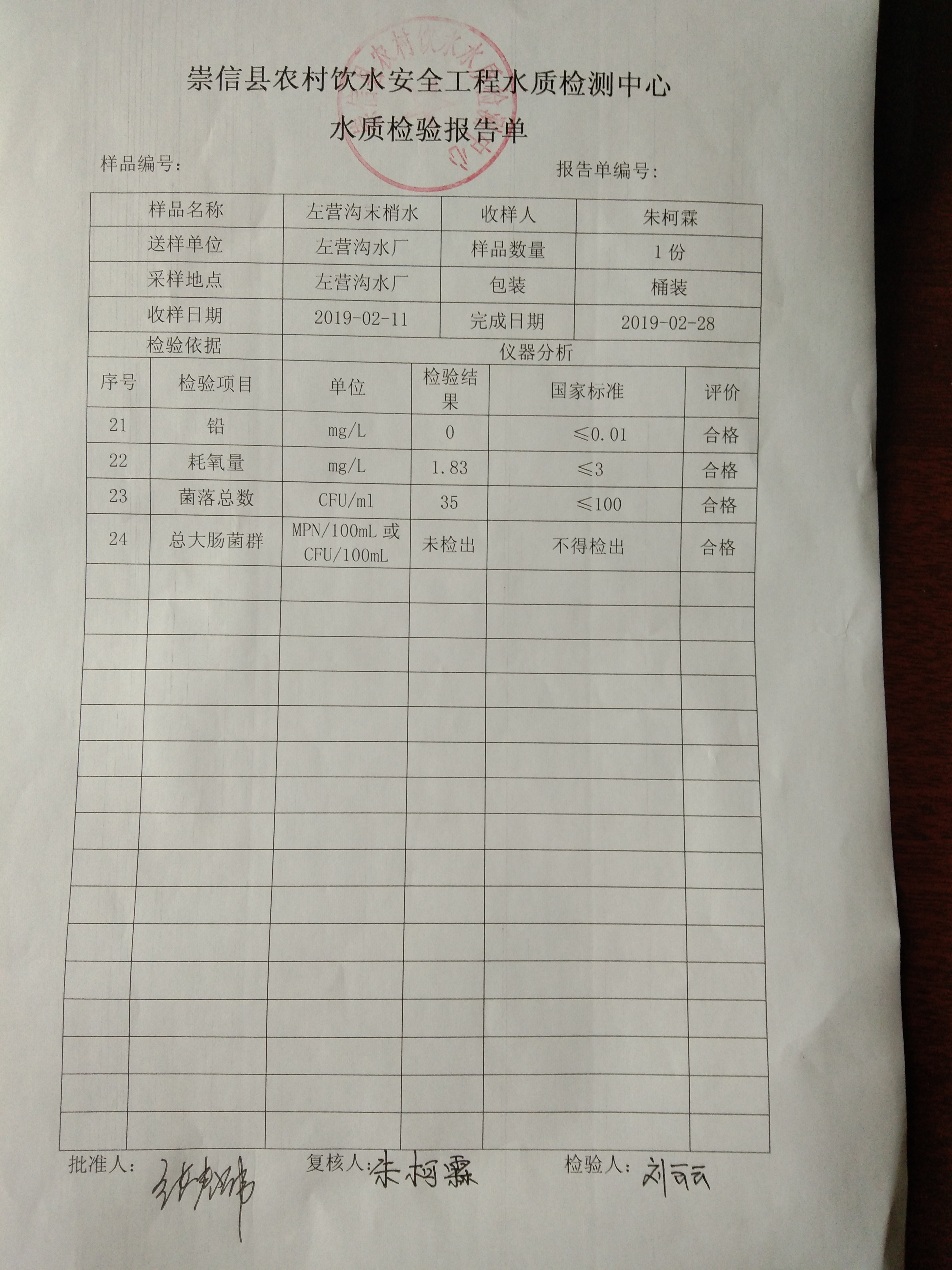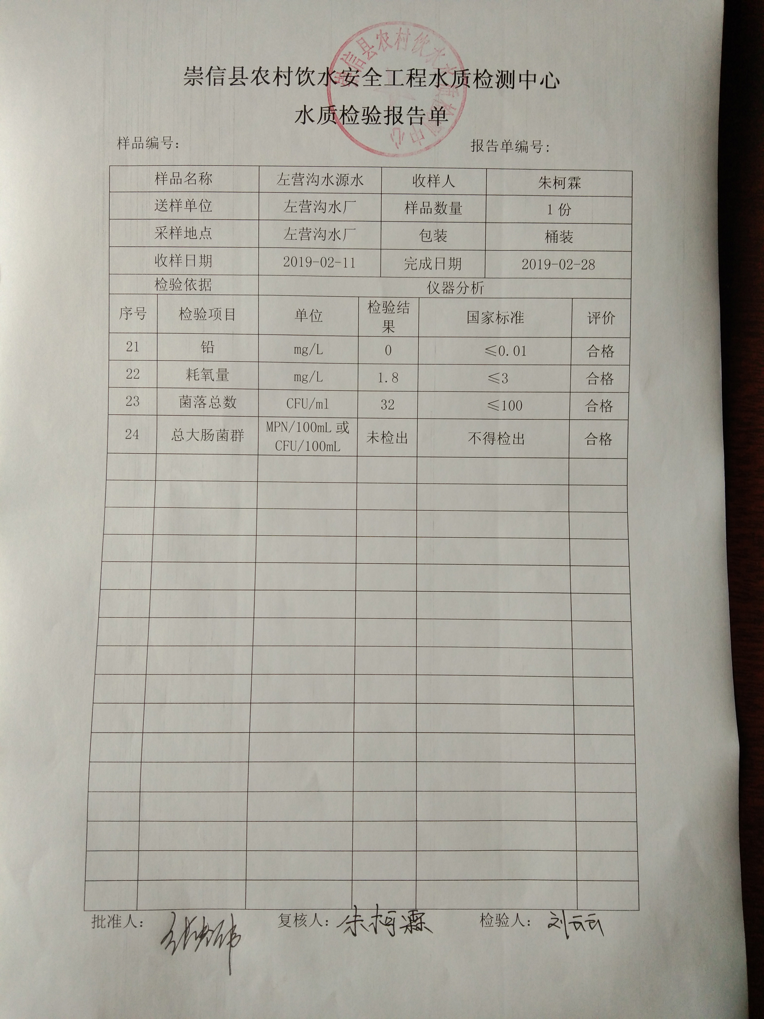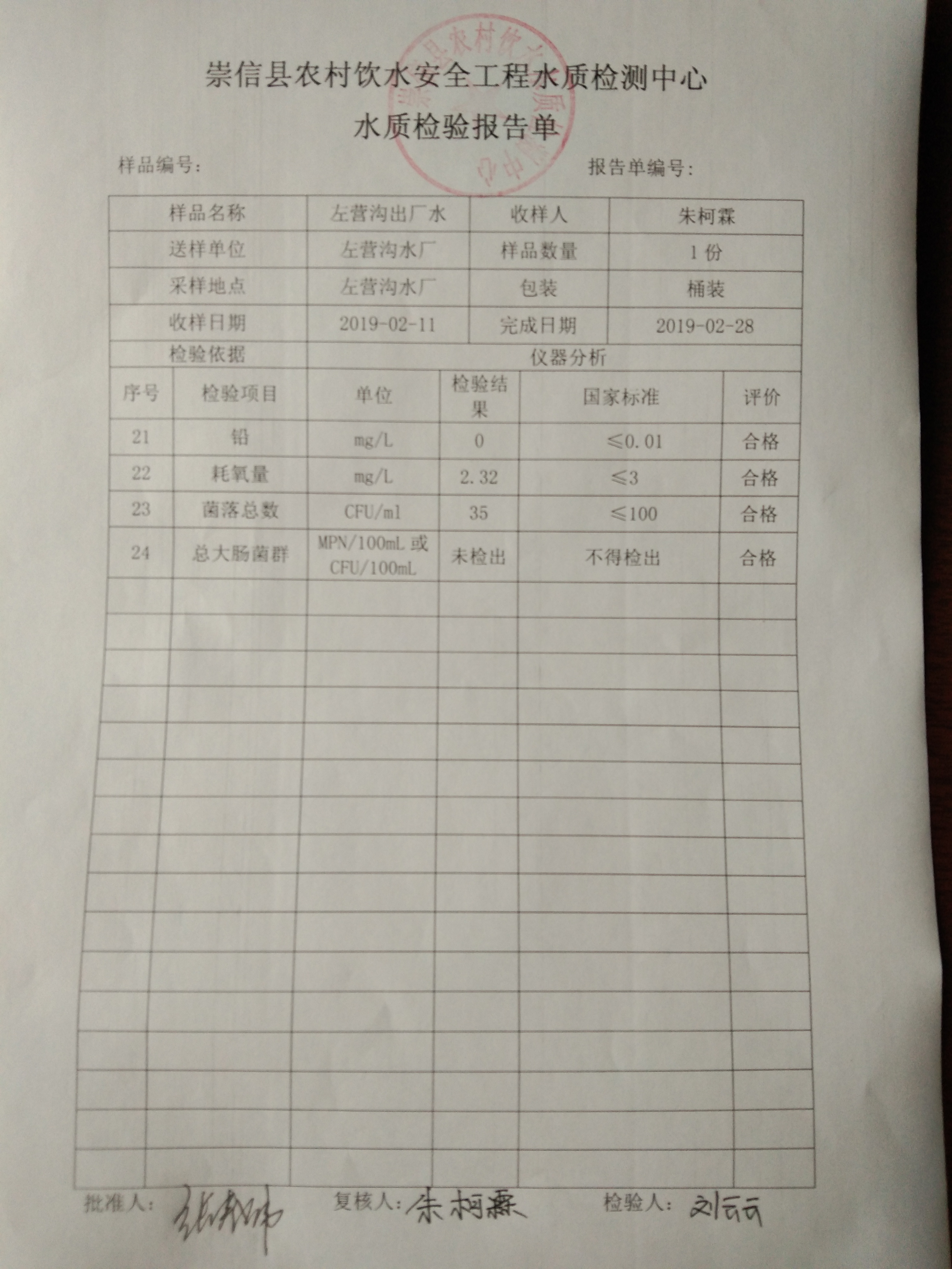 2019年2月份左营沟水厂水质检测报告单 发文日期:2019-03-08 17:42 来源:机构分类-崇信信息公开 作者:崇信水务局 编辑:崇信水务局 IMG_20190308_173621 IMG_20190308_173628 IMG_20190308_173635 IMG_20190308_173643 IMG_20190308_173652 IMG_20190308_173700 IMG_20190308_173621 扫一扫在手机打开当前页 上一篇: 2019年3月散花沟水厂水质检测报告单 下一篇: 2019年2月份杜家沟水厂水质检测报告单