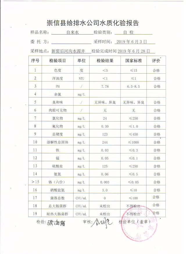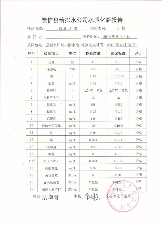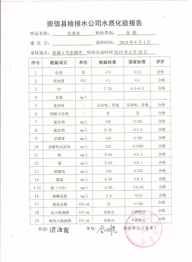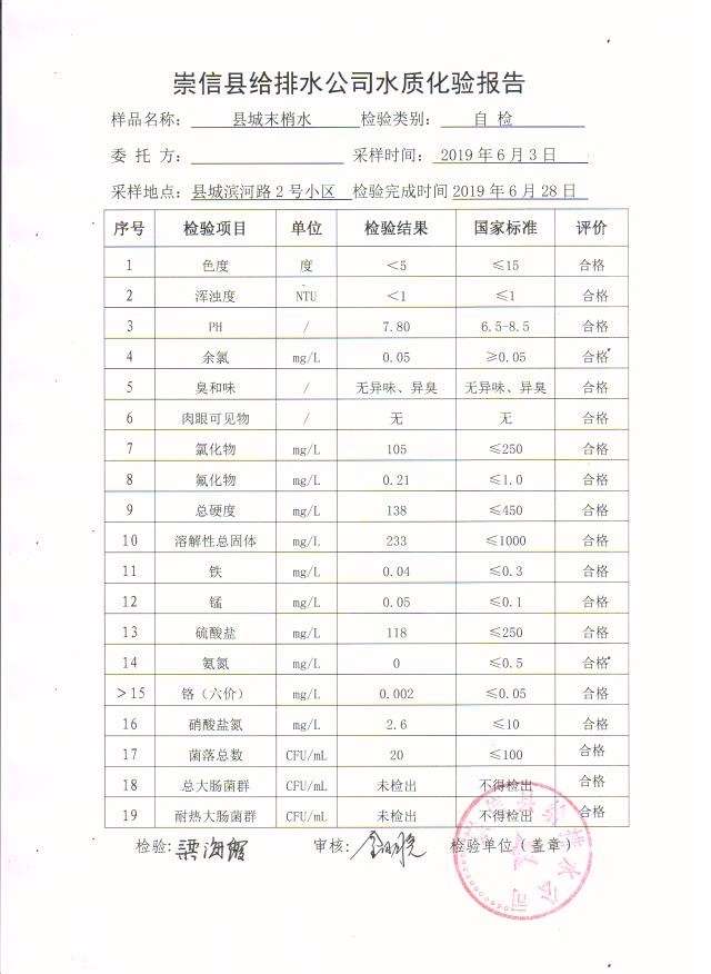 2019年6月份水质化验报告单 发文日期:2019-07-04 00:00 来源:崇信县住房和城乡建设局 作者:崇信住建局 编辑:崇信住建局 06 01 02 03 04 05 扫一扫在手机打开当前页 上一篇: 公告 下一篇: 2019年6月份杜家沟水厂水质检测报告单
