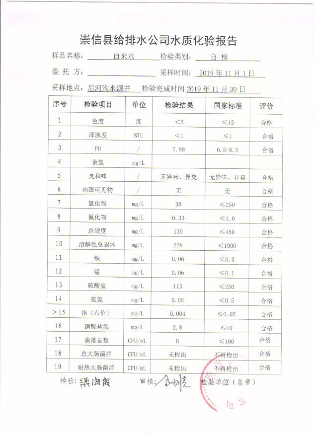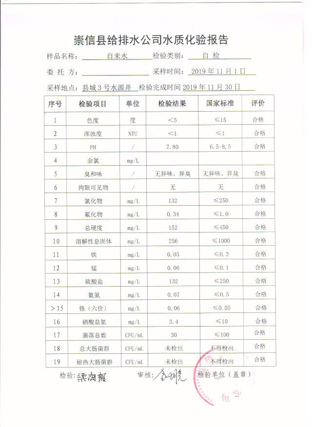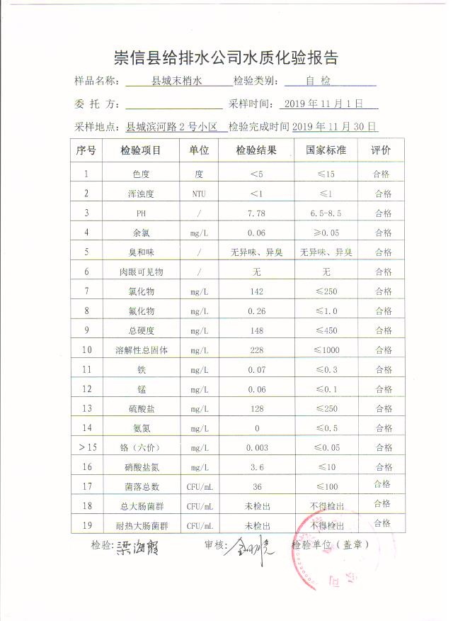 2019年11月水质化验报告单 发文日期:2019-12-11 00:00 来源:崇信县住房和城乡建设局 作者:崇信住建局 编辑:崇信住建局 01 02 03 04 05 06 扫一扫在手机打开当前页 上一篇: 2019年10月份水质化验报告单 下一篇: 2019年9月份水质化验报告单