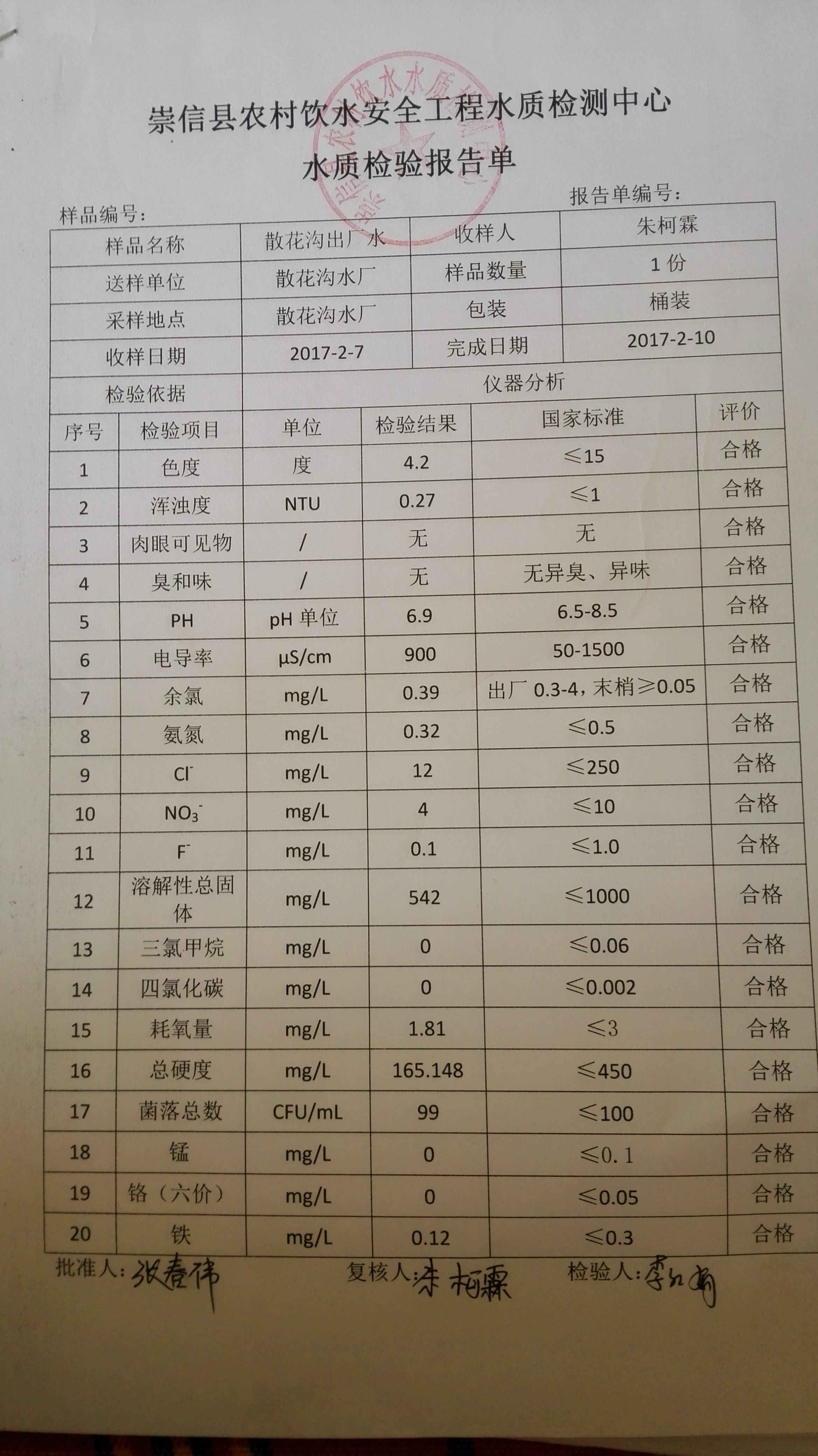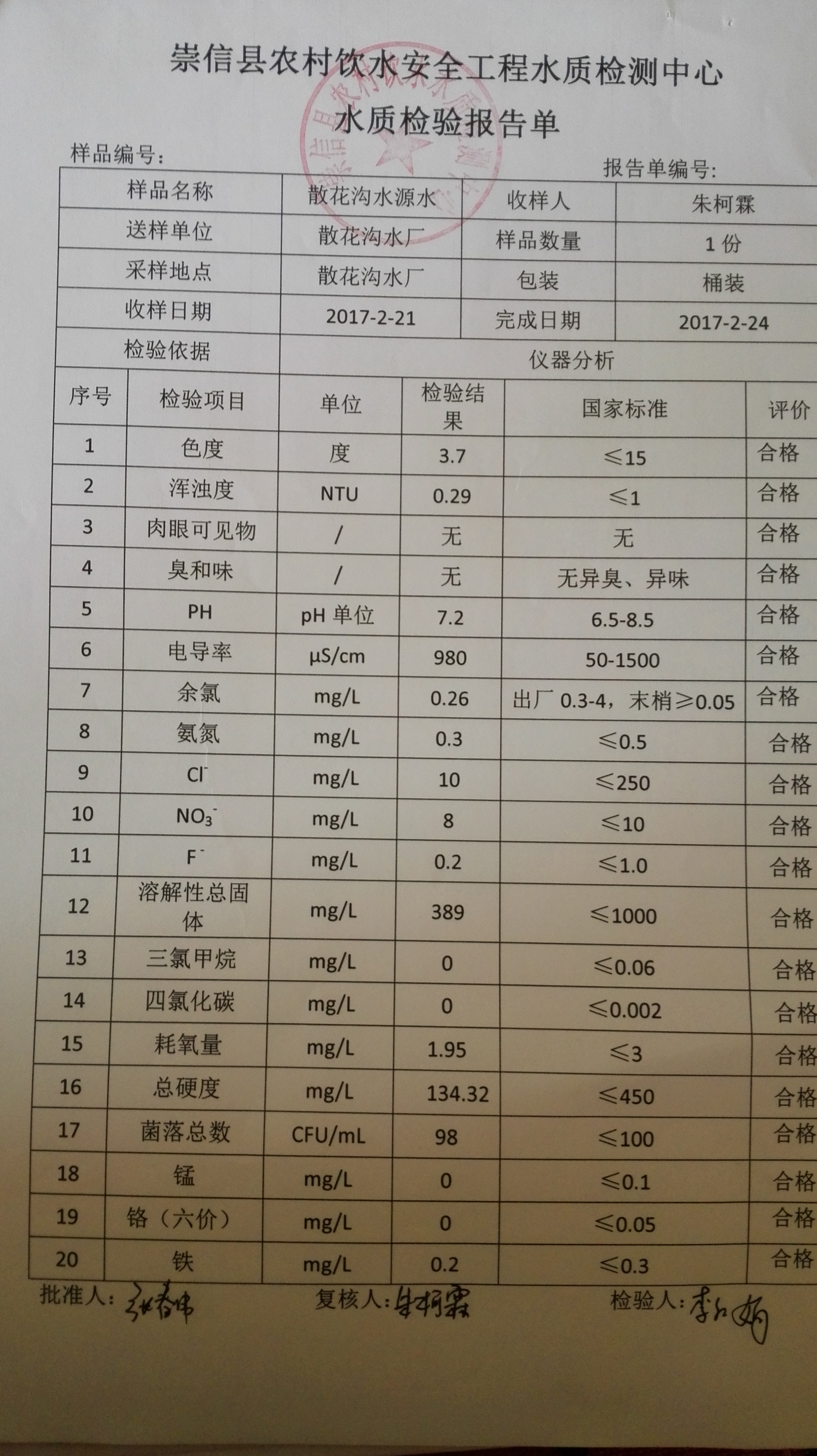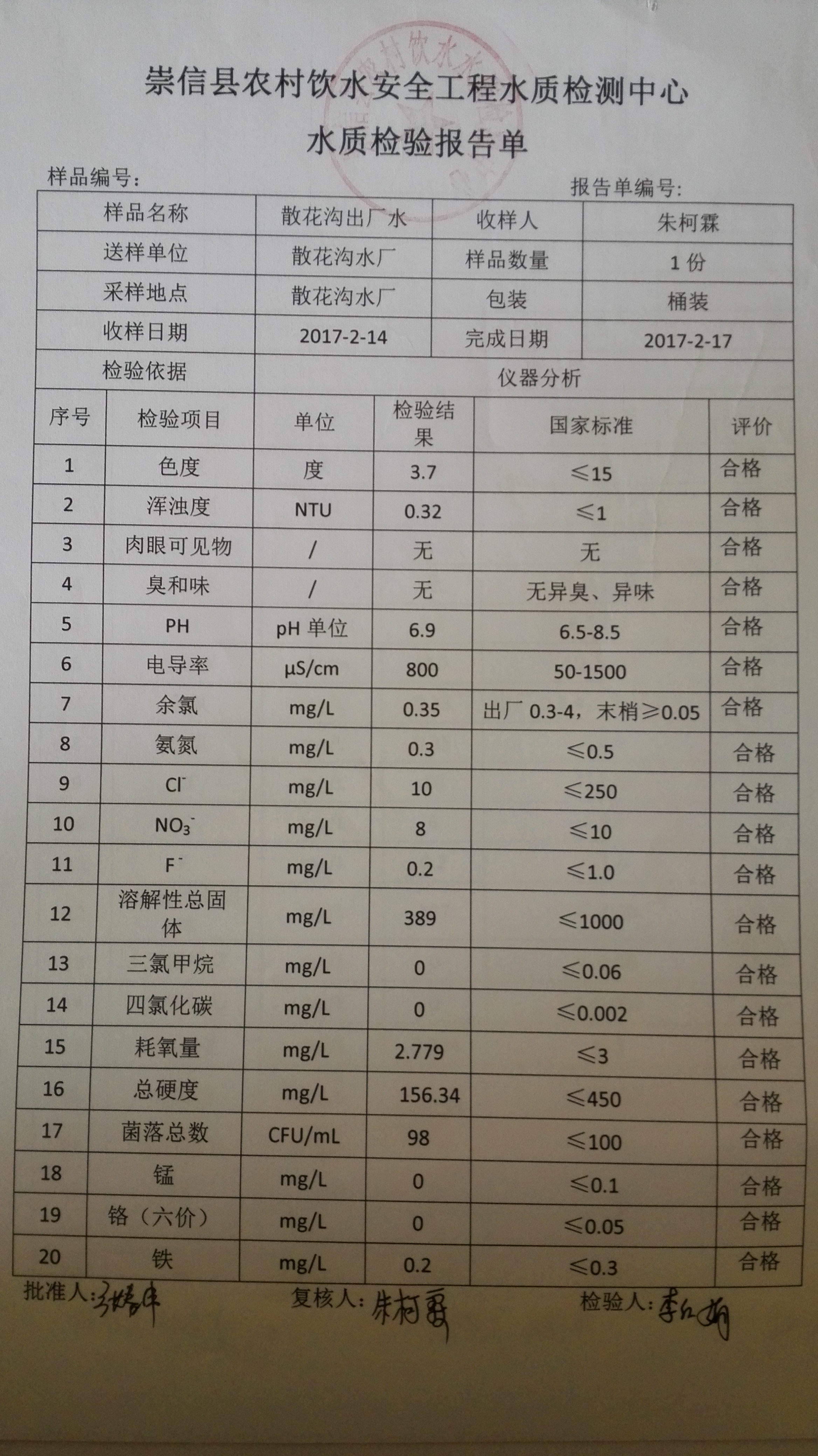 2017年2月份散花沟水厂水质检测报告单 发文日期:2017-09-28 16:06 来源:崇信县水务局 作者:崇信水务局 编辑:崇信水务局 1506584736311 1506584755871 1506584779468 1506584799635 1506584832050 1506584885110 1506584896302 扫一扫在手机打开当前页 上一篇: 2017年3月份散花沟水厂水质检测报告单 下一篇: 2017年1月散花沟水厂水质检测报告单