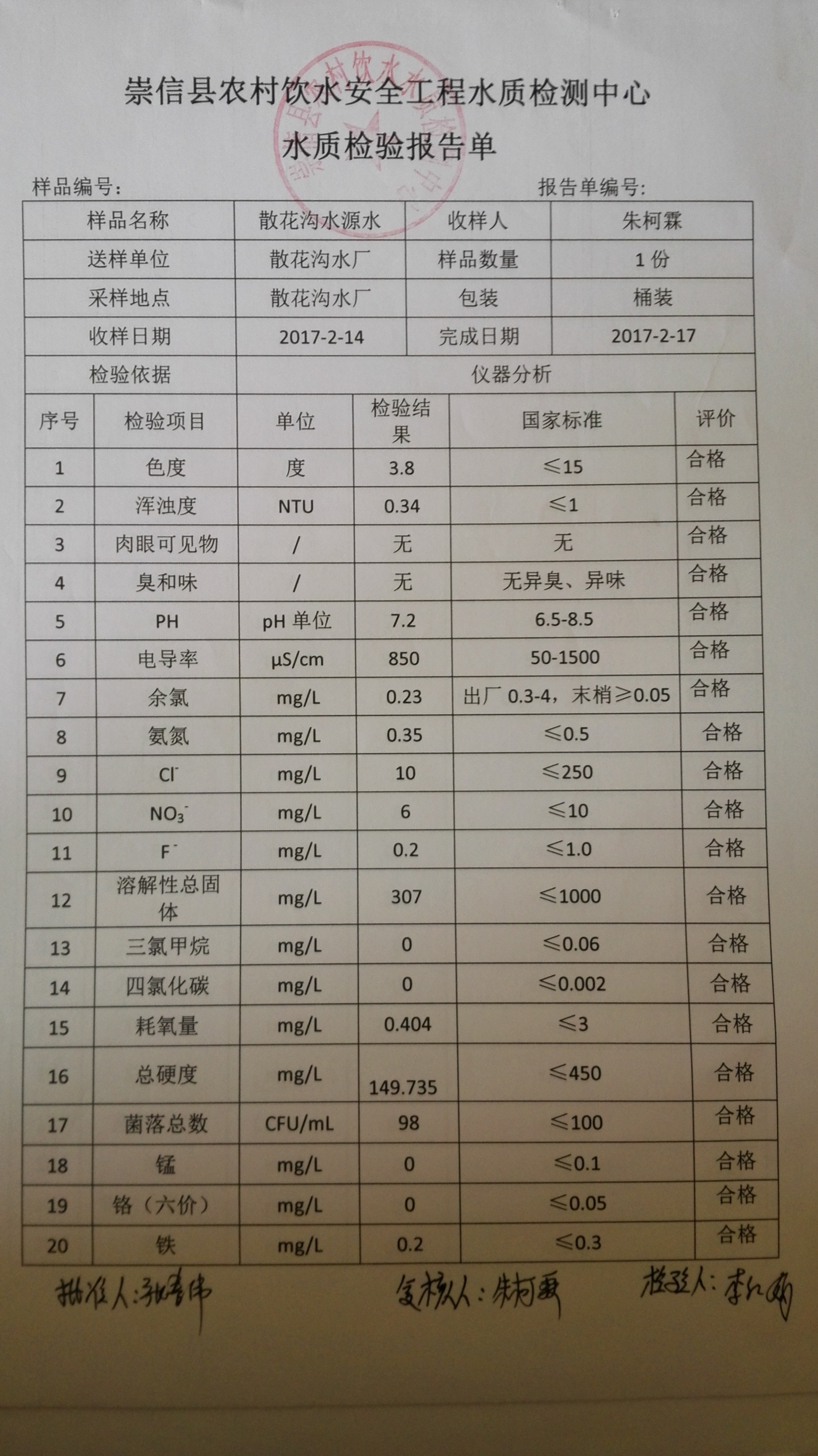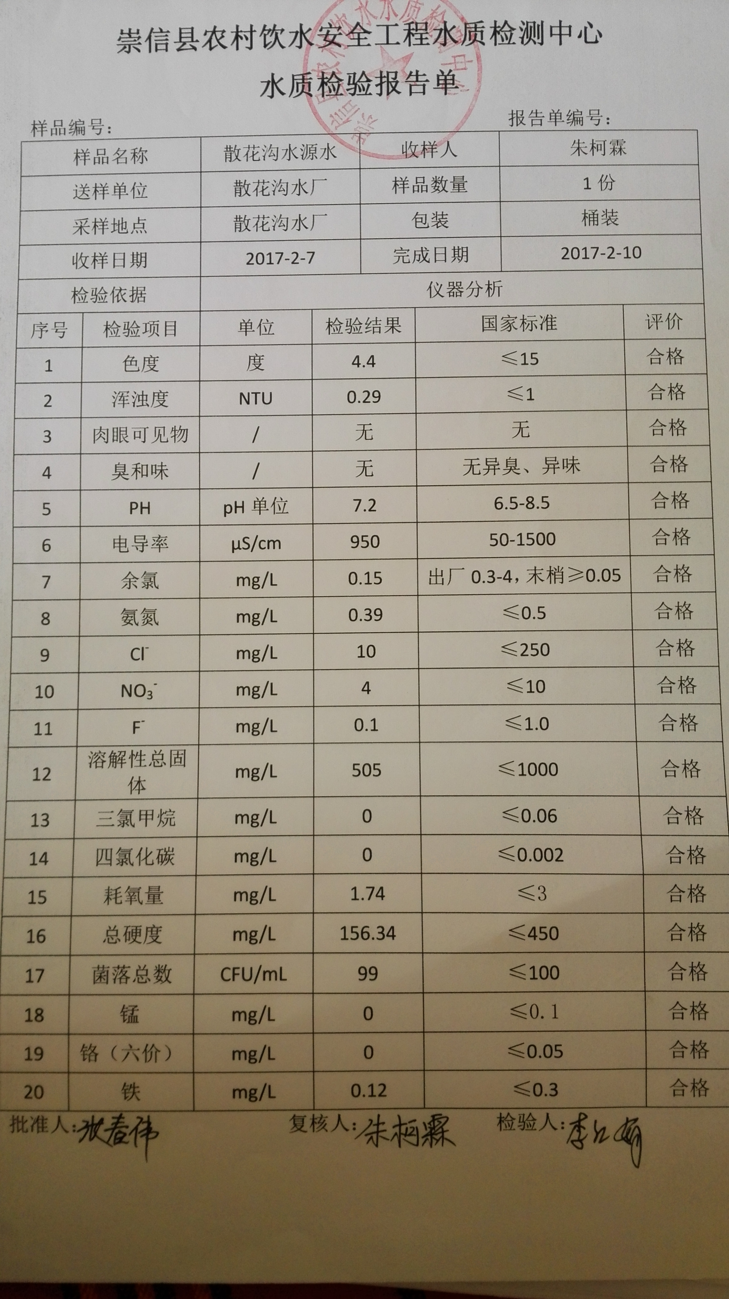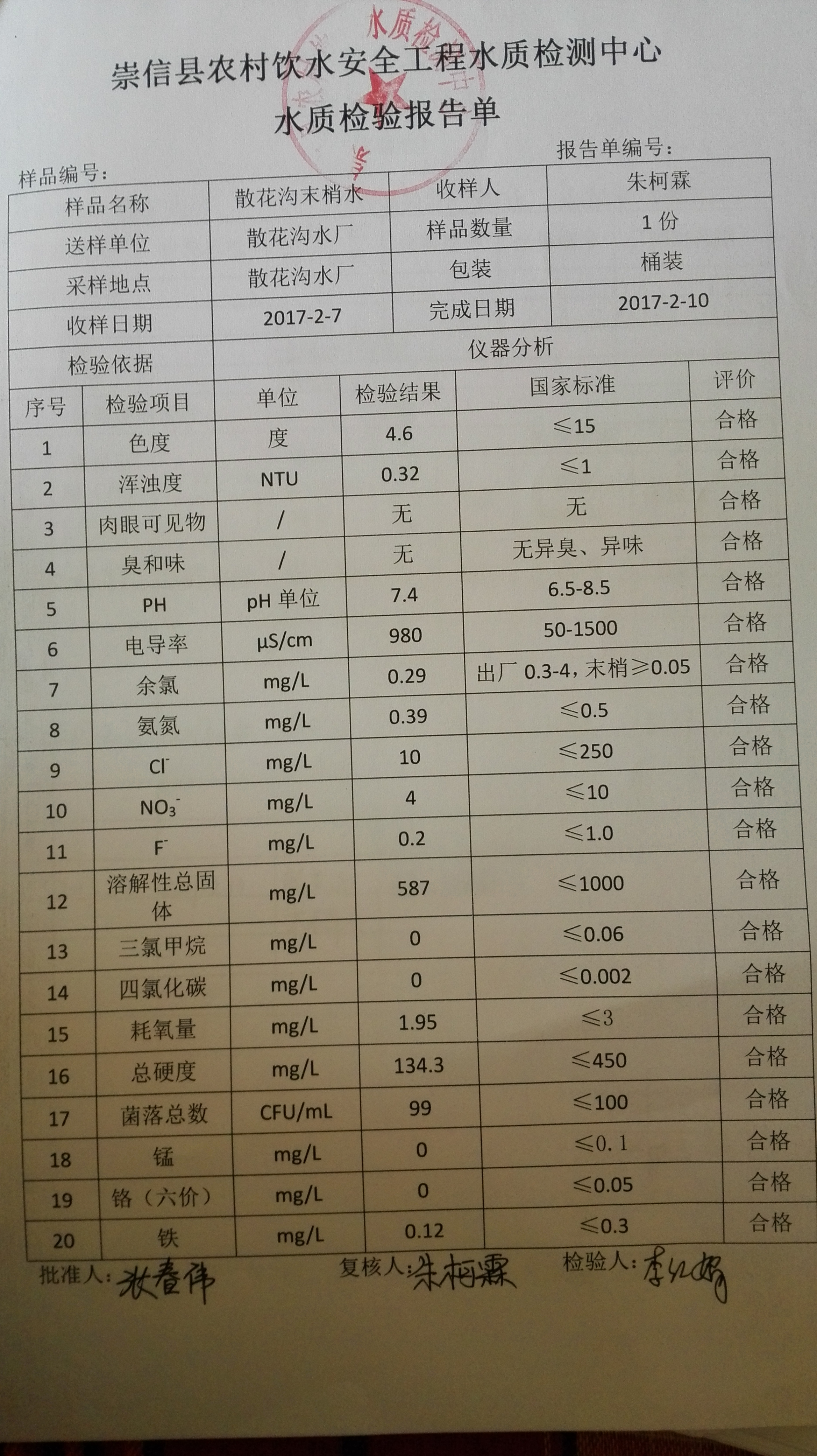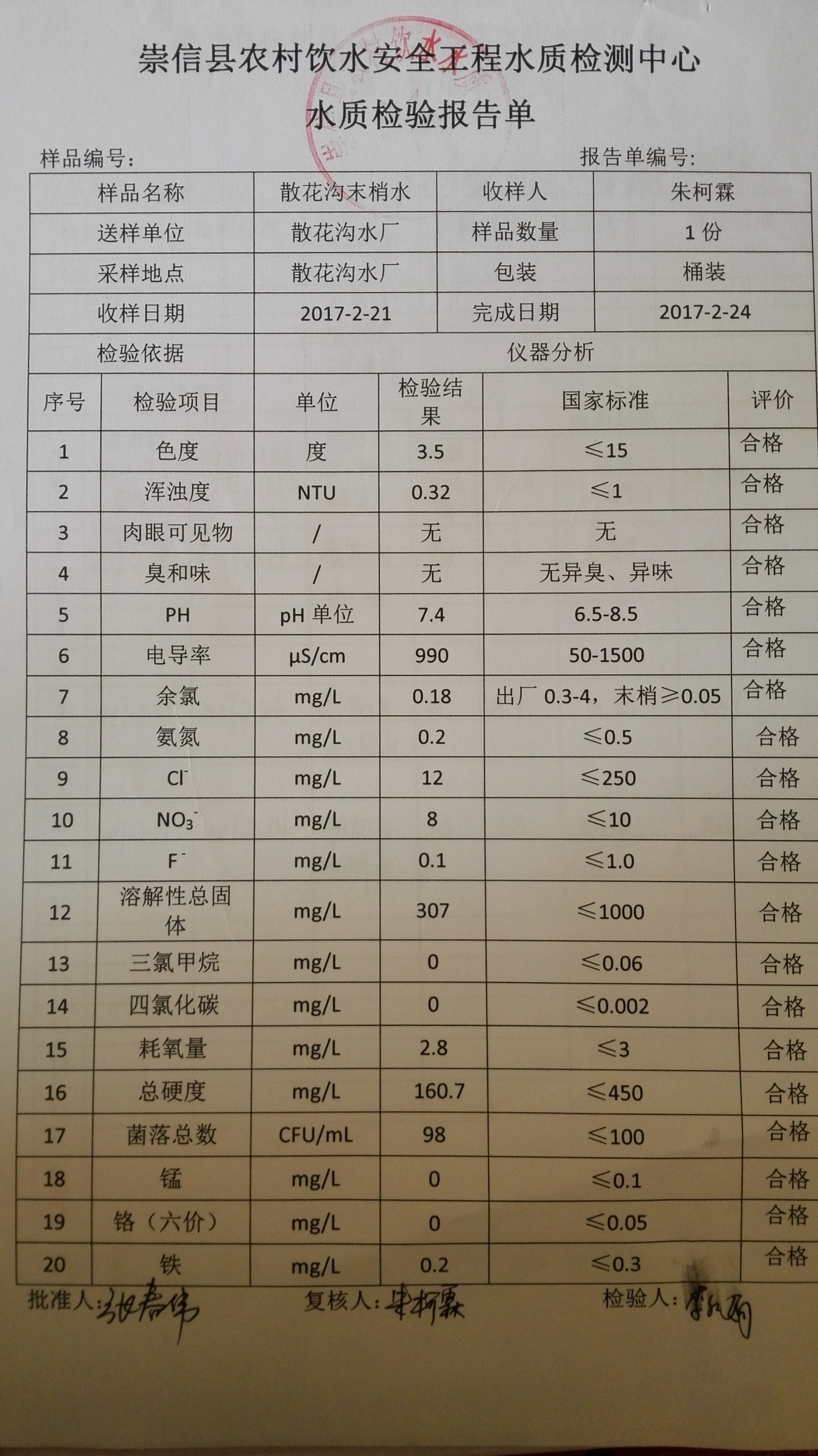 2017年2月份散花沟水厂水质检测报告单 发文日期:2017-09-28 16:06 来源:崇信县水务局 作者:崇信水务局 编辑:崇信水务局 1506584736311 1506584755871 1506584779468 1506584799635 1506584832050 1506584885110 1506584896302 扫一扫在手机打开当前页 上一篇: 2017年3月份散花沟水厂水质检测报告单 下一篇: 2017年1月散花沟水厂水质检测报告单