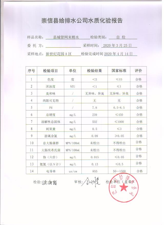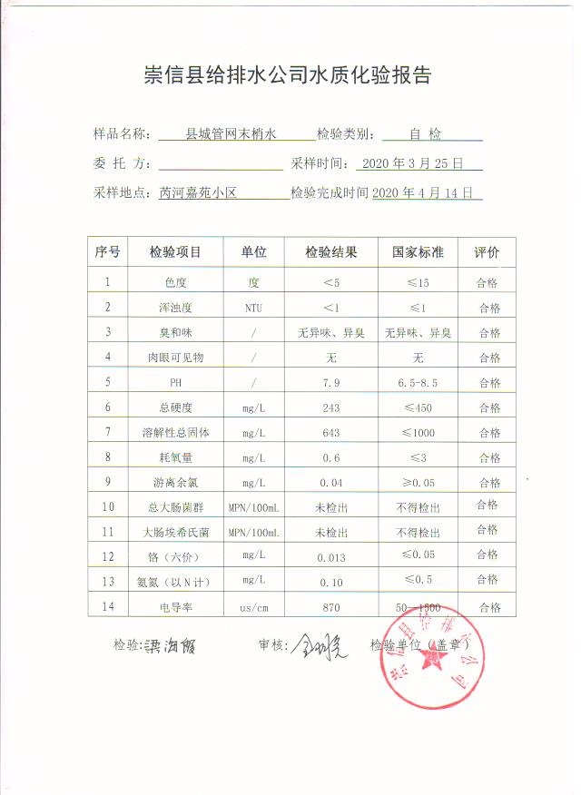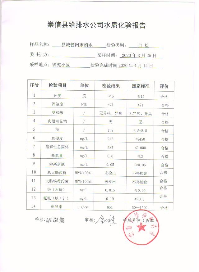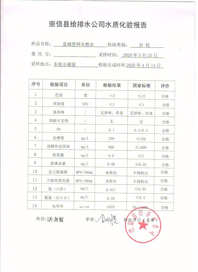 2020年3月份水质化验报告单 发文日期:2020-05-12 00:00 来源:崇信县住房和城乡建设局 作者:崇信住建局 编辑:崇信住建局 04 01 02 03 扫一扫在手机打开当前页 上一篇: 2020年4月份水质化验报告单 下一篇: 2020年左营沟水厂4月份日检报告单